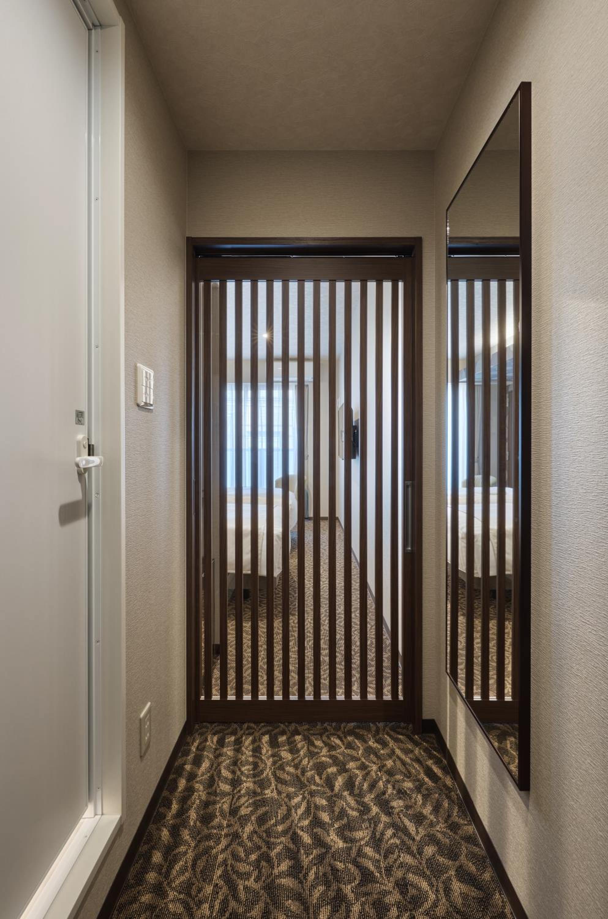 Experience comfort and style at HOTEL ARROWS ARASHIYAMA in Kyoto. Each room is equipped with modern amenities including a flat-screen TV, a private bathroom, and cozy bed linens.