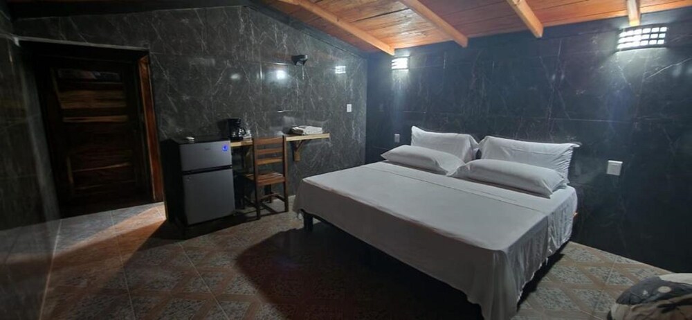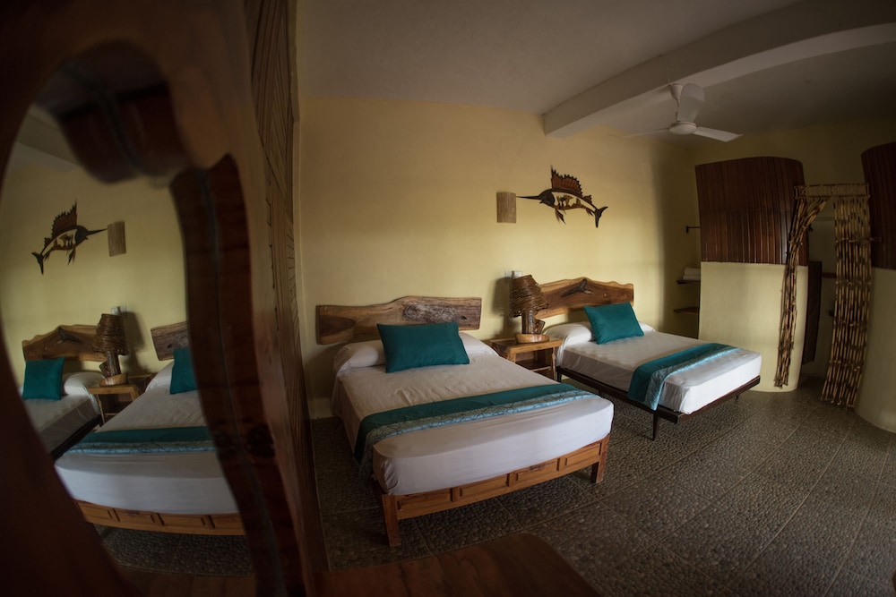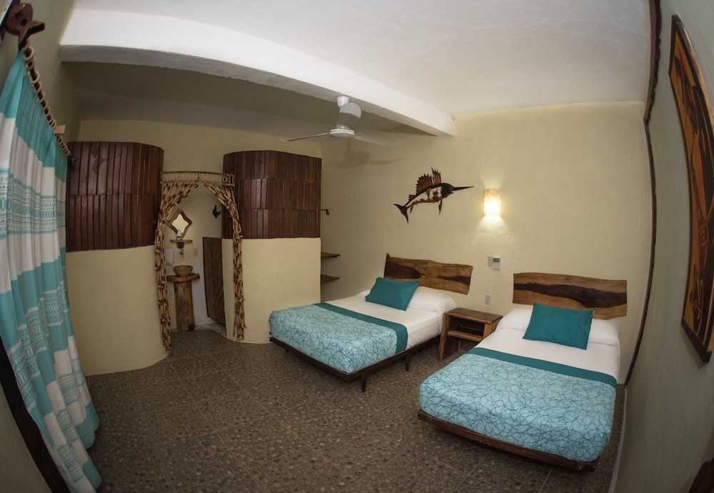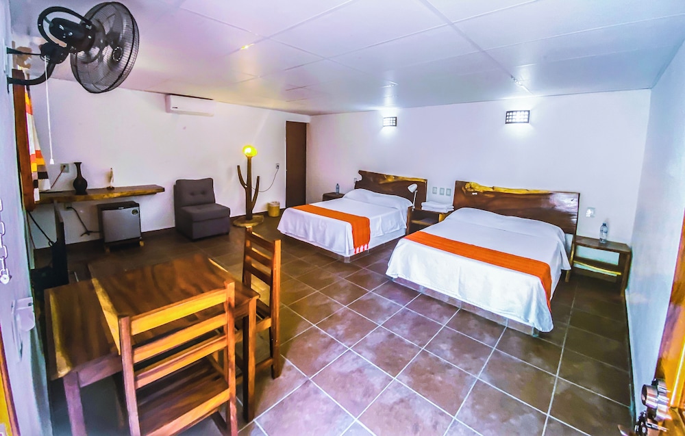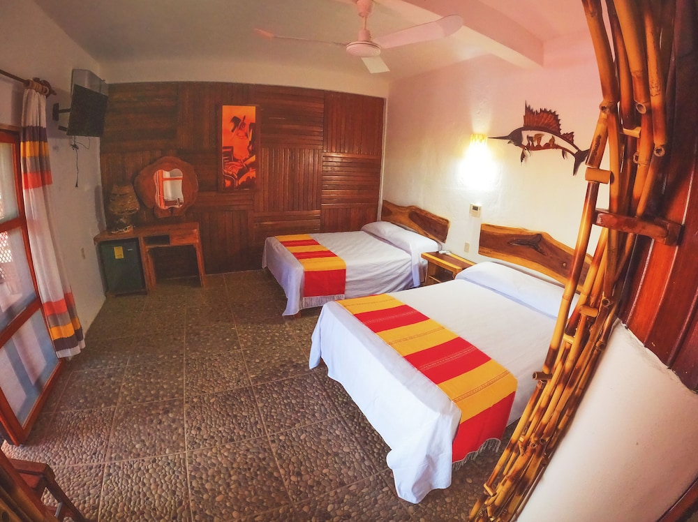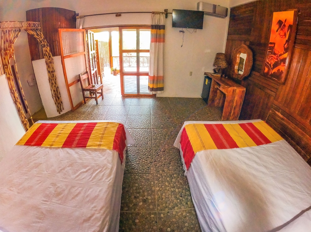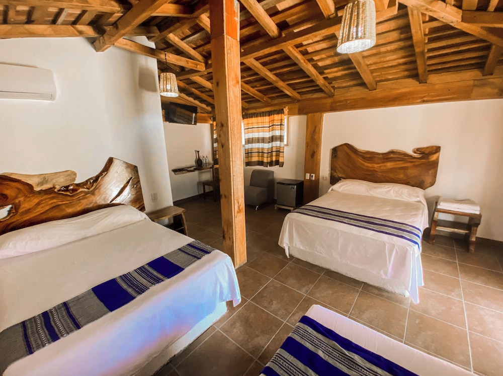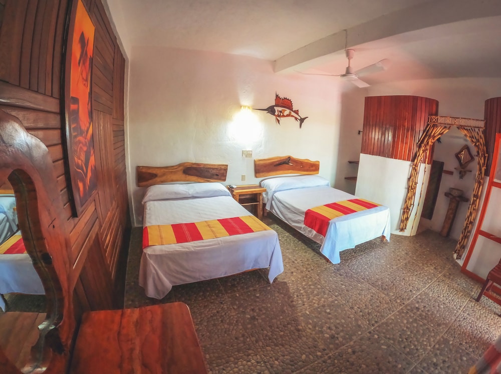 El establecimiento es bueno, pero la única forma de llegar es un camino de pura terracería sin iluminación, el taxi desde el aeropuerto te cobra $200 para llevarte. Y para ir al centro de puerto escondido o a las playas necesitas pedirle su teléfono a algún taxista ($200 a $300 cada viaje, ida más regreso) o esperar la “pasajera” (camioneta de redilas, te cobra $20 x persona) que tarda aprox. 30 min en pasar y el último sube a las 8:00pm. para regresar al hospedaje. La pasajera te deja un poco cerca del centro pero de ahí necesitas buscar transporte a las playas.