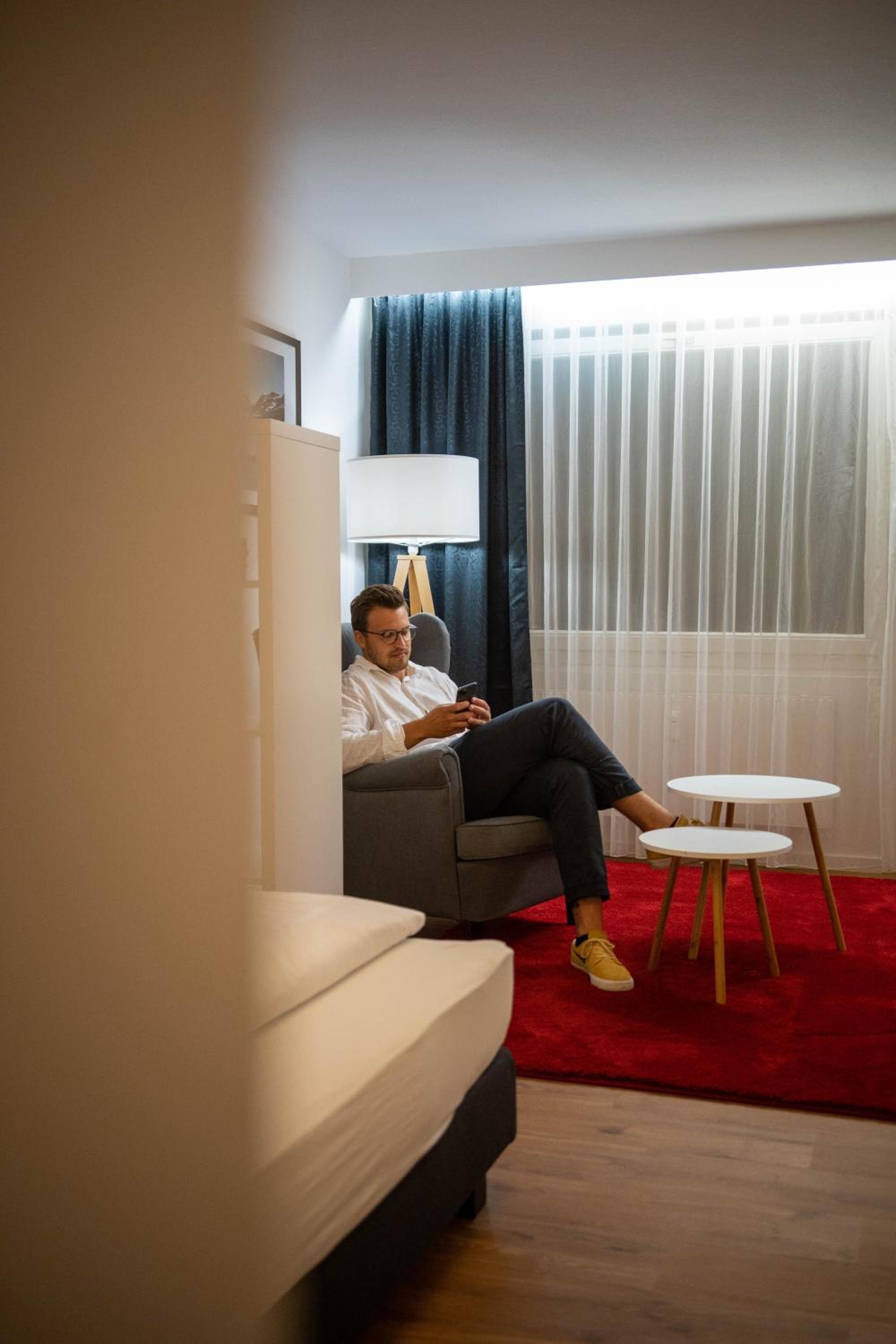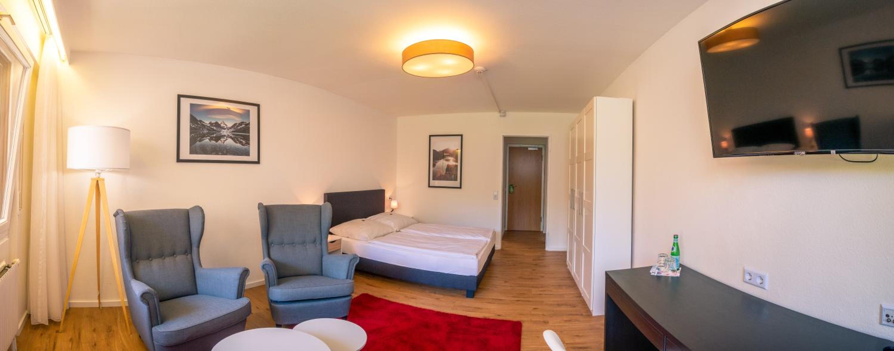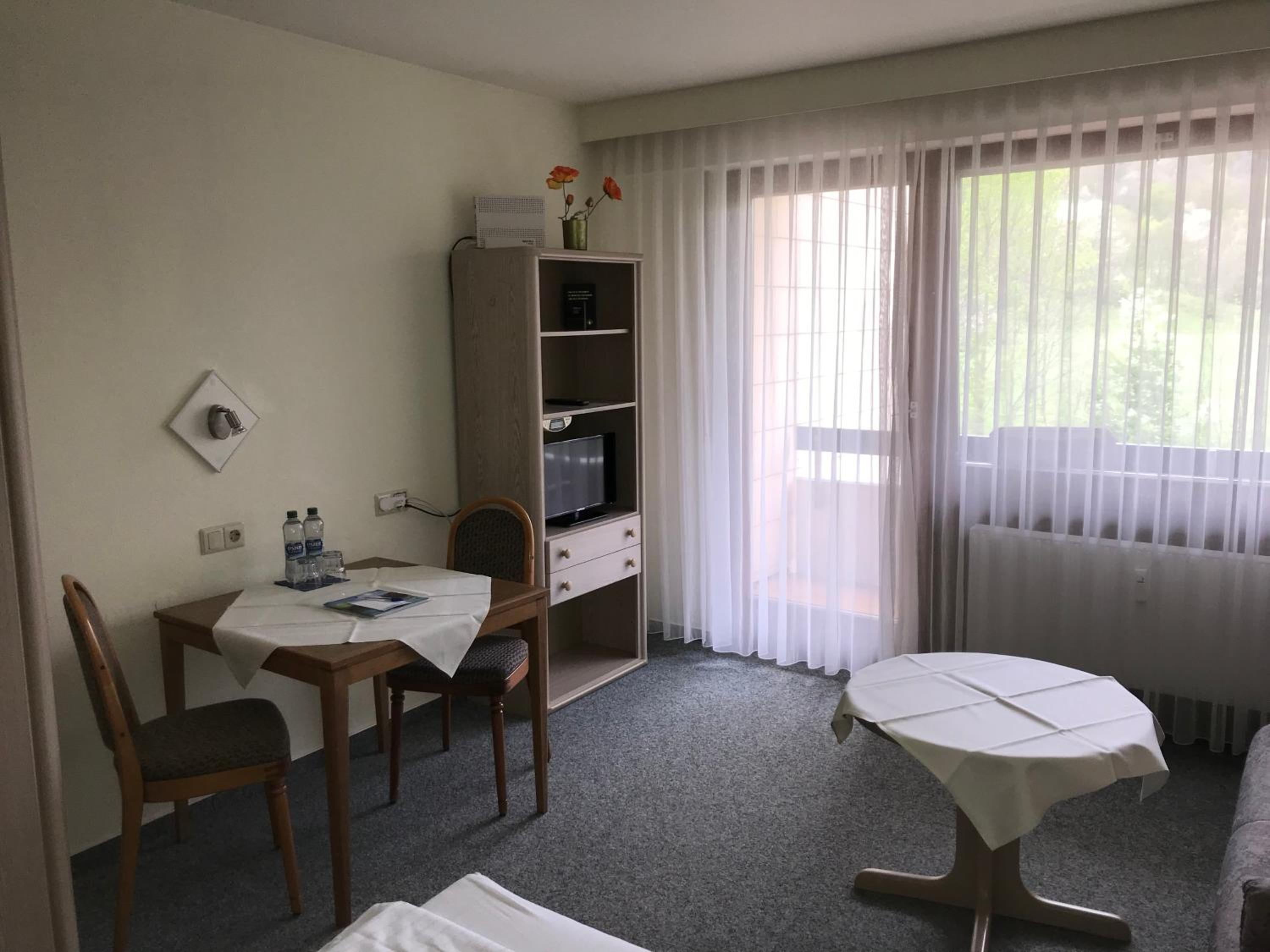 Digitales Ein- und Aus checken ging problemlos. Das gut ausgestattete Zimmer mit Terrasse liegt sehr ruhig. Wasserkocher und Kühlschrank sind vorhanden, sowie 1 Sprudel und Teebeutel . Die Therme ist fußläufig zu erreichen. Mit der Albcard inklusive ist der Eintritt in die Therme kostenlos. CHECK OUT um 11 Uhr ist super.