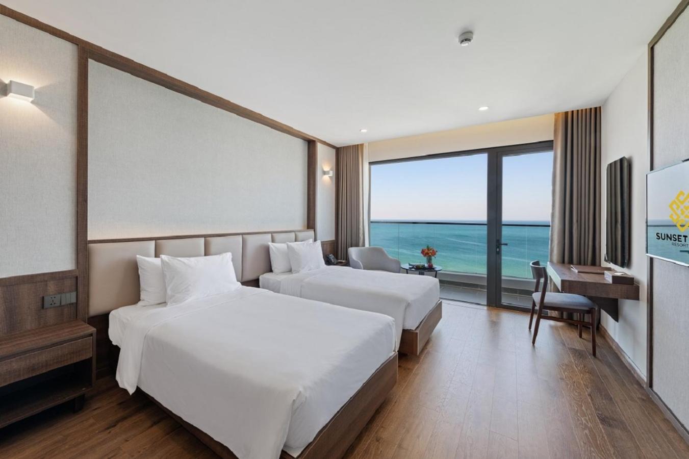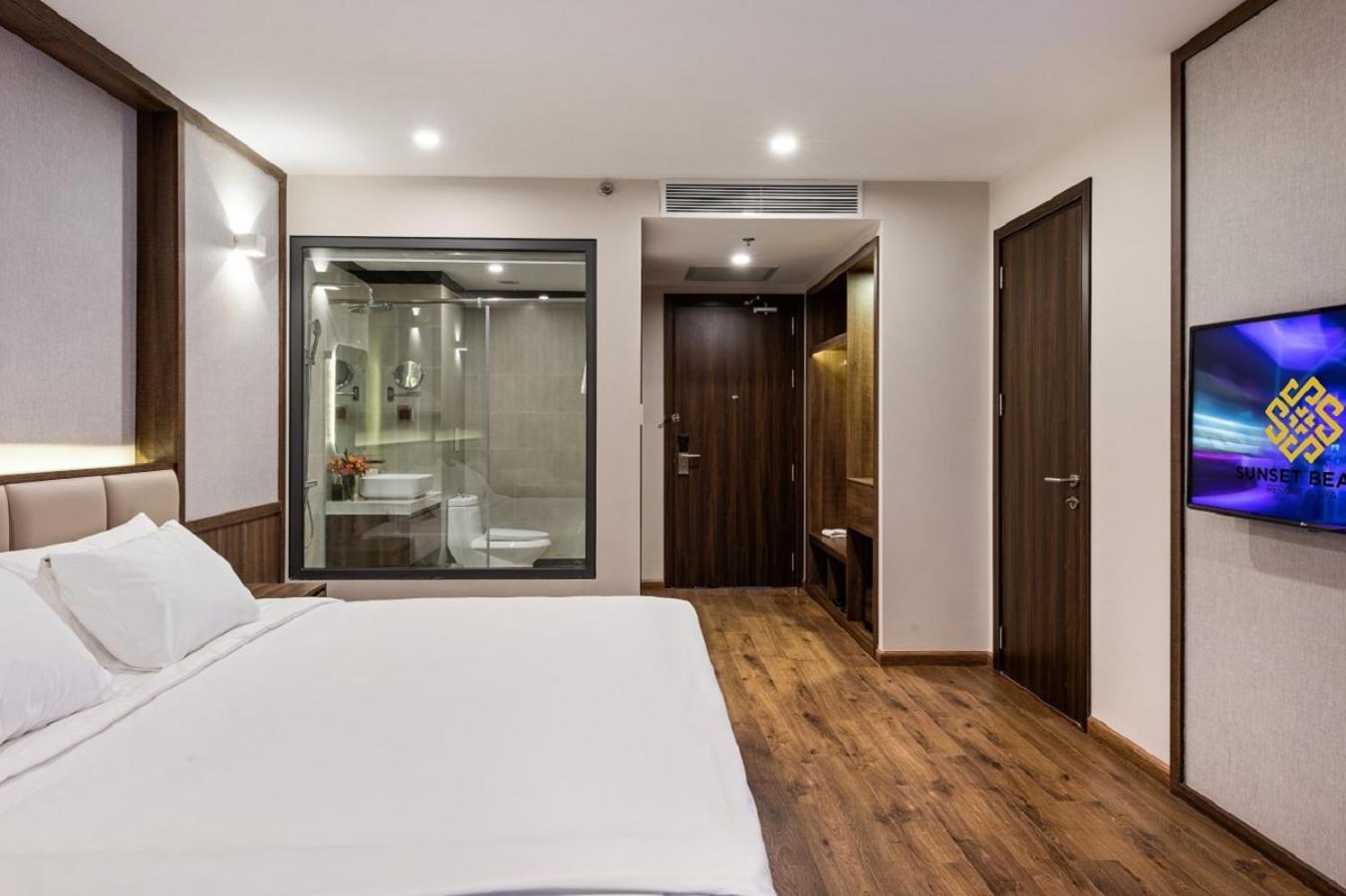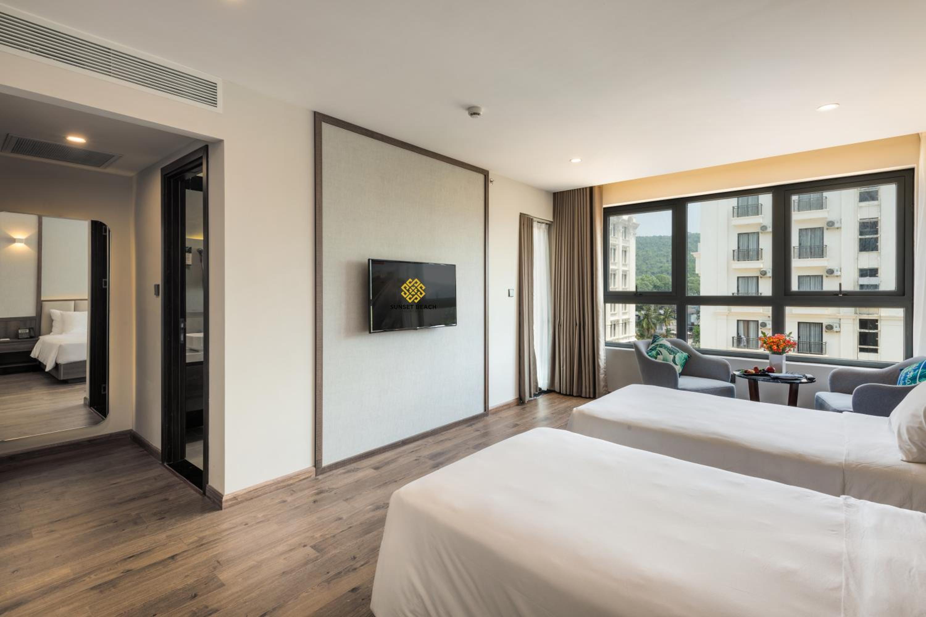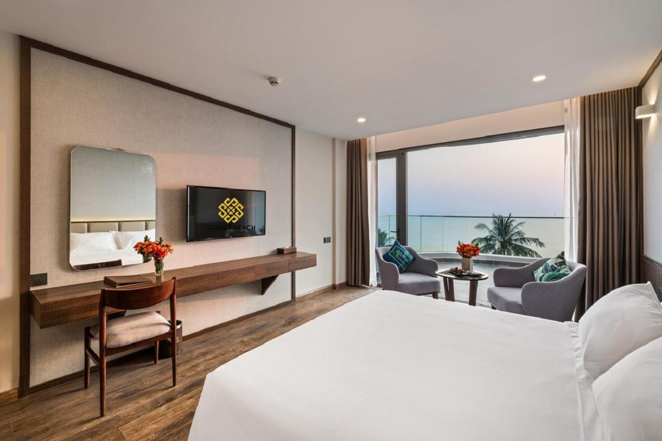Hotel parfaitement situé nous avions une grande chambre avec vue panoramique face a la mer et au sunset magnifique la plage est tres jolie et le bar restaurant le sunset est super pour les aperos repas etc meme si c est un peu cher par rapport aux prix du vietnam habituel .