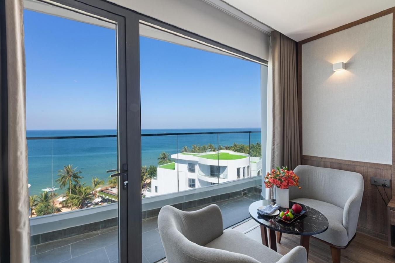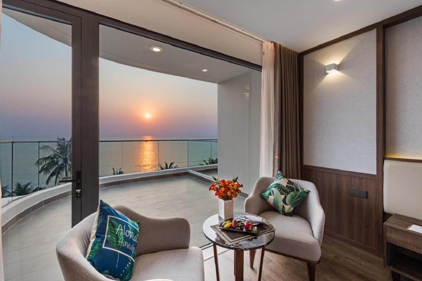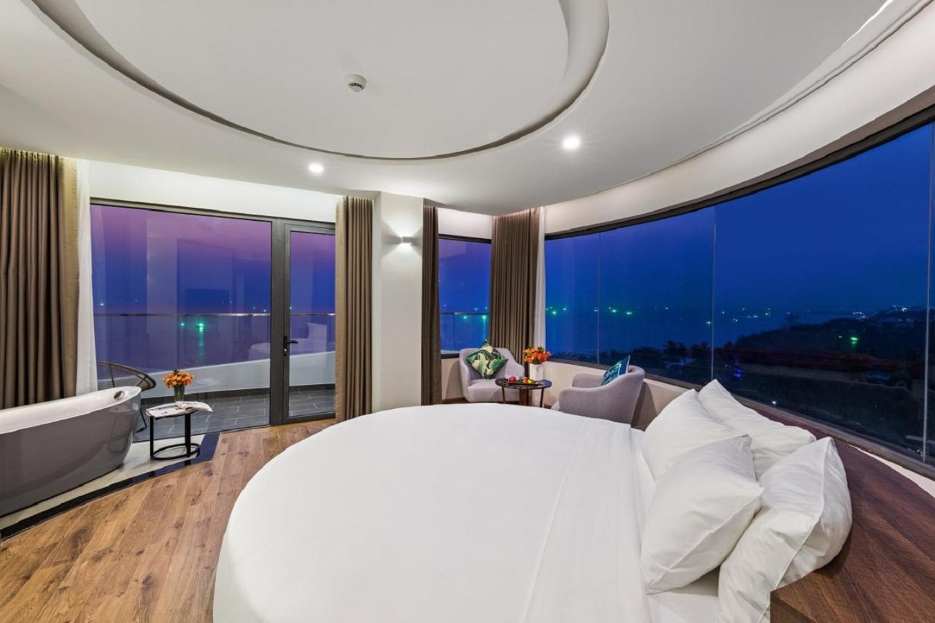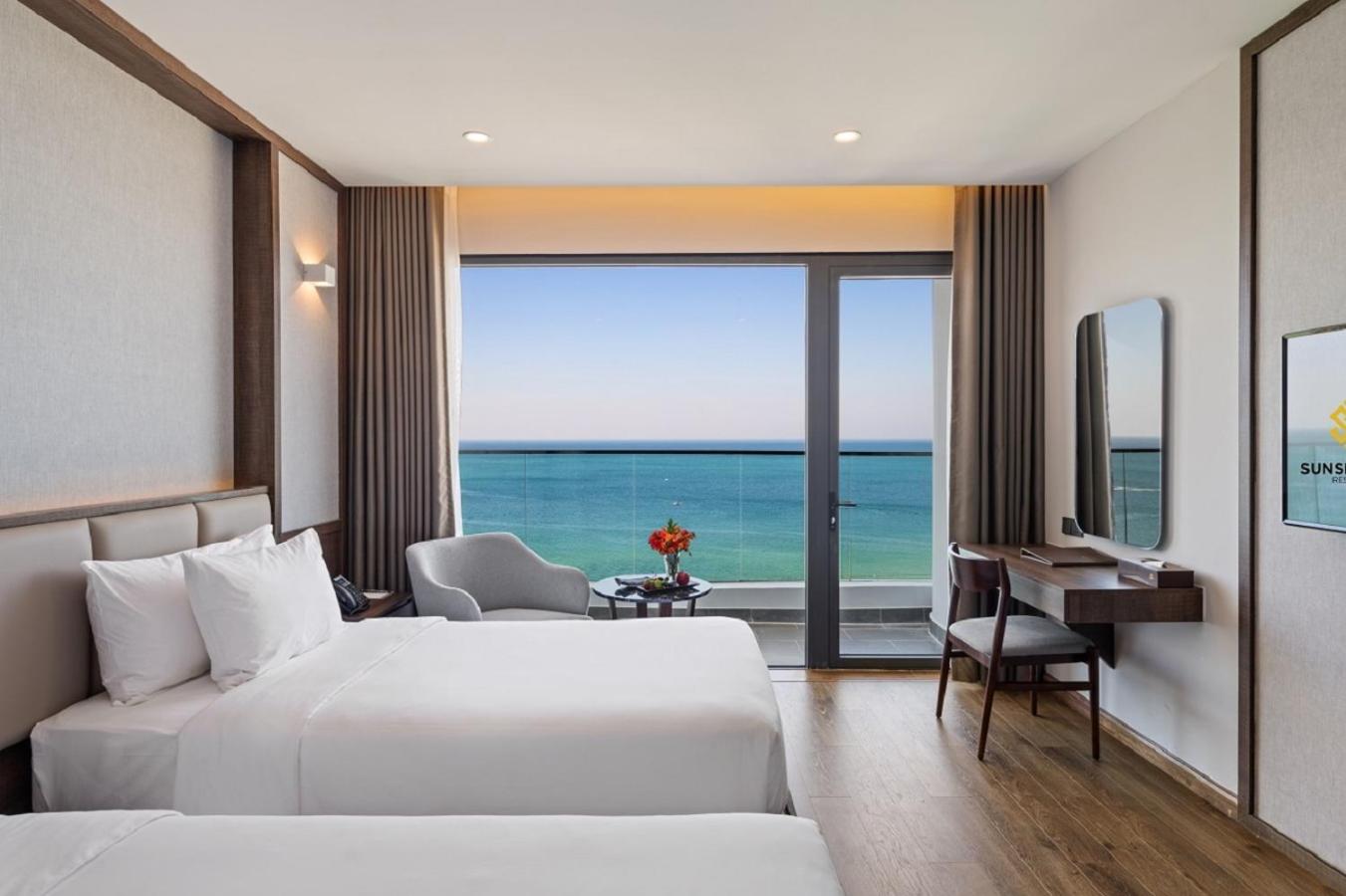 Hotel parfaitement situé nous avions une grande chambre avec vue panoramique face a la mer et au sunset magnifique la plage est tres jolie et le bar restaurant le sunset est super pour les aperos repas etc meme si c est un peu cher par rapport aux prix du vietnam habituel .