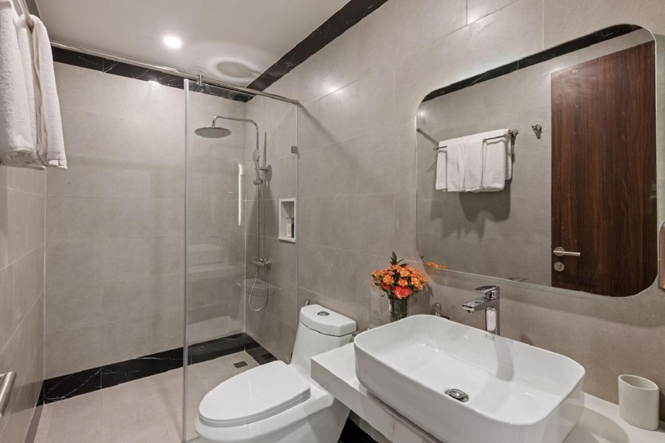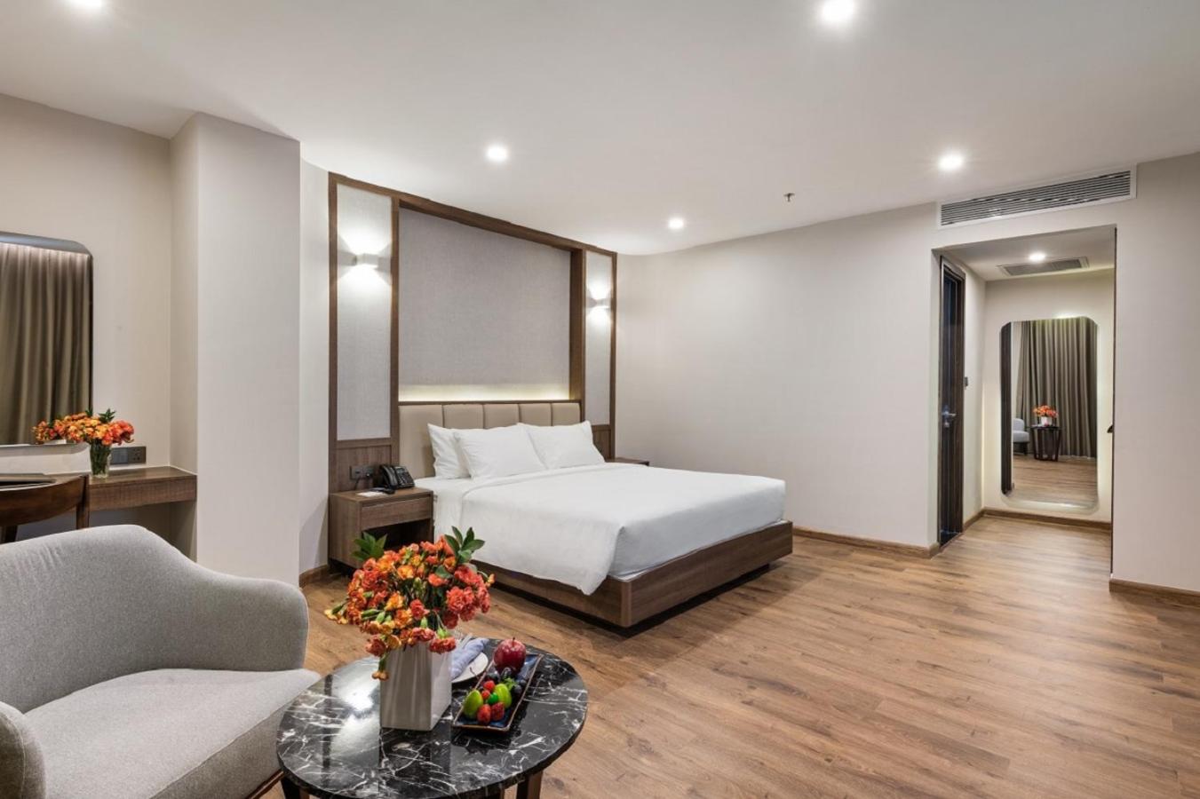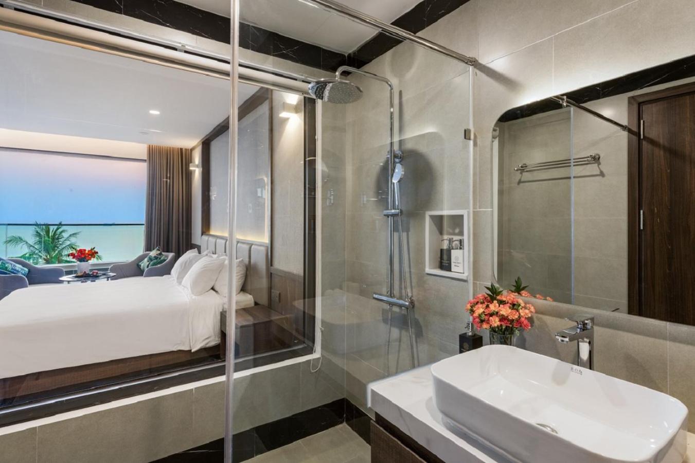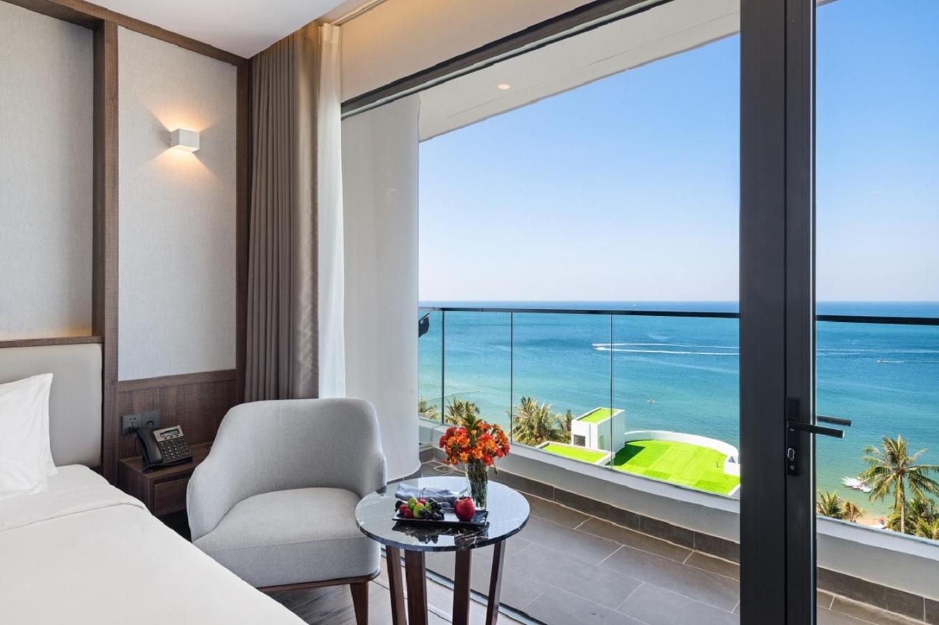 Hotel parfaitement situé nous avions une grande chambre avec vue panoramique face a la mer et au sunset magnifique la plage est tres jolie et le bar restaurant le sunset est super pour les aperos repas etc meme si c est un peu cher par rapport aux prix du vietnam habituel .