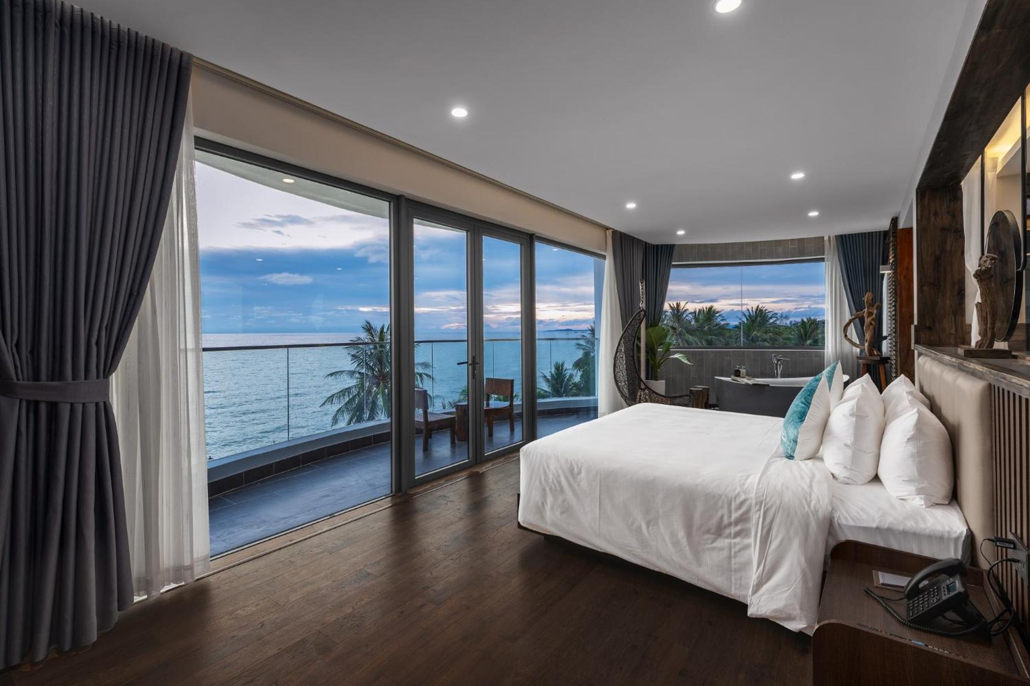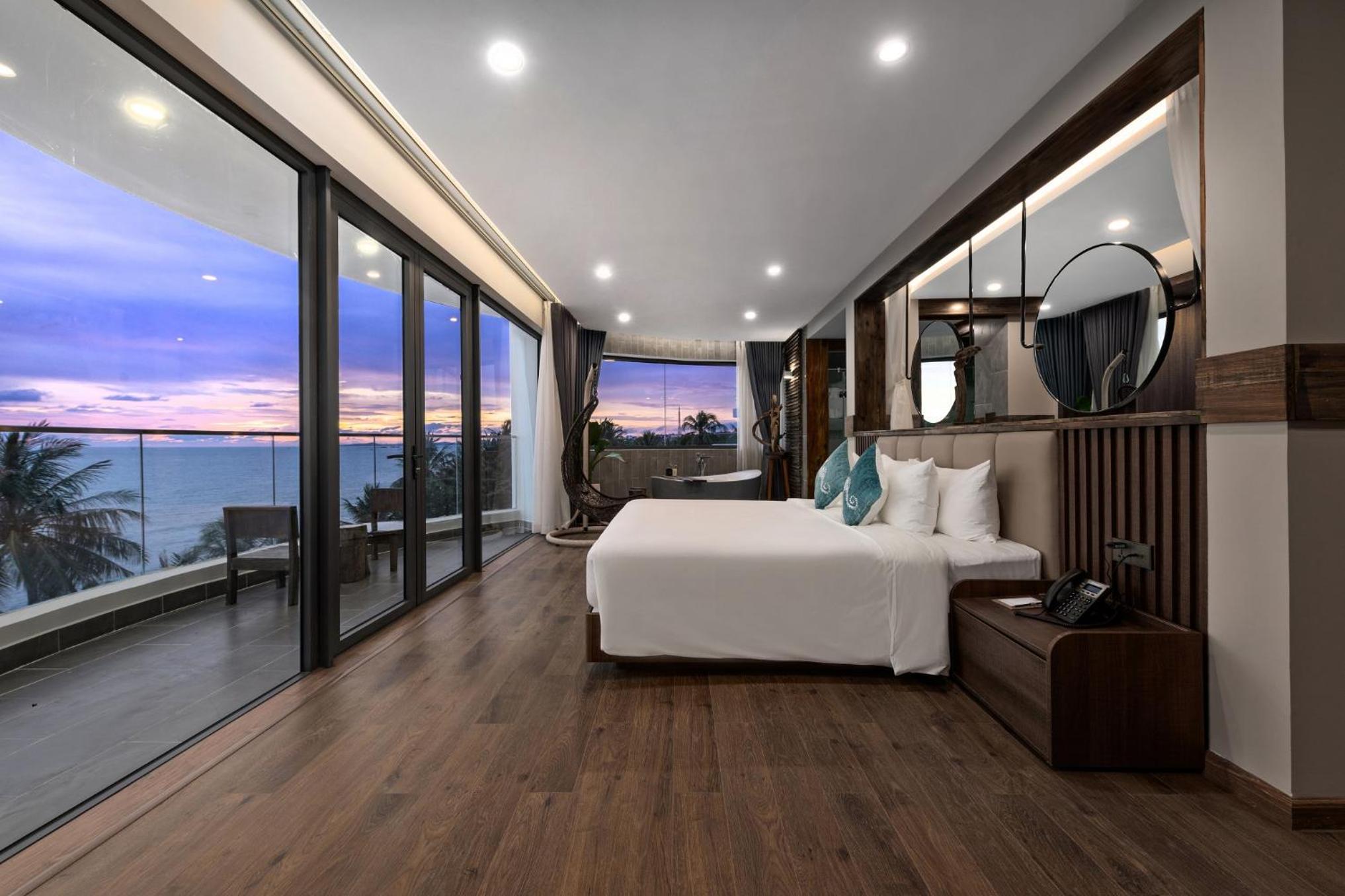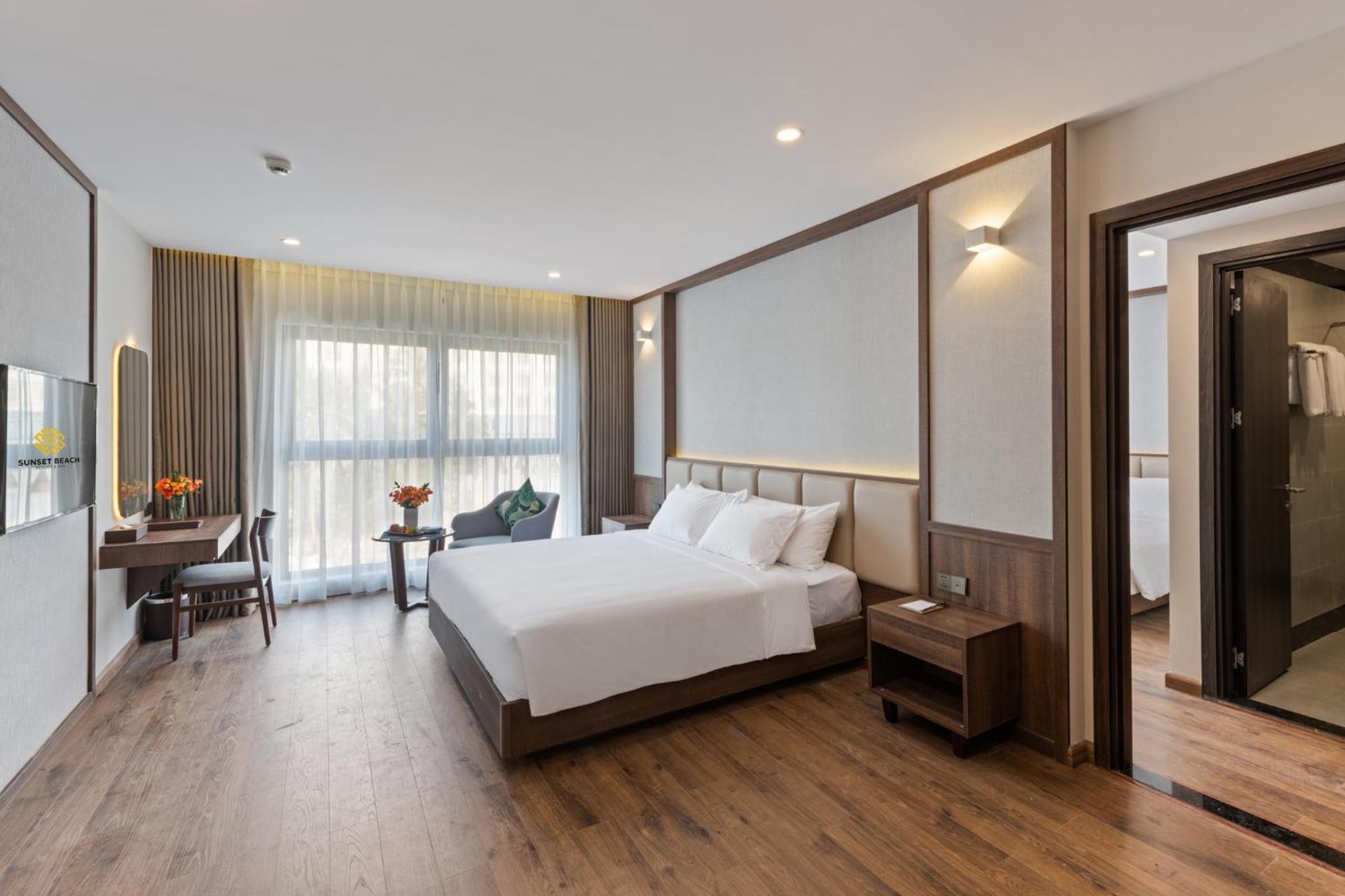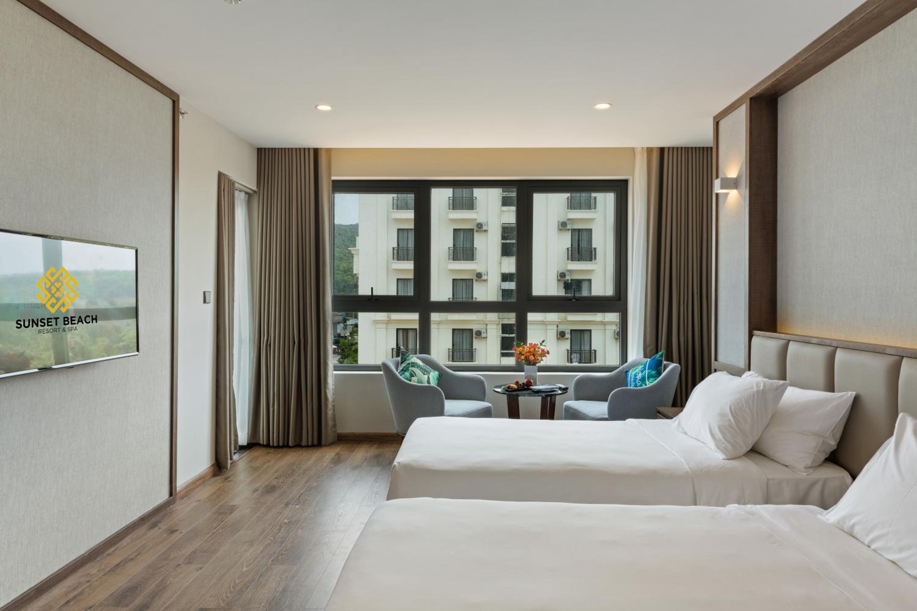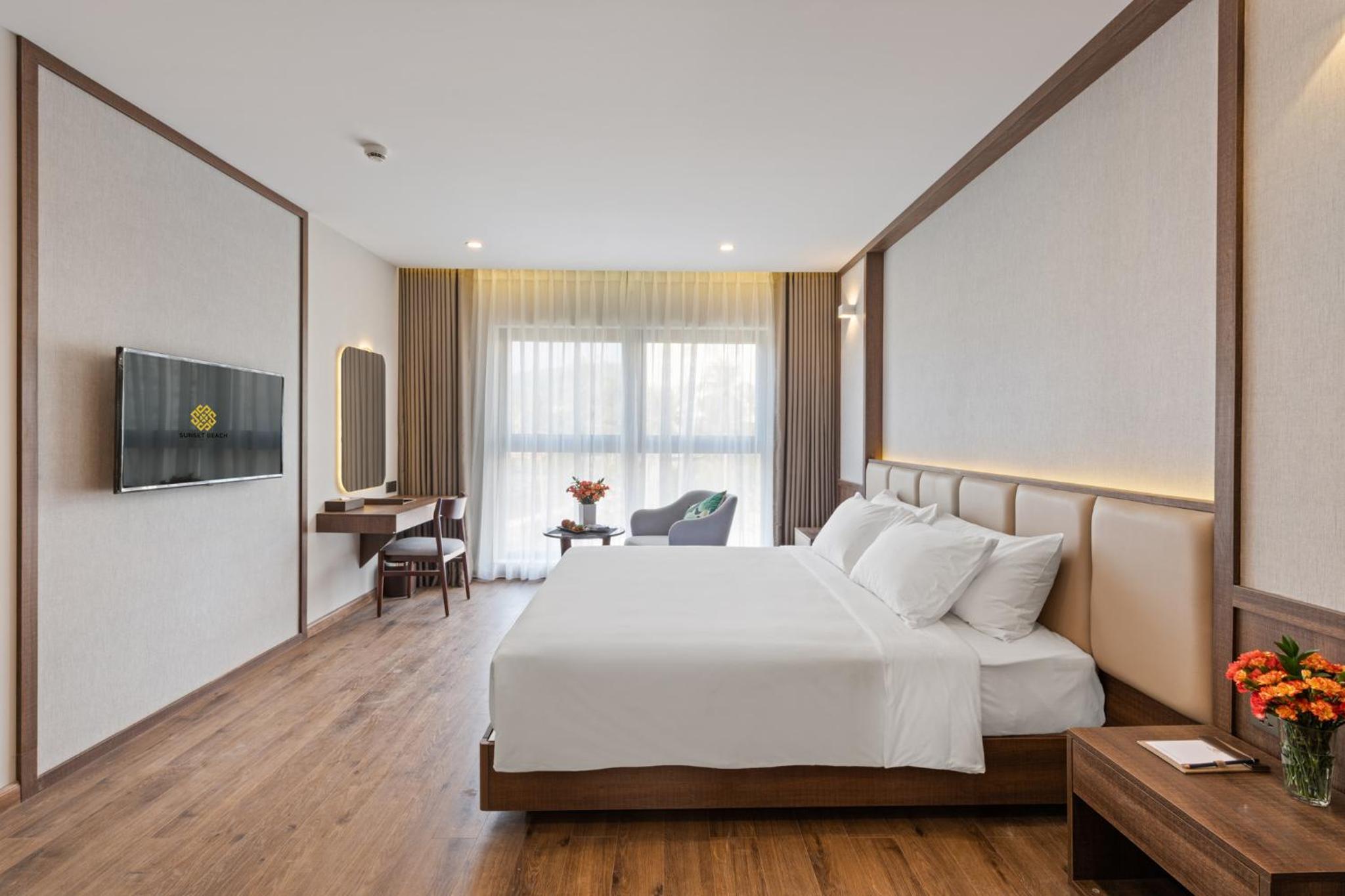 Sunset Beach Resort and Spa, located in Phu Quoc just 200 metres from Long Beach, offers a lavish stay with an outdoor swimming pool, fitness centre, and garden. The 4-star hotel provides free WiFi, room service, and a 24-hour front desk. Each room is elegantly furnished with modern amenities including a flat-screen TV, safety deposit box, and a private bathroom with premium toiletries.