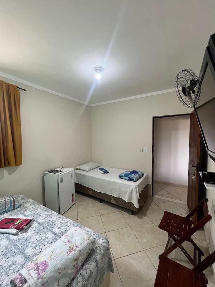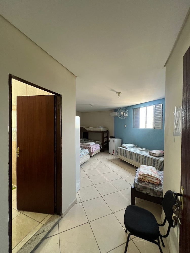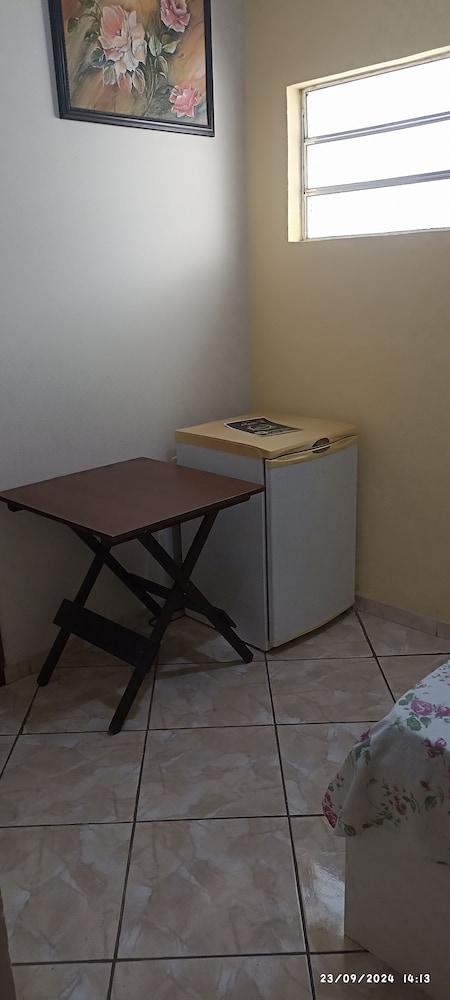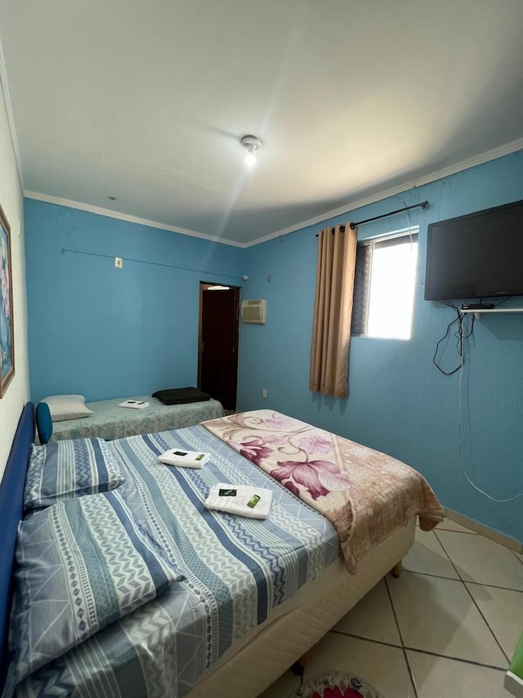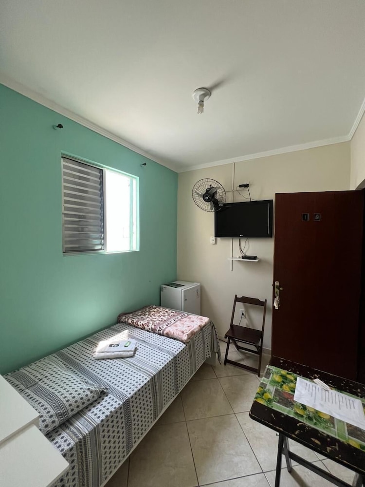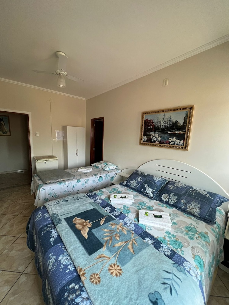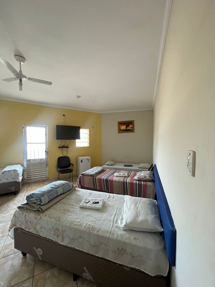 Quanto à acomodação, é modesta, camas razoáveis, banheiro ok, não tive nenhum problema, TV com tamanho legal. Café da manhã simples, a proprietária foi muito educada e se dispos a fazer ovos mexidos para nós na hora, o resto foi básico: pão, manteira, leite, bolo, também tinha disponível torradas e geleias. O frigobar não pode ser usado, serve apenas para o que o dono vende. Estacionamento é na rua, de frente para o hotel.