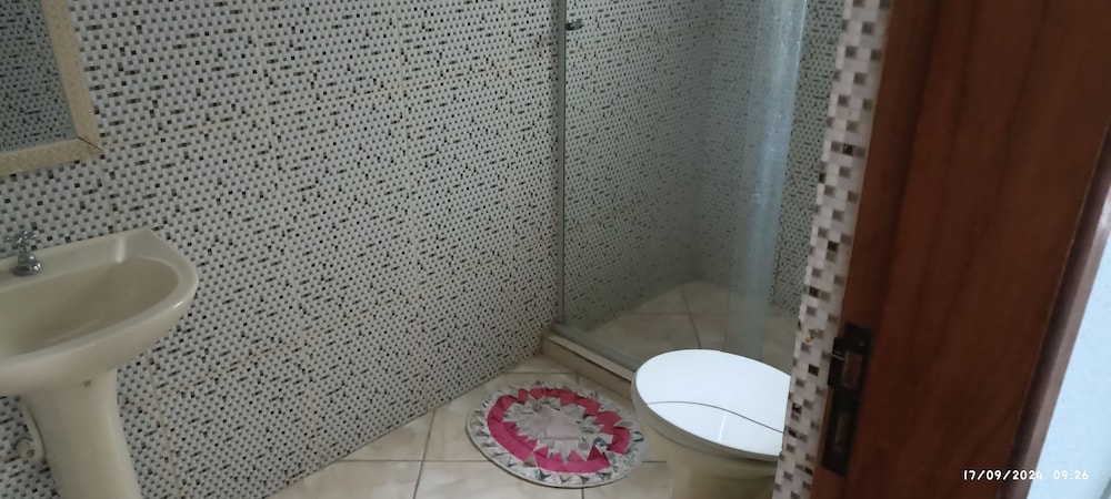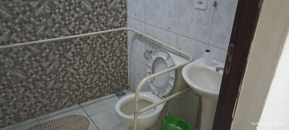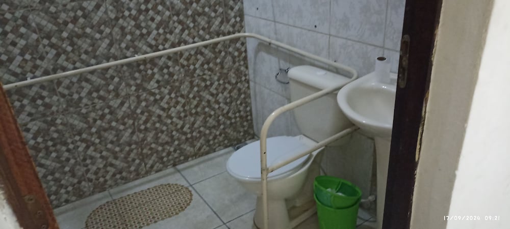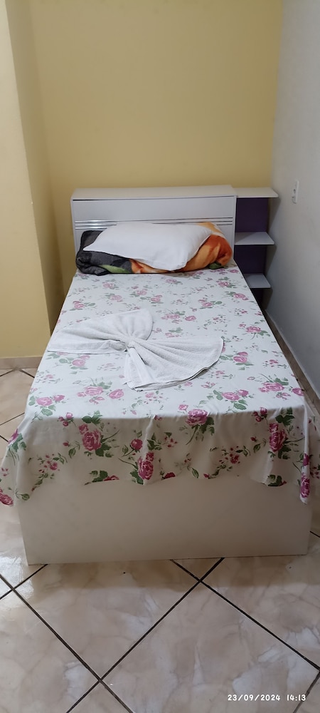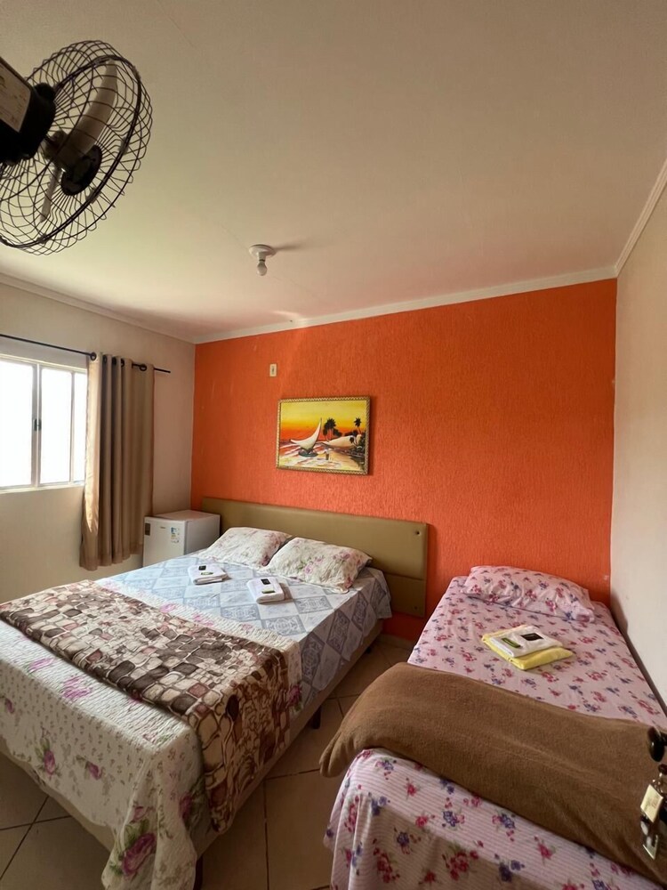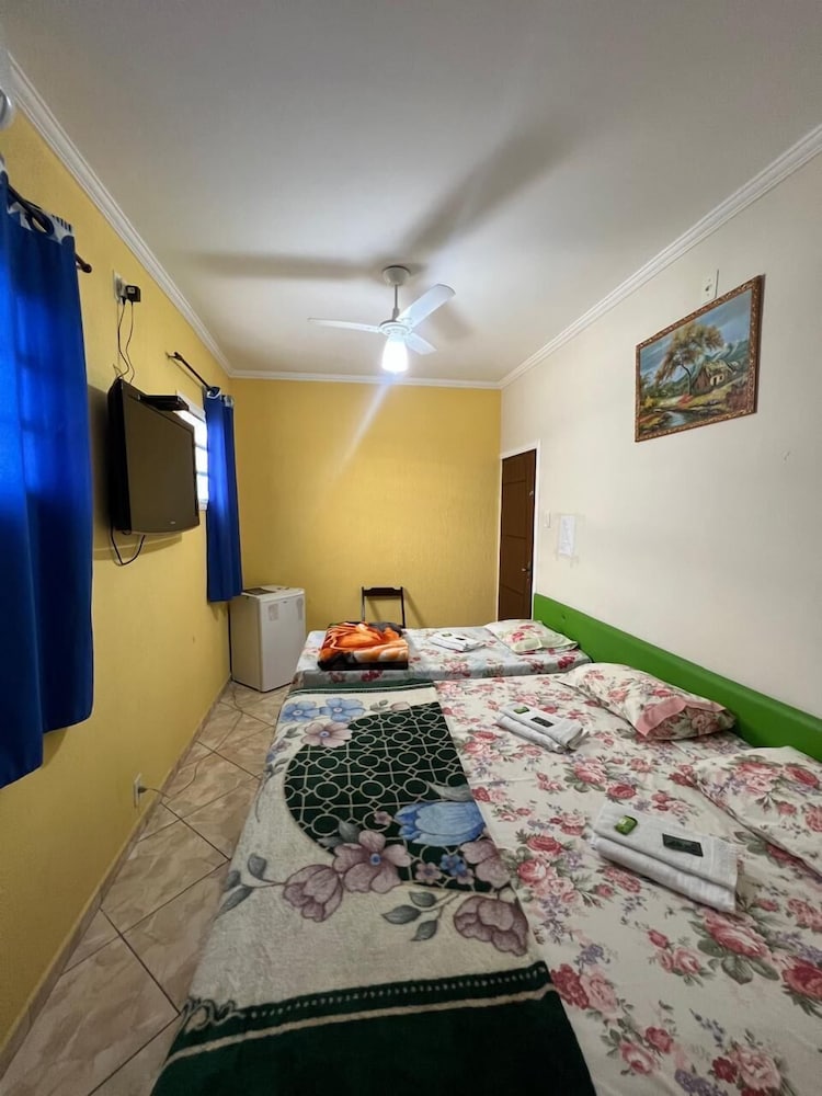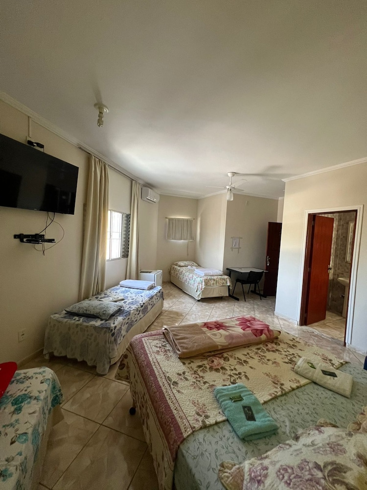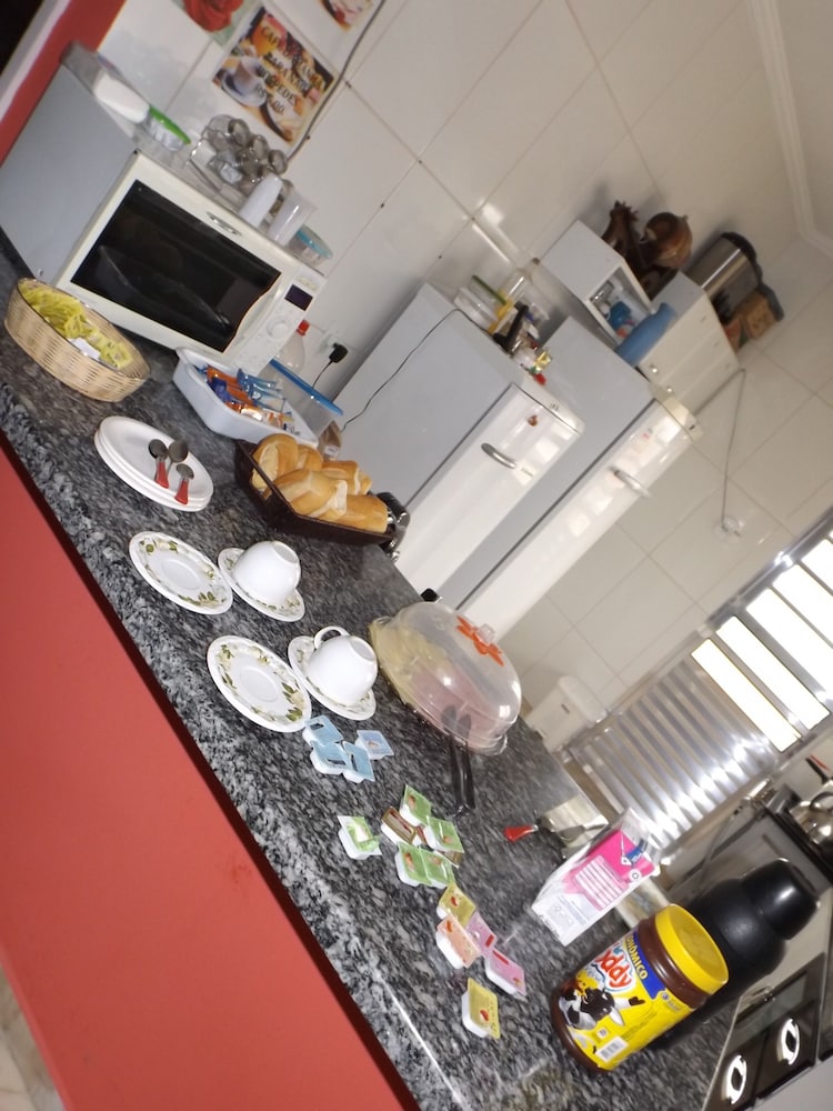Quanto à acomodação, é modesta, camas razoáveis, banheiro ok, não tive nenhum problema, TV com tamanho legal. Café da manhã simples, a proprietária foi muito educada e se dispos a fazer ovos mexidos para nós na hora, o resto foi básico: pão, manteira, leite, bolo, também tinha disponível torradas e geleias. O frigobar não pode ser usado, serve apenas para o que o dono vende. Estacionamento é na rua, de frente para o hotel.