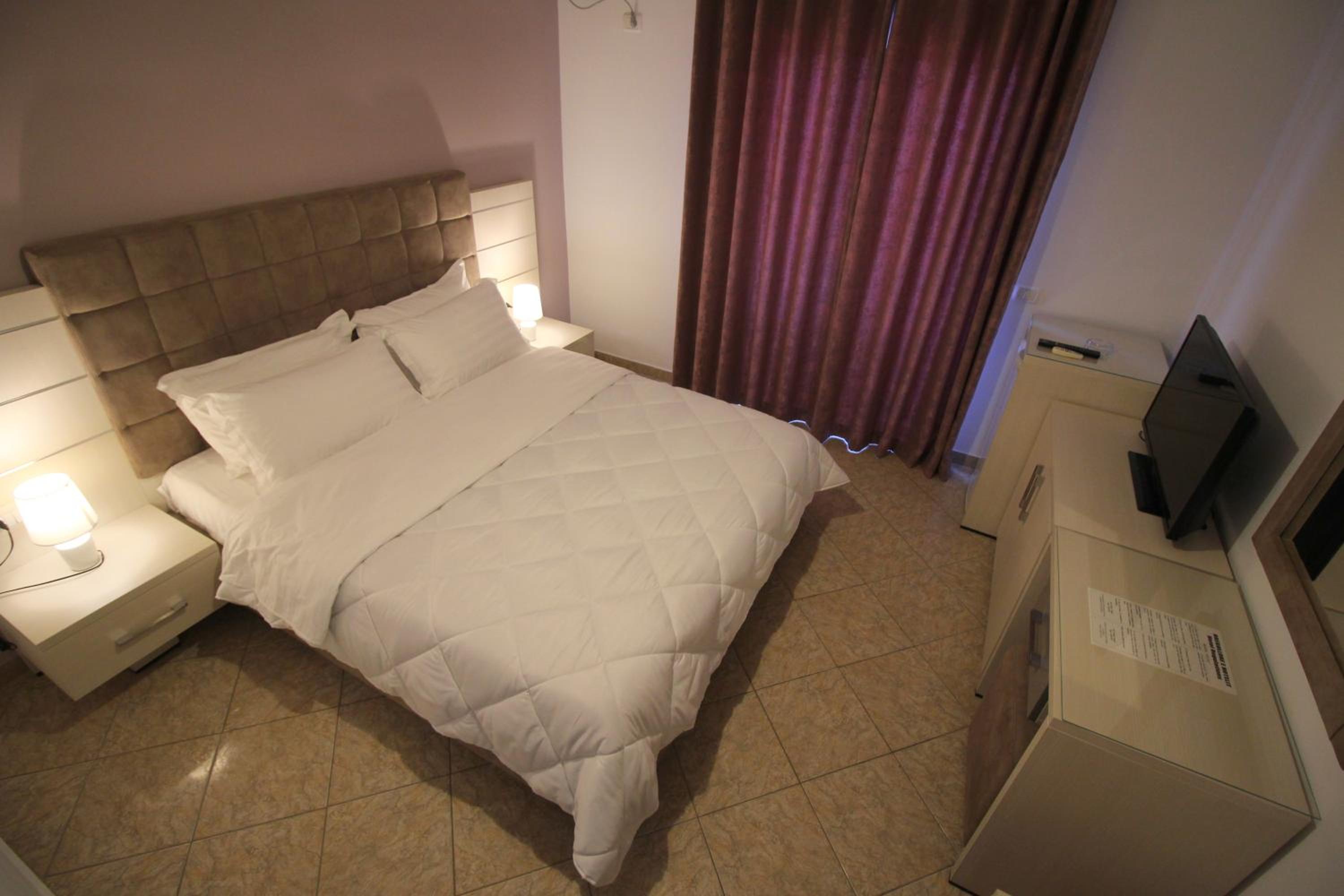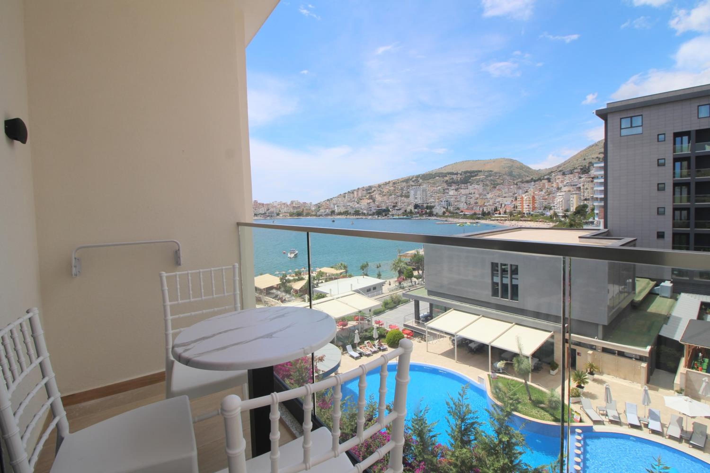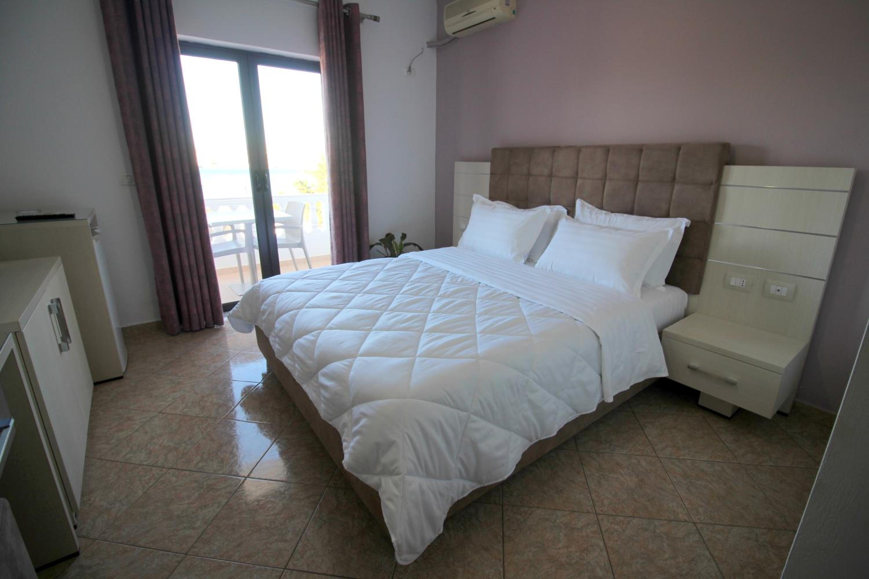 Schönes, sauberes Zimmer mit Balkon und Aussicht über die Bucht von Saranda! Frühstück auf der Dachterrasse, im Winter ziemlich frisch, war ok und es gab nur Filterkaffe! Gute Lage, 5 min zur Promenade