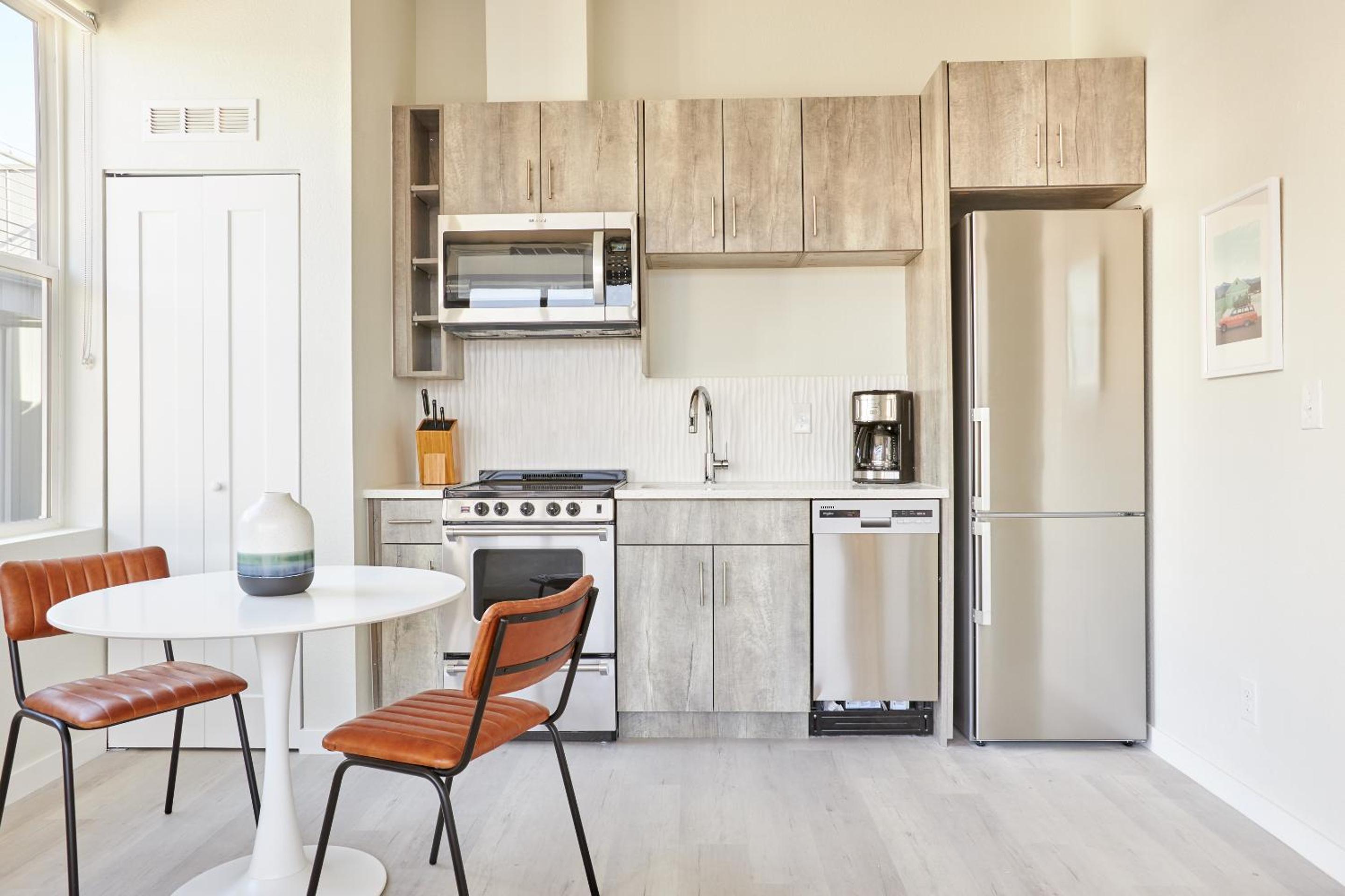 After confirmation, Sonder will reach out to guests through a secure link to gather some information regarding their stay. Sonder may require the guest to provide a photo of their government-issued photo ID. Guests will receive check-in details from property management three days prior to arrival. Please note: the layout, furniture, and decor of your space may vary from these photos. There is no elevator or cable. The rooftop lounge is open from 9 am until 10 pm. Street parking is on a first come, first serve basis. This is a central location and prone to street noise. White noise machines and earplugs have been provided in every space. Sonder offers all guests the ability to book housekeeping services on-demand for a nominal fee. This ensures you can enjoy an uninterrupted and environmentally sustainable stay. Housekeeping services must be scheduled via the Sonder app, 24 hours in advance.