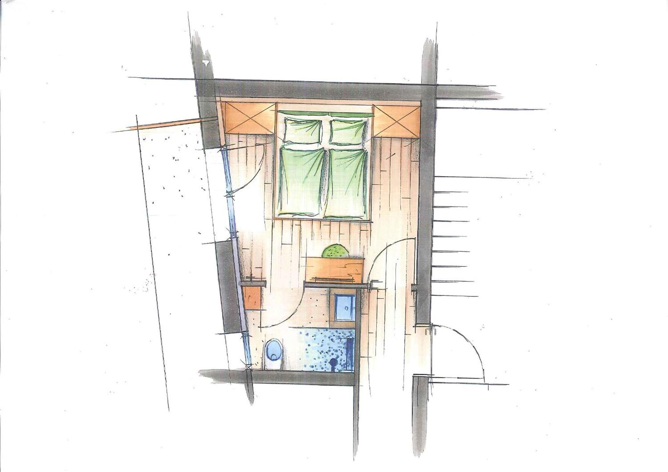 Leider gibt es keinen Aufenthaltsraum. Die Türe zum Bad kann nicht richtig verschlossen werden, sodass es sehr hellhörig ist.