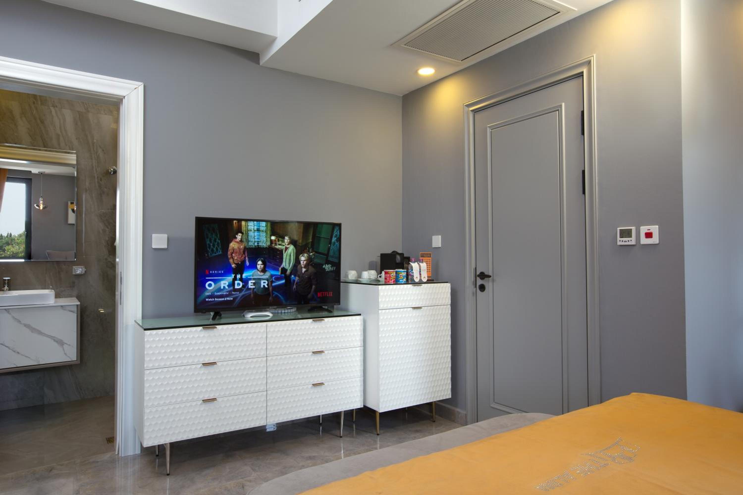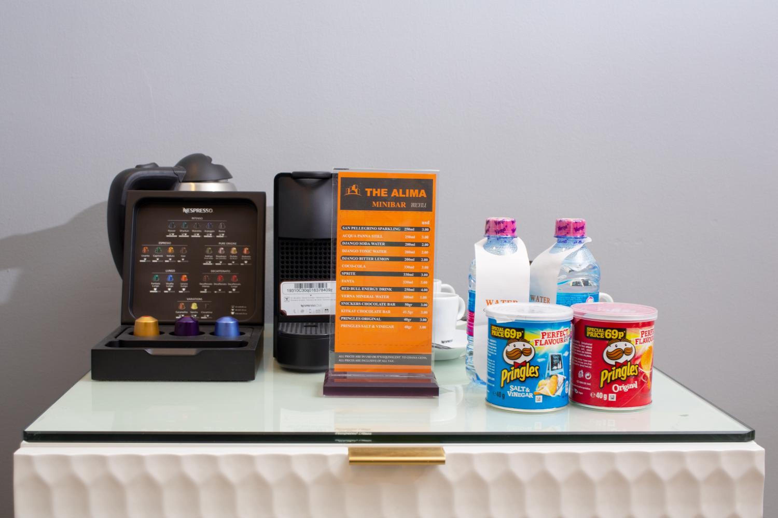Indulge in comfort at The Alima Suites with air-conditioned rooms equipped with modern amenities like a coffee machine, minibar, and flat-screen TV.