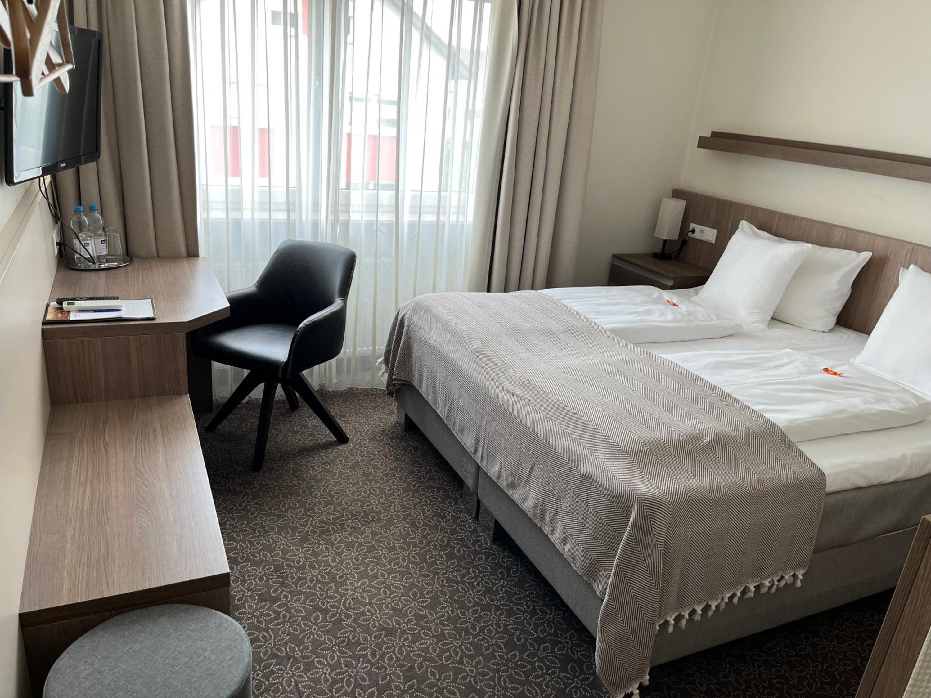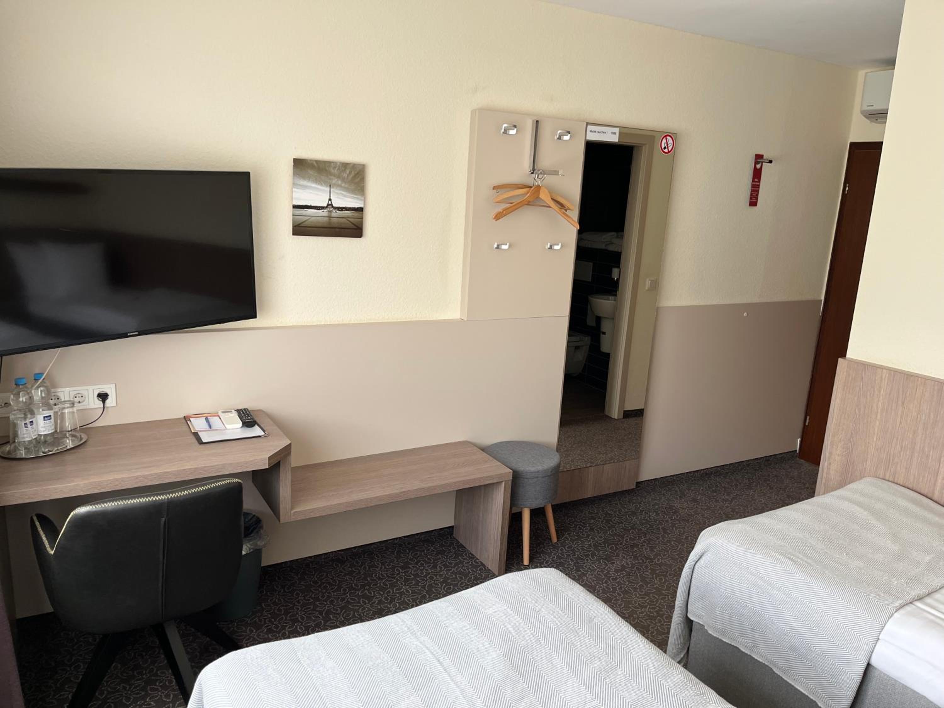 Die Zimmer waren sauber, neu ausgestattet. Das Frühstück war gut! Wir waren sehr zufrieden.