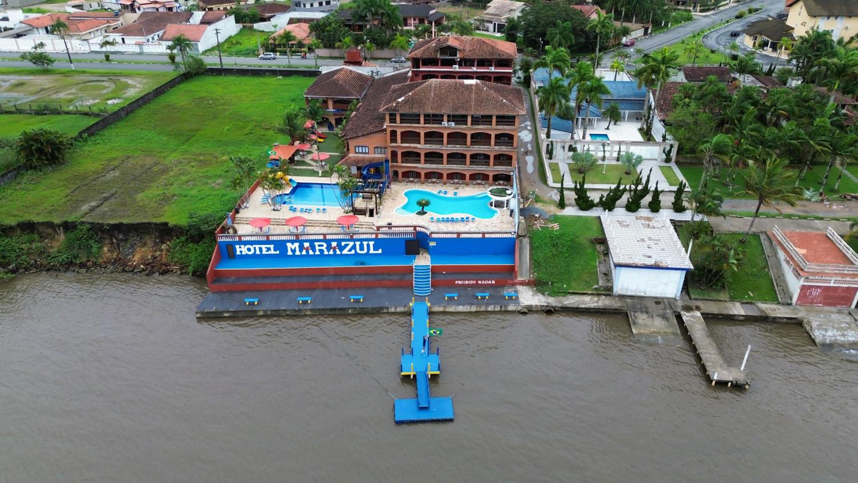 Hotel Marazul in Cananéia offers a picturesque beachfront setting with an outdoor pool, garden, and shared lounge.