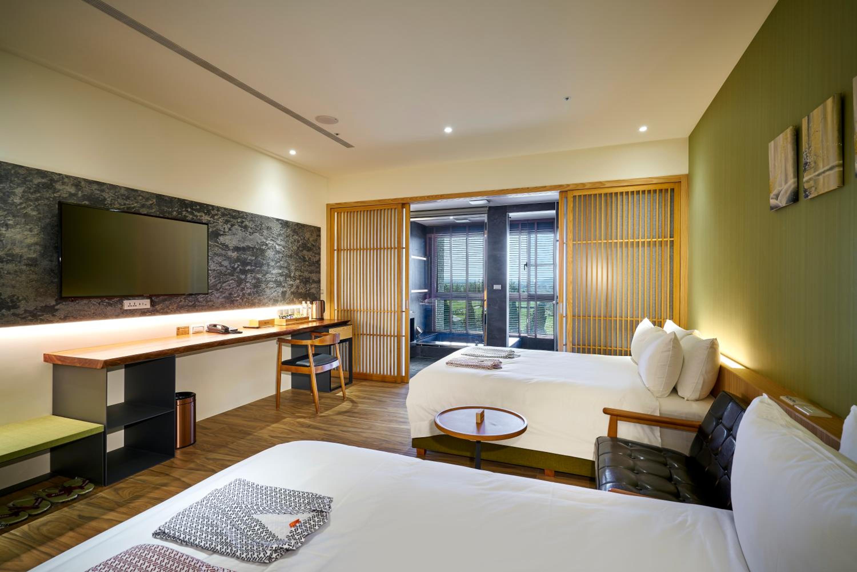 Shine Mood Resort Yuanli offers a luxurious stay with modern amenities including air-conditioned rooms, free WiFi, and a hot spring bath. Each room is equipped with a fridge, minibar, and free toiletries for ultimate comfort.