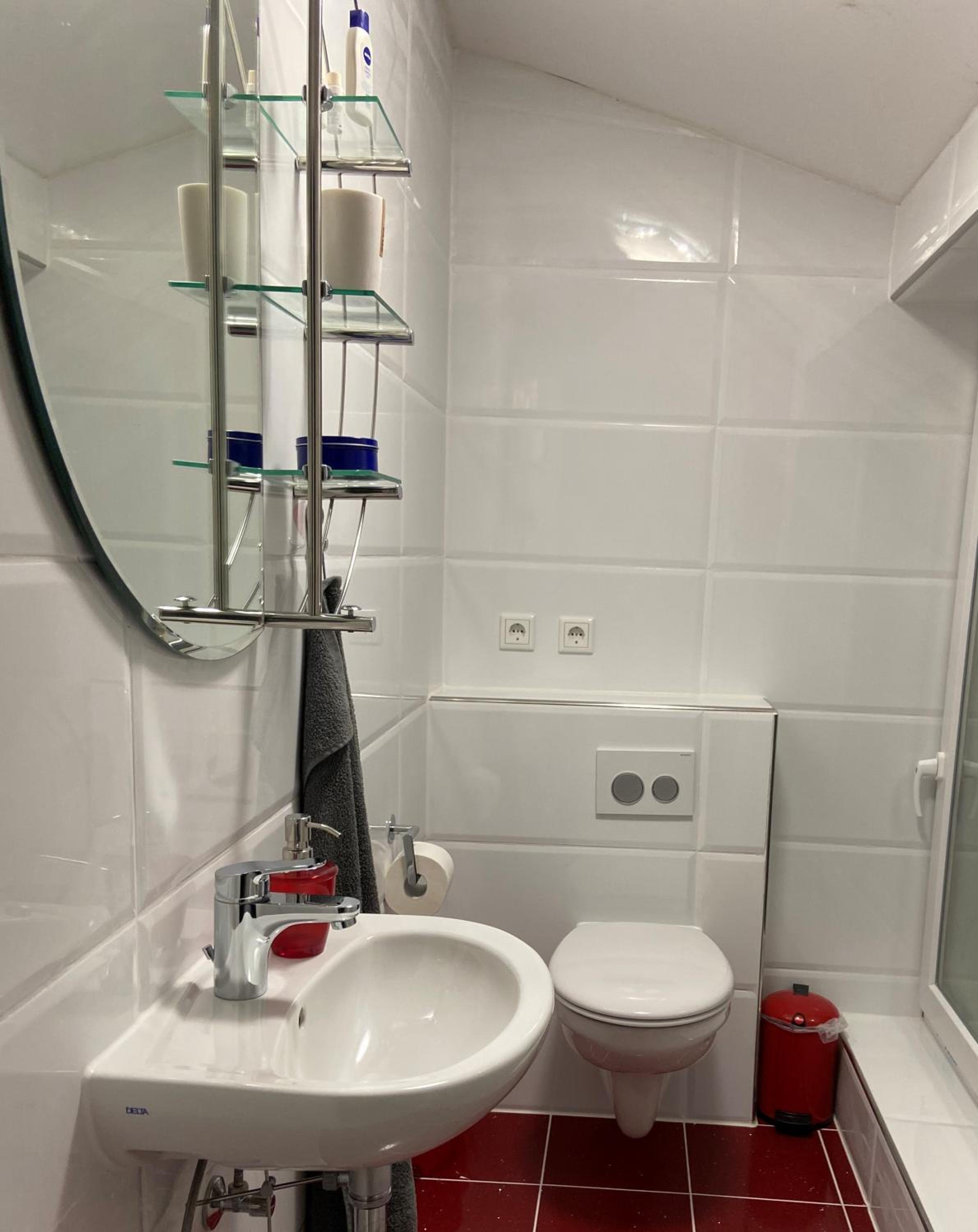 Der Fussboden im Bad ist zu glatt. Ich bin gestürzt und habe mir Prellungen zugezogen und 14 Tage lang Schmerzen. Rutschsicherere Fußmatten hätten das verhindert. Eine Nachrüstung wäre angebracht.