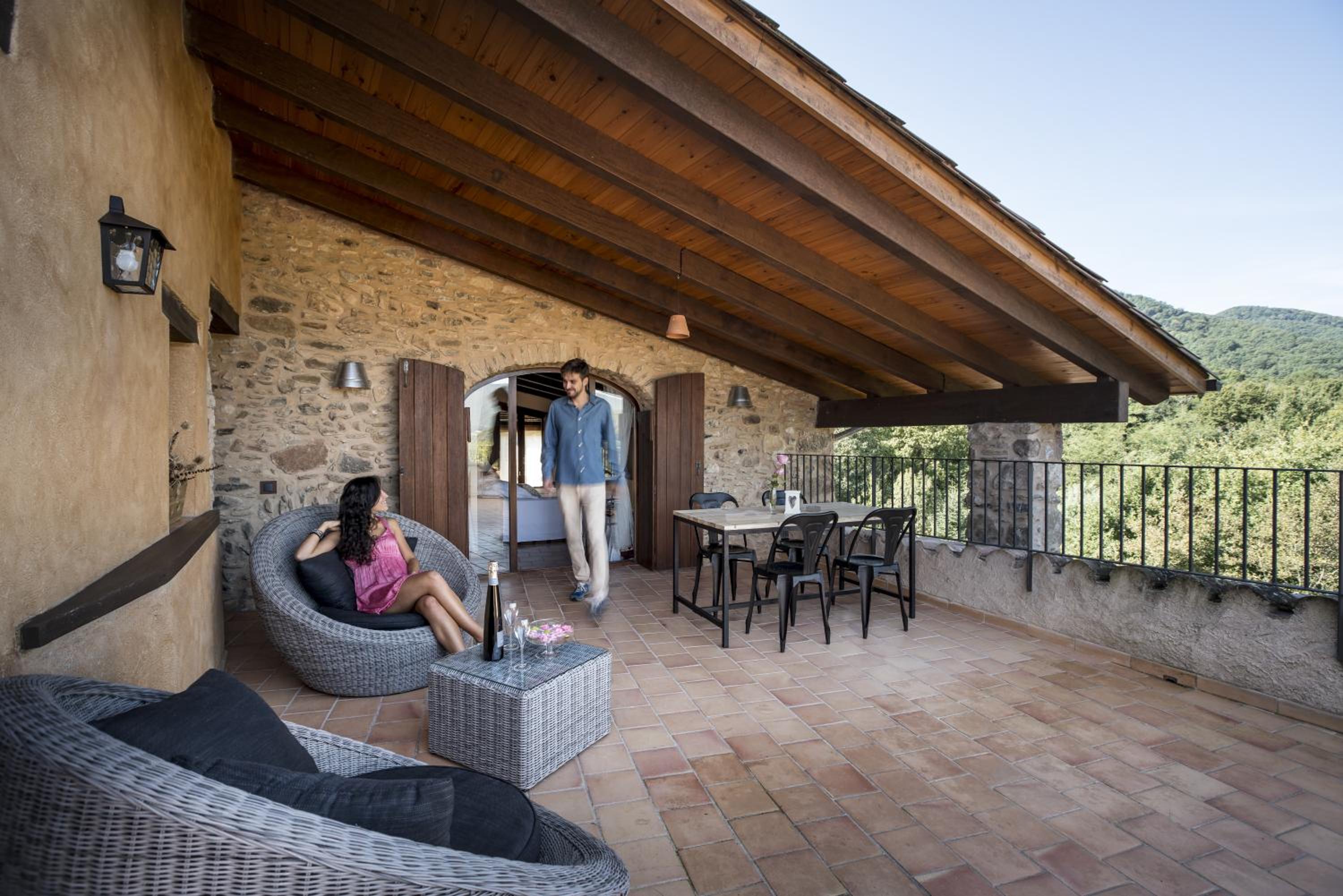 Hotel Mas la Ferreria in La Vall de Bianya offers a picturesque retreat with stunning mountain views and a refreshing outdoor pool. Relax on the terrace or balcony of your room and take in the beauty of the surroundings.