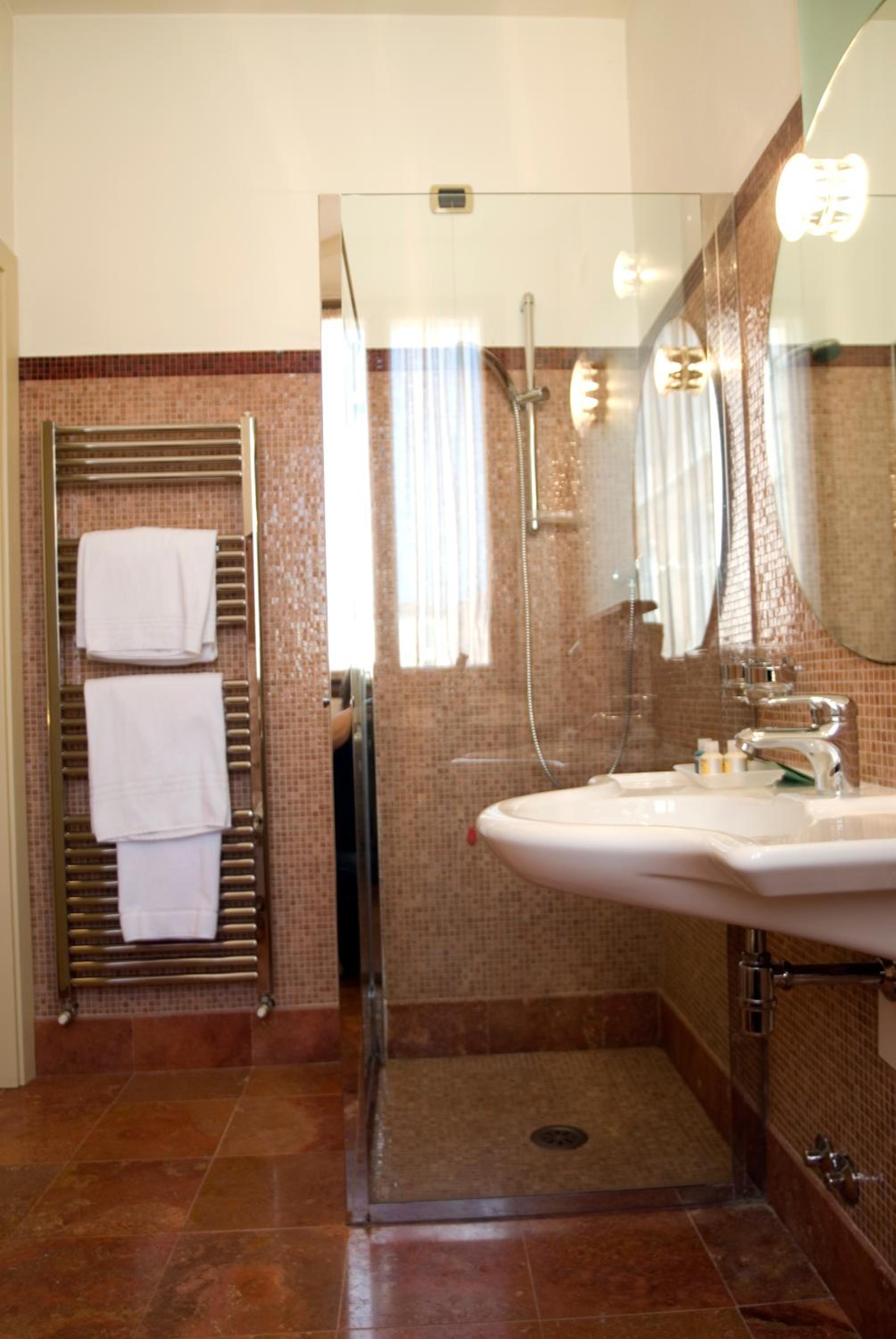 E' un edificio storico ristrutturato mantenendone la storicità, per questo non può avere le caratteristiche di un hotel moderno. La sala interna per la cena molto bella, sembra di essere in piazza, la colazione buona, preparano loro tutto al tavolo, preferisco essere io a scegliere cosa prendere, comunque era tutto molto buono ed abbondante.