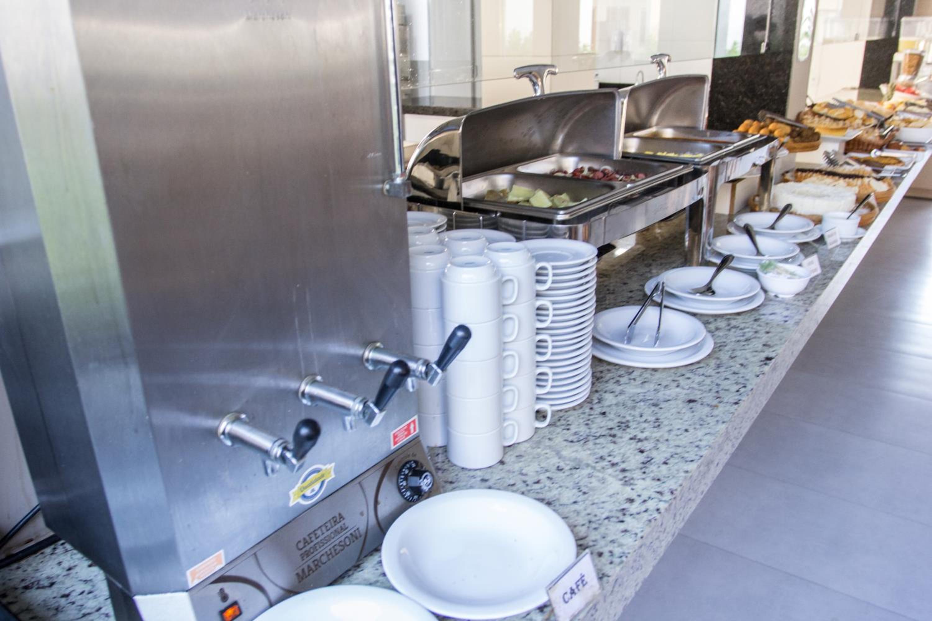 Café da manhã bom com várias opções, piscina, quarto amplo e confortável, boa localização, vários comércios na região.