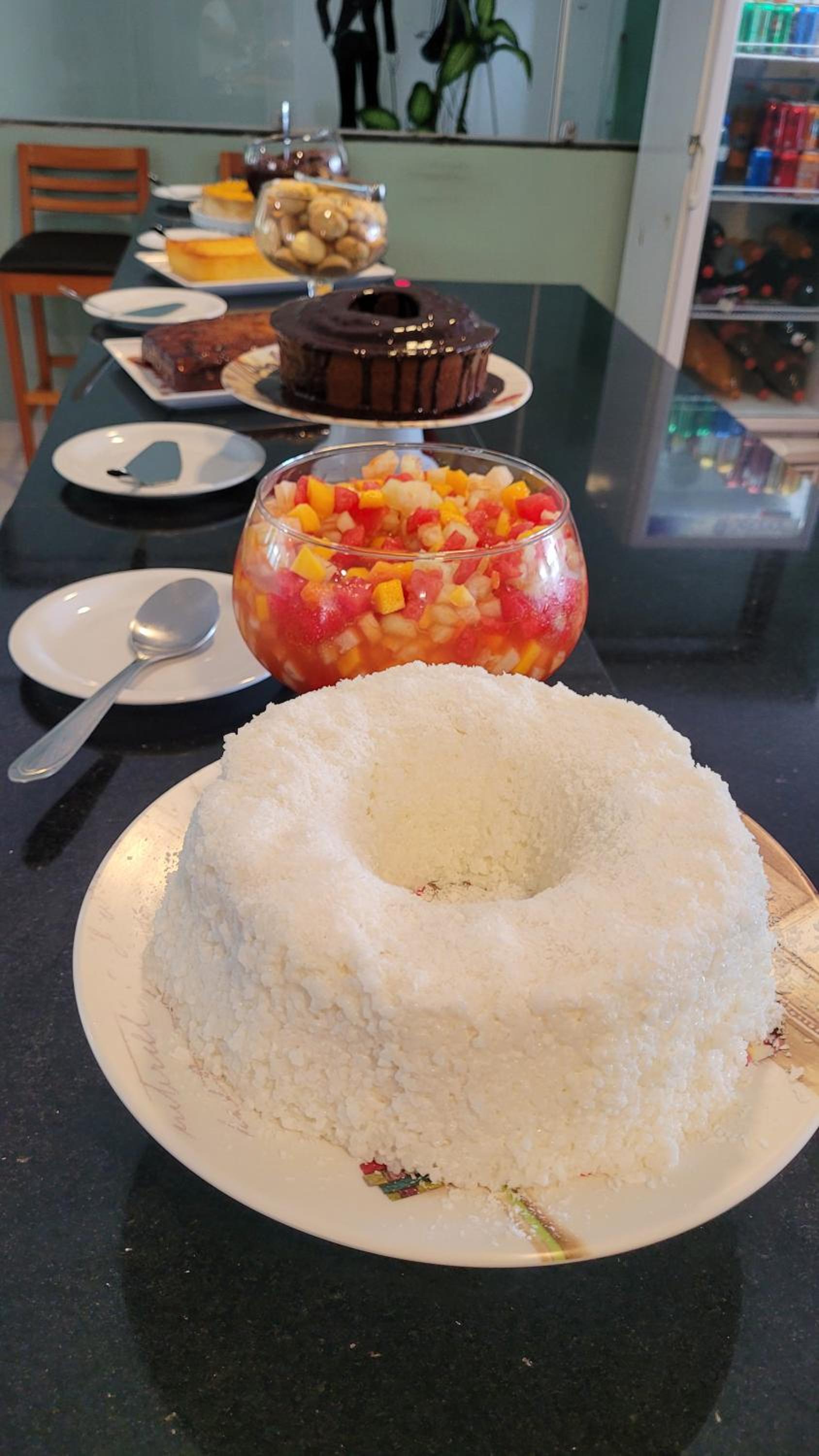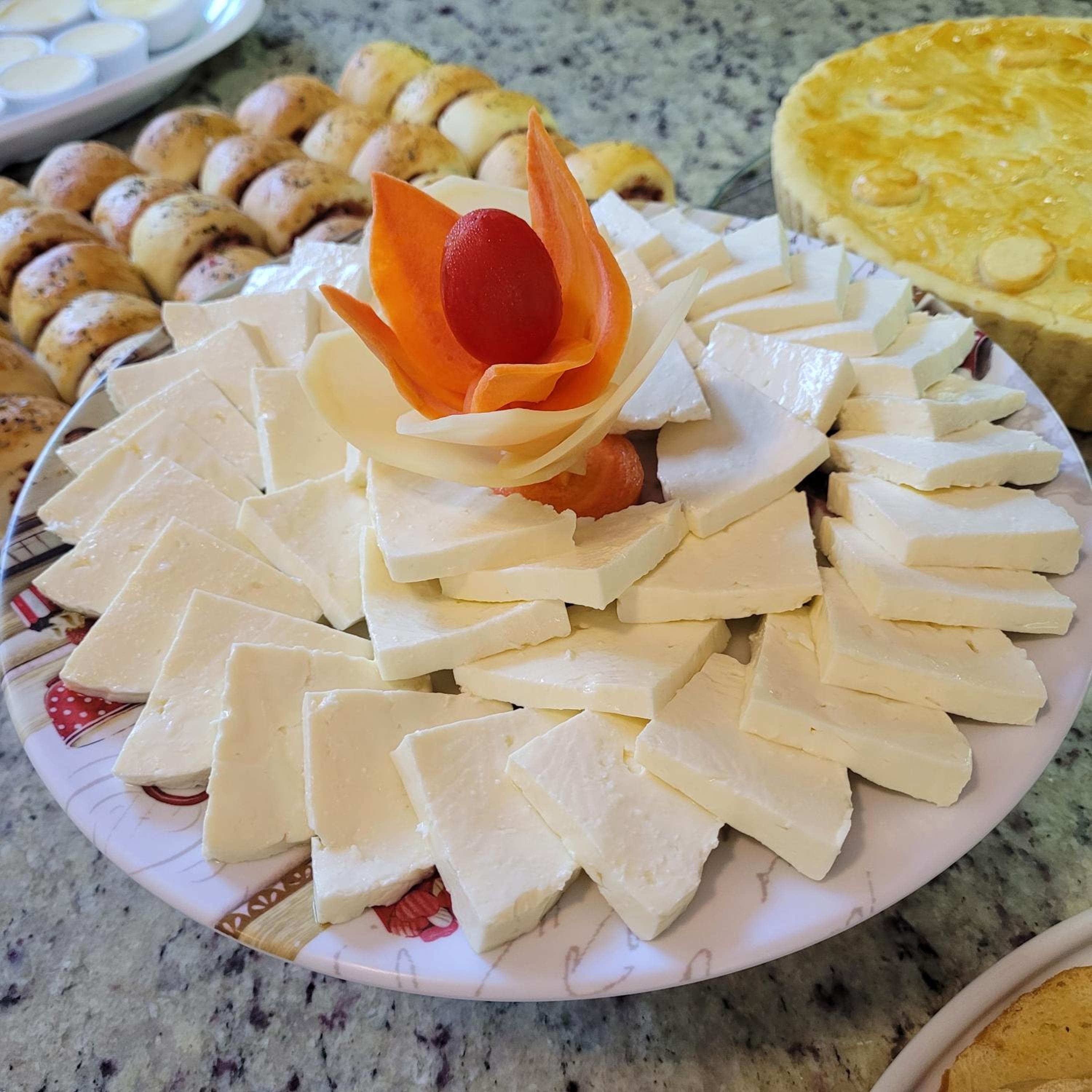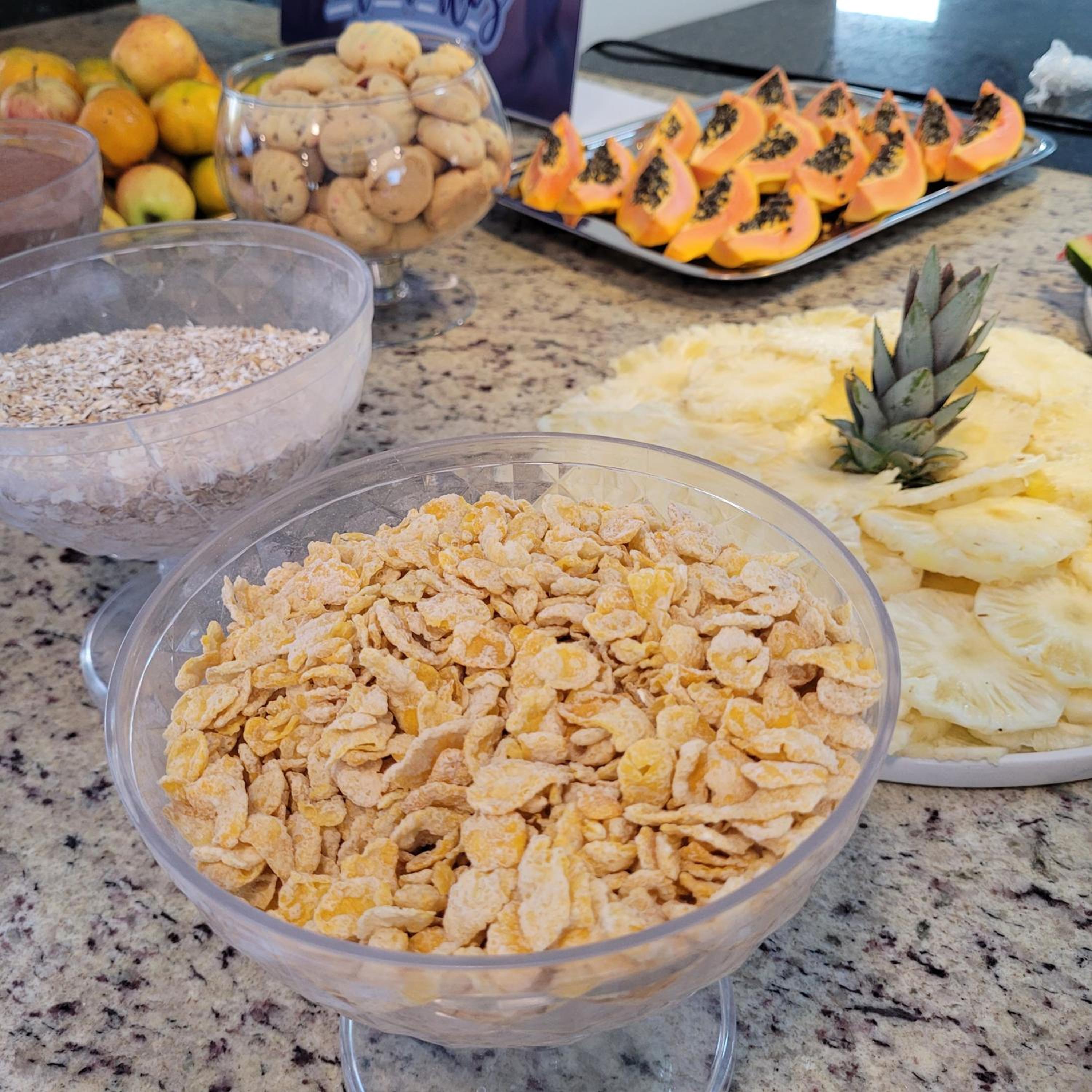 Café da manhã bom, área da piscina aconchegante.