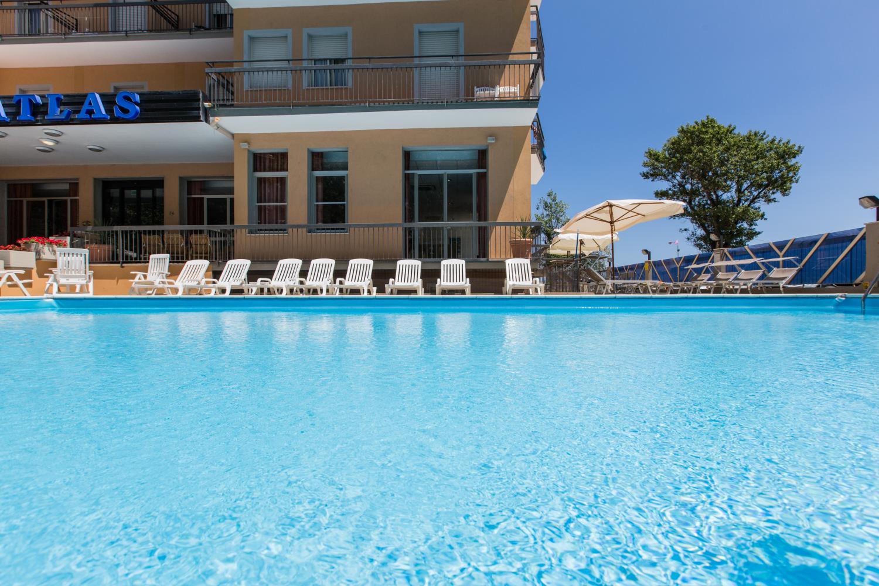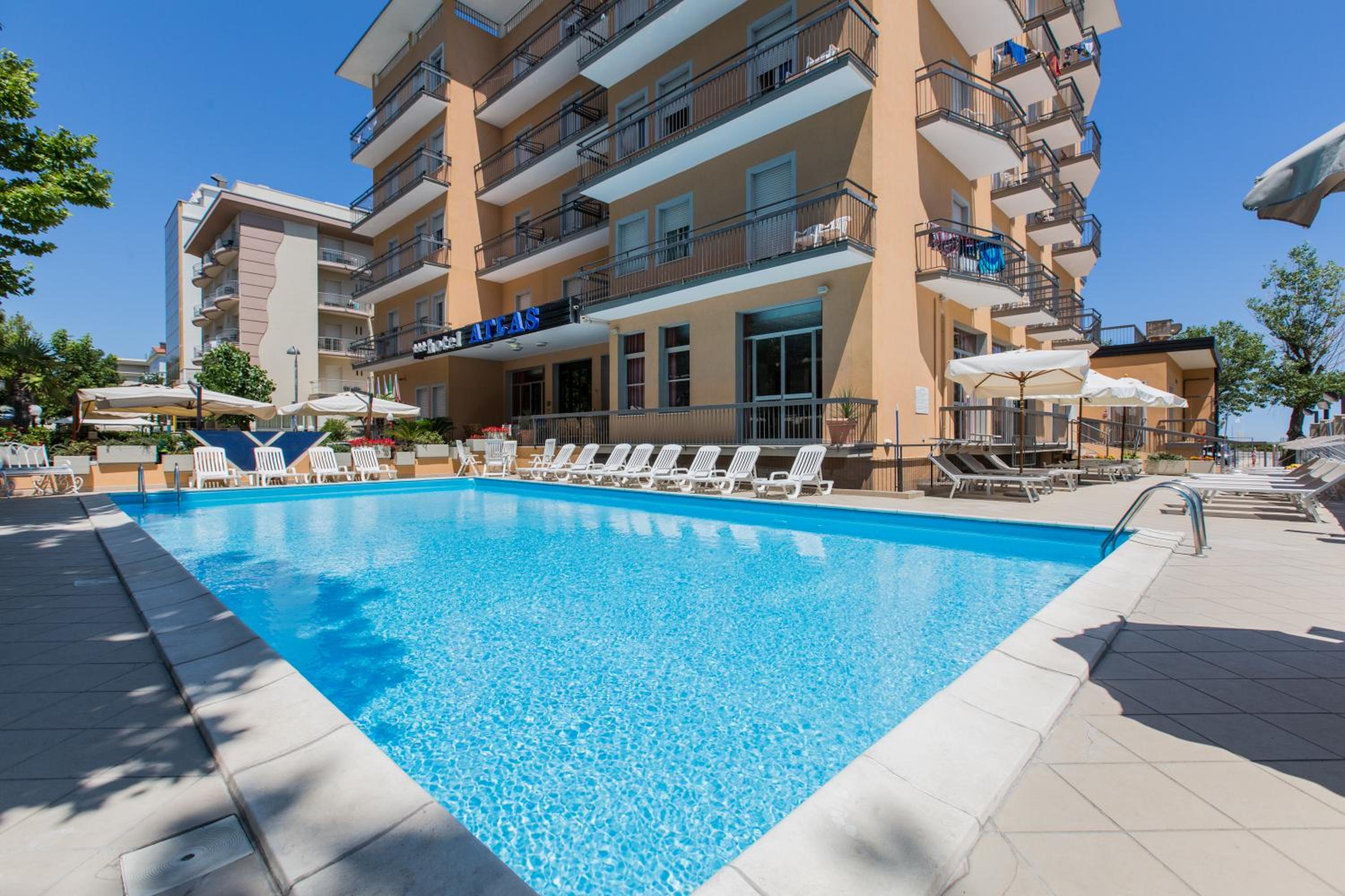 The Hotel Atlas in Rimini's Marina Centro area offers a luxurious stay with an outdoor pool and free Wi-Fi. Breathtaking Views and Comfortable Rooms Each room features air conditioning, a balcony (some with sea views), and a private bathroom with complimentary toiletries. Culinary Delights and Convenience Enjoy a delicious breakfast spread and savor traditional Italian dishes at the on-site restaurant. Convenient Location With a bus stop right opposite the hotel, explore Rimini, Riccione, and easily reach the train station and airport. Book your stay at Hotel Atlas for a memorable experience.