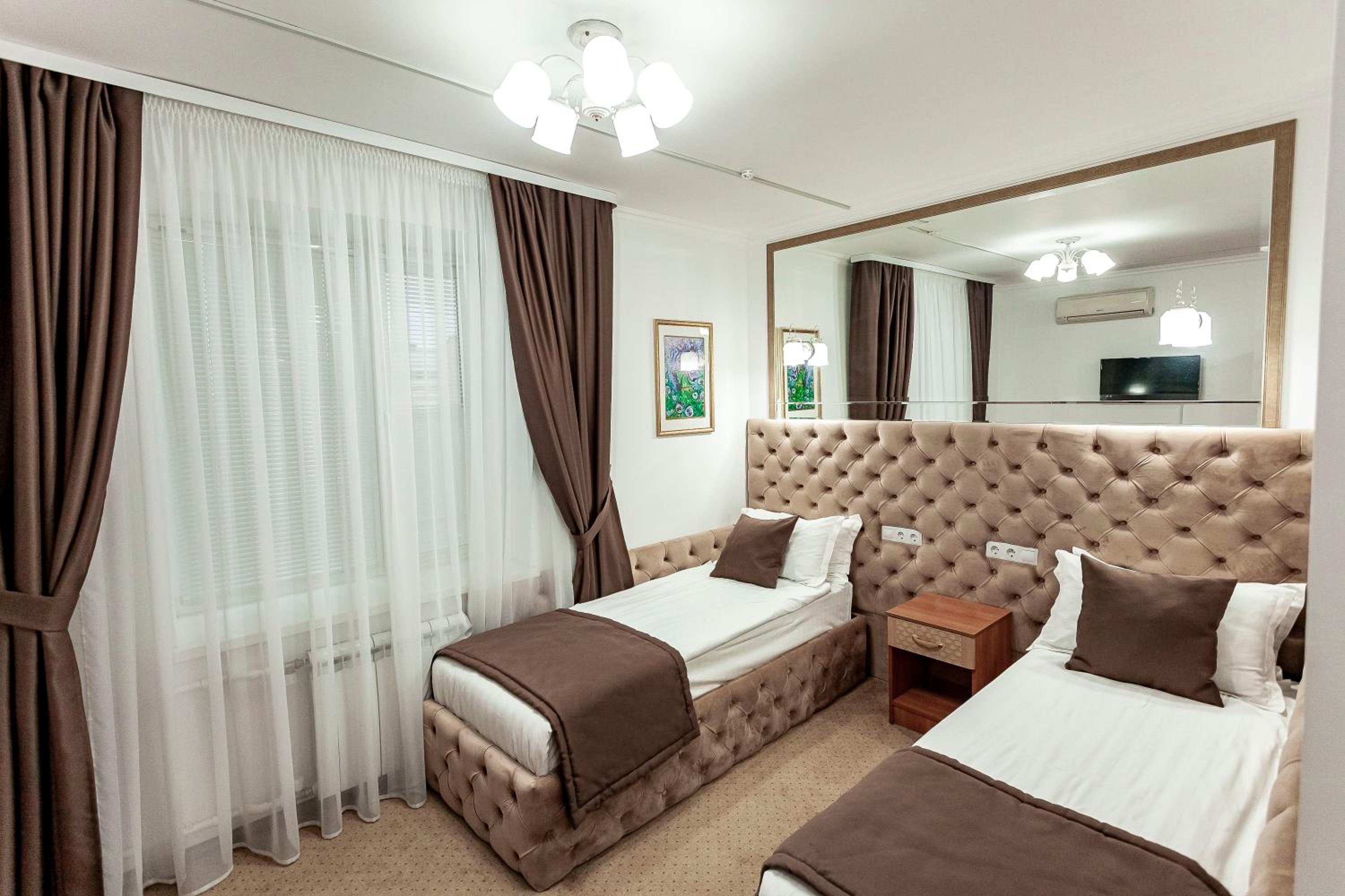 Удобное местоположение, своя закрытая парковка, через двор прекрасная чайхана, очень 😋. Единственное что не понравилось, матрасы твёрдые, людям с малым весом может быть не очень удобно.