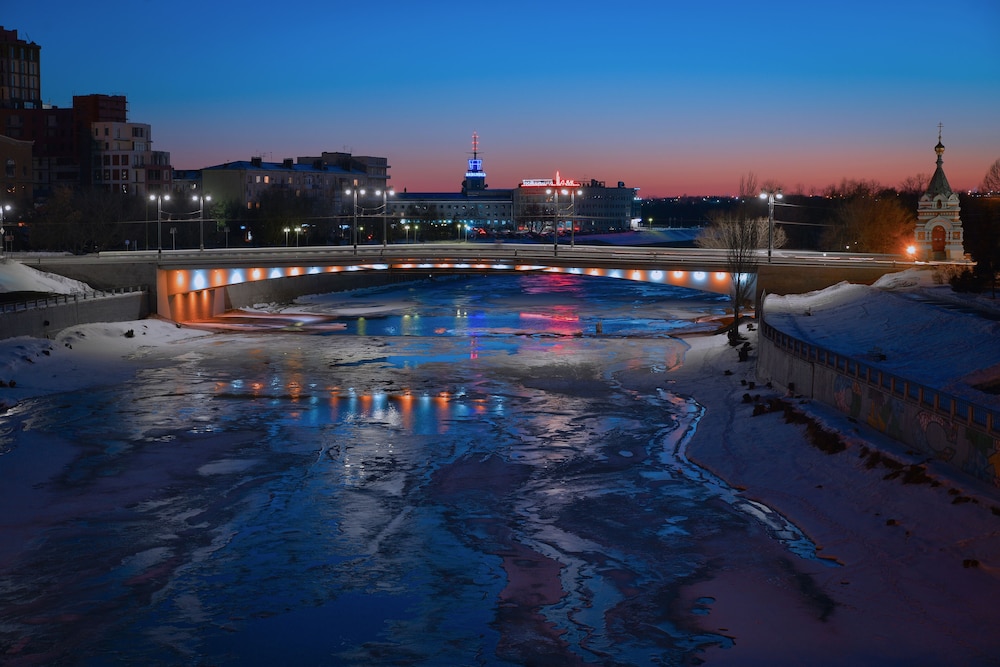 Centrally located in Omsk, Hotel Mayak - Om Building provides easy access to popular landmarks like Buchholz Square and Batushkin Mansion within a 5-minute walk. Enjoy exploring the city with key attractions just steps away.