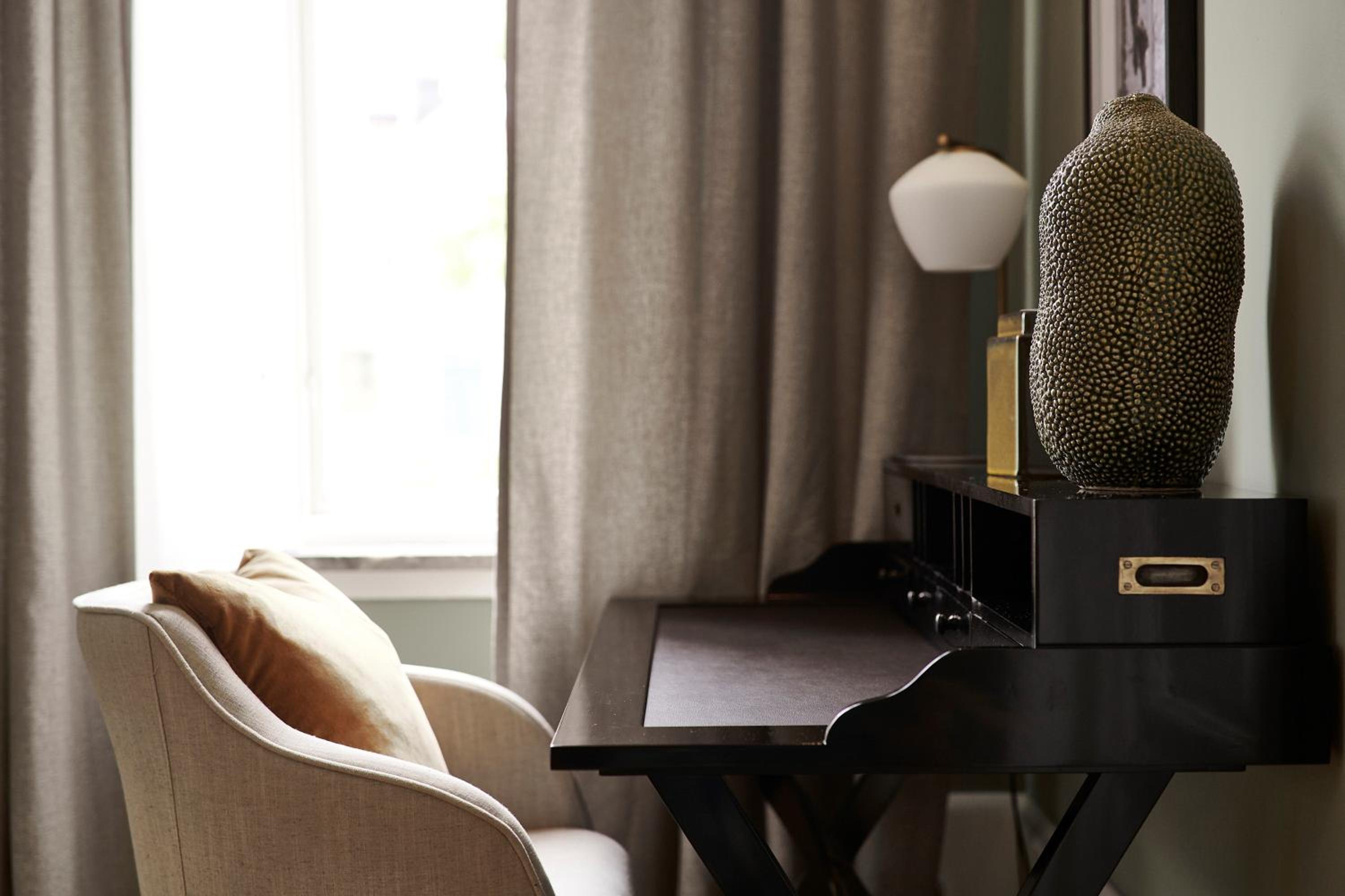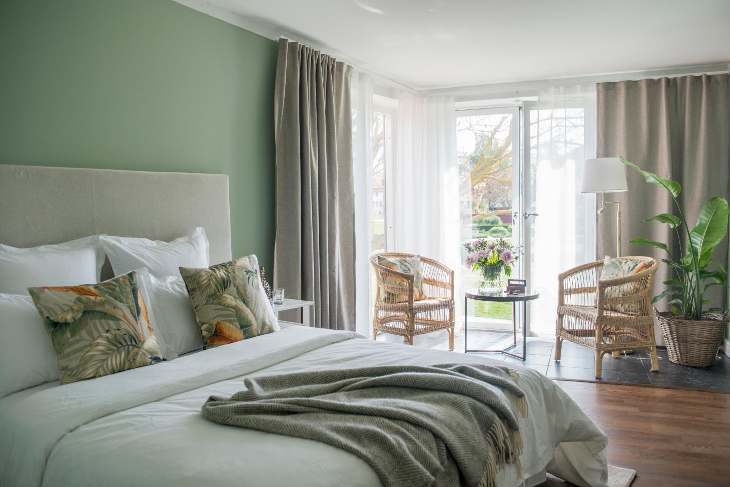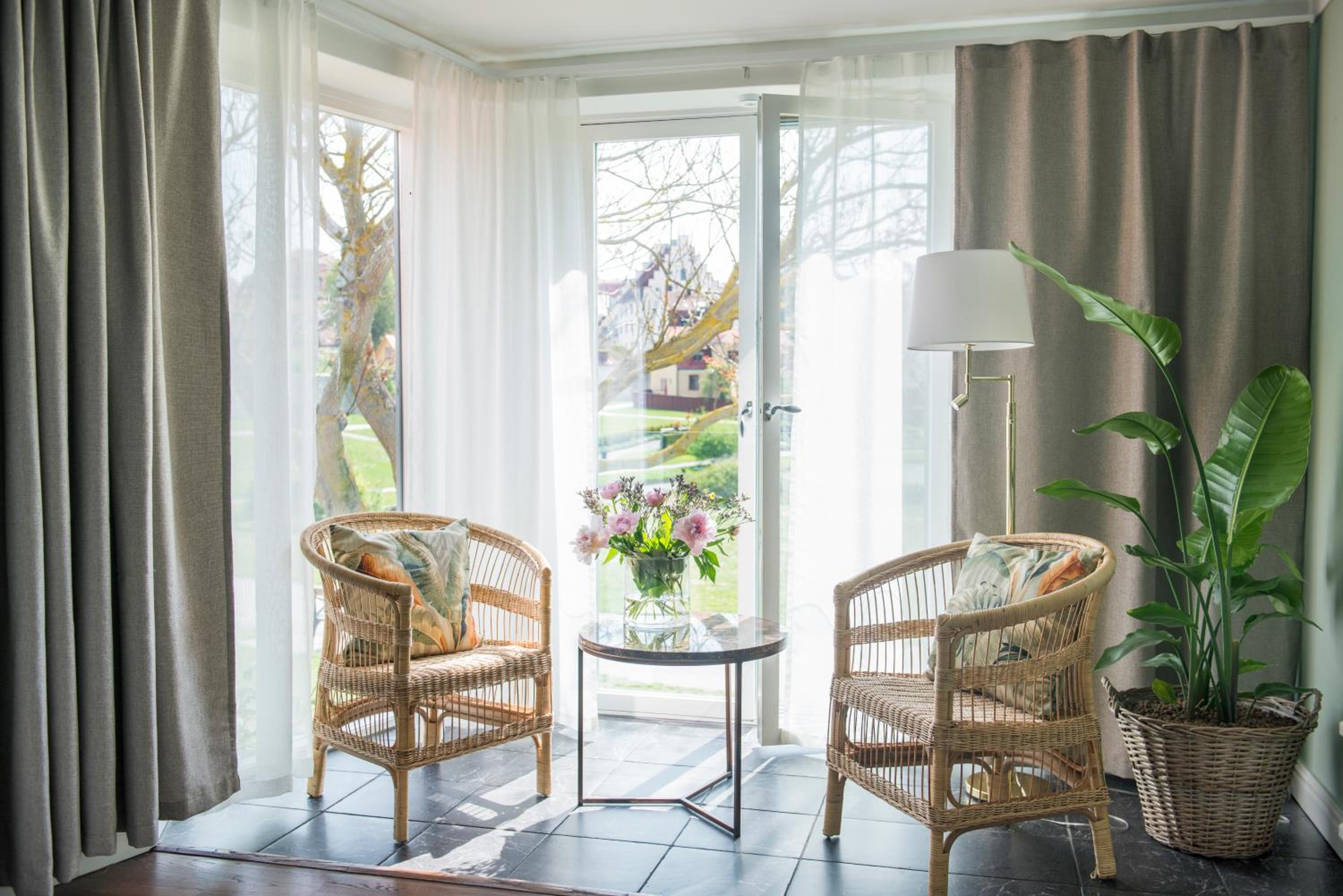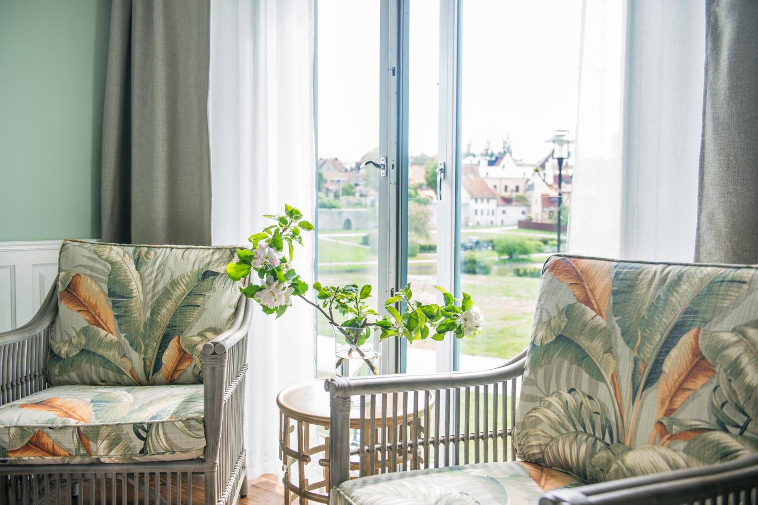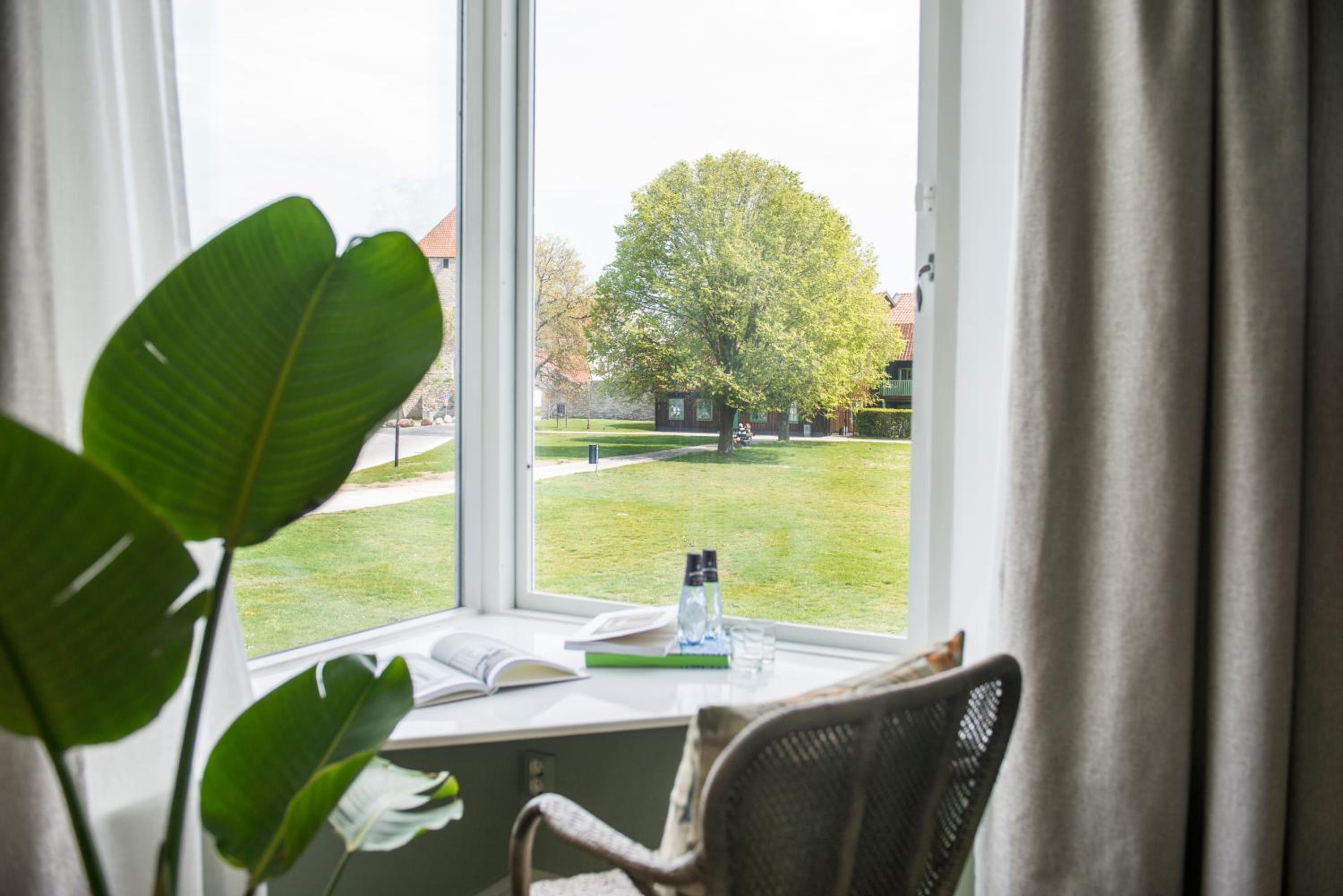 Individually Decorated Rooms: Enjoy tastefully decorated rooms with modern amenities including a flat-screen TV and private bathroom, all offering stunning views of the Baltic Sea or Almedalen Park.