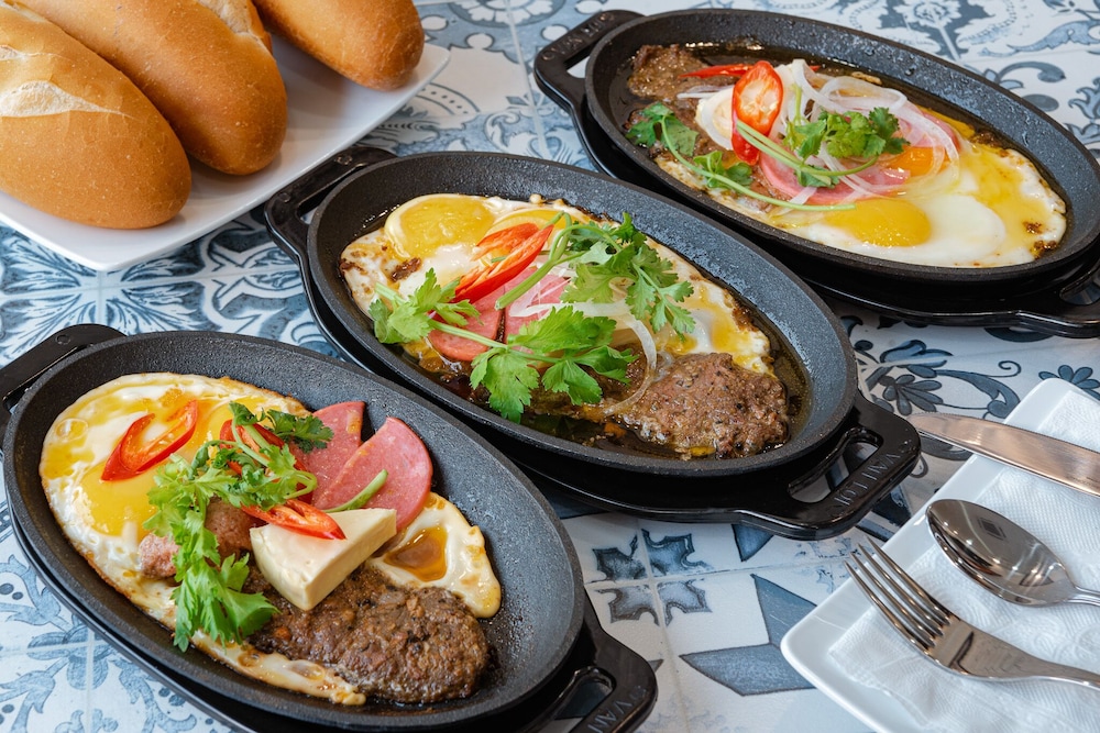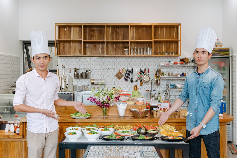 Beautiful place and can’t beat it for the price! We stayed for a couple days and although the facilities could use some TLC it was incredible. The breakfast was not a buffet, but understandable as there were only two couples while we stayed(just out of rainy season not so busy). We were served fried eggs, toast, Pho, fresh fruit, veggies, etc. The staff was very welcoming and the owner was super friendly and personable. It was about a 10 minute walk to the beach, and walking through the alleys there are excellent restaurants and cafes within minutes of our hotel. Highly recommend this place!