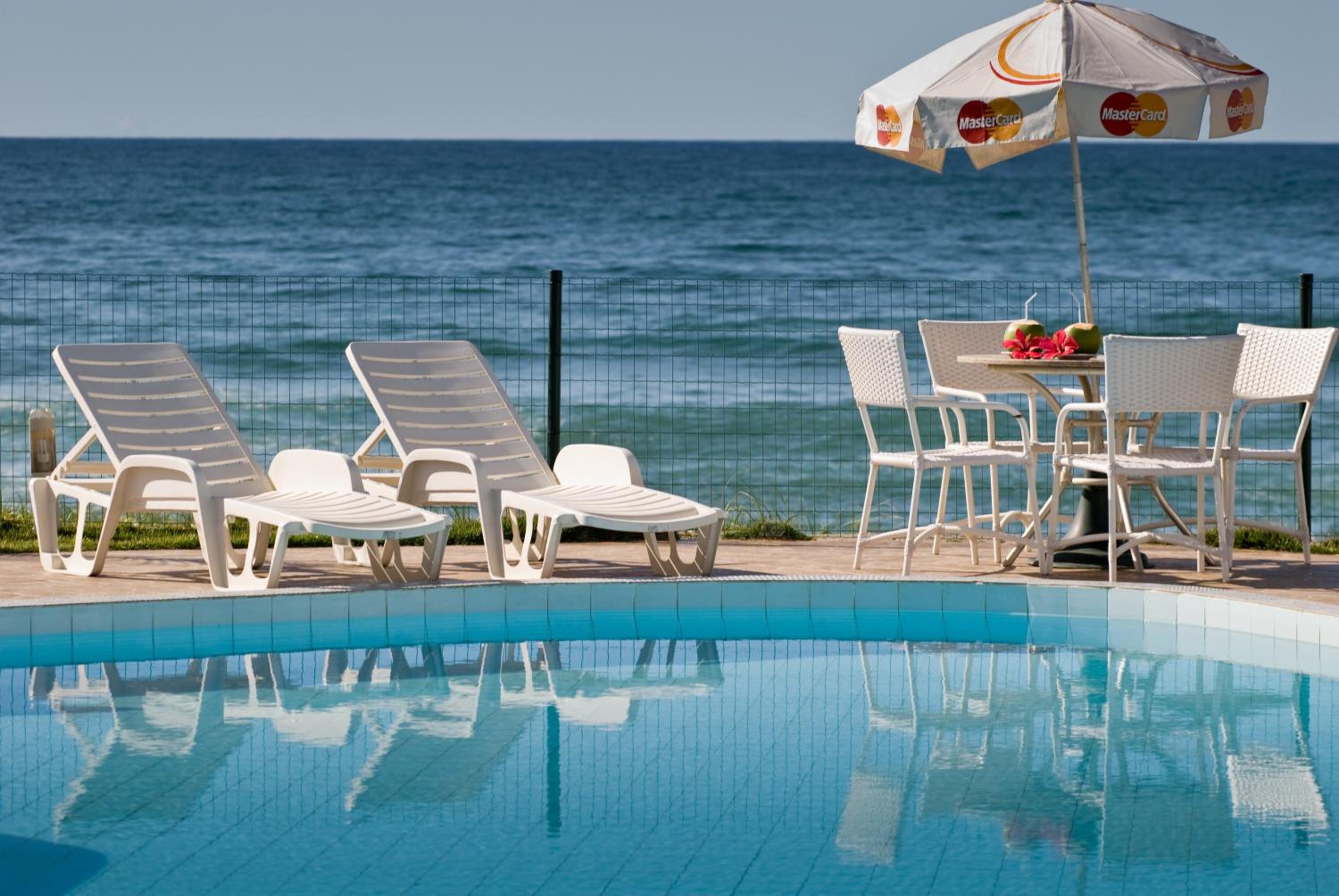 Unwind by the outdoor pool or savor delicious meals at the on-site restaurant. The hotel also features a bar where you can enjoy refreshing drinks while taking in the beautiful beach scenery.