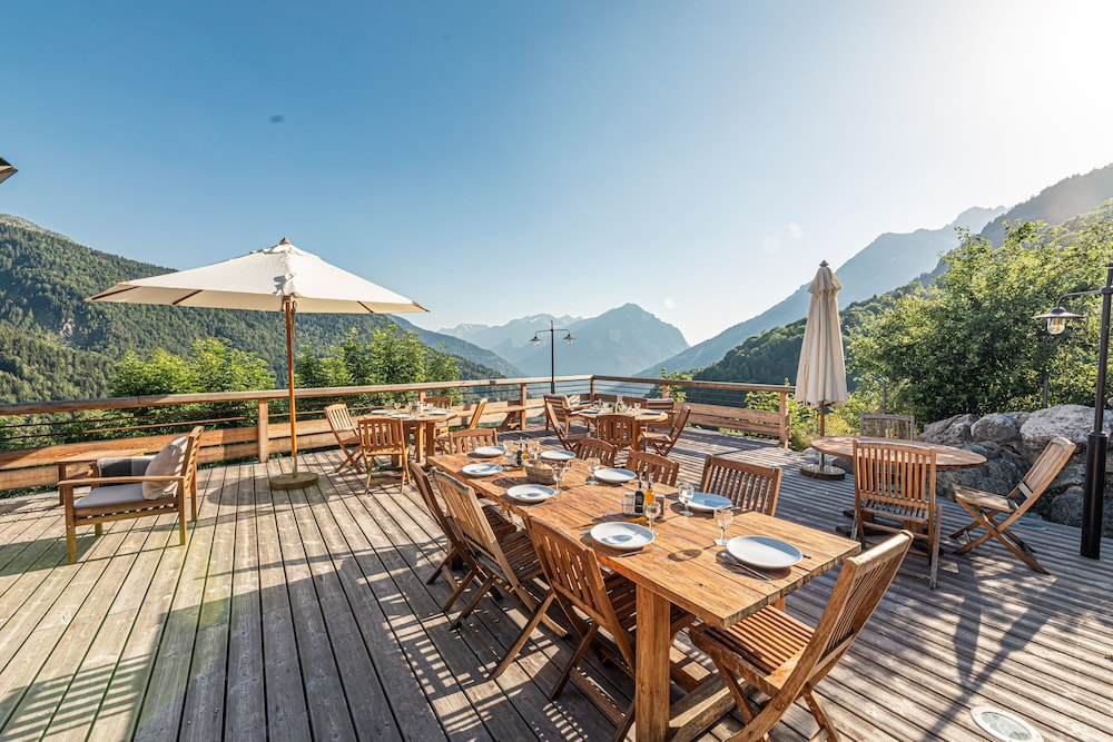 A beautiful and traditional chalet-style wood house, with large rooms, nice balconies, an amazing restaurant and wine list, with a cozy pool and relaxing spa services. A great place to stay, minutes by câble car to l’Alpe d’Huez!