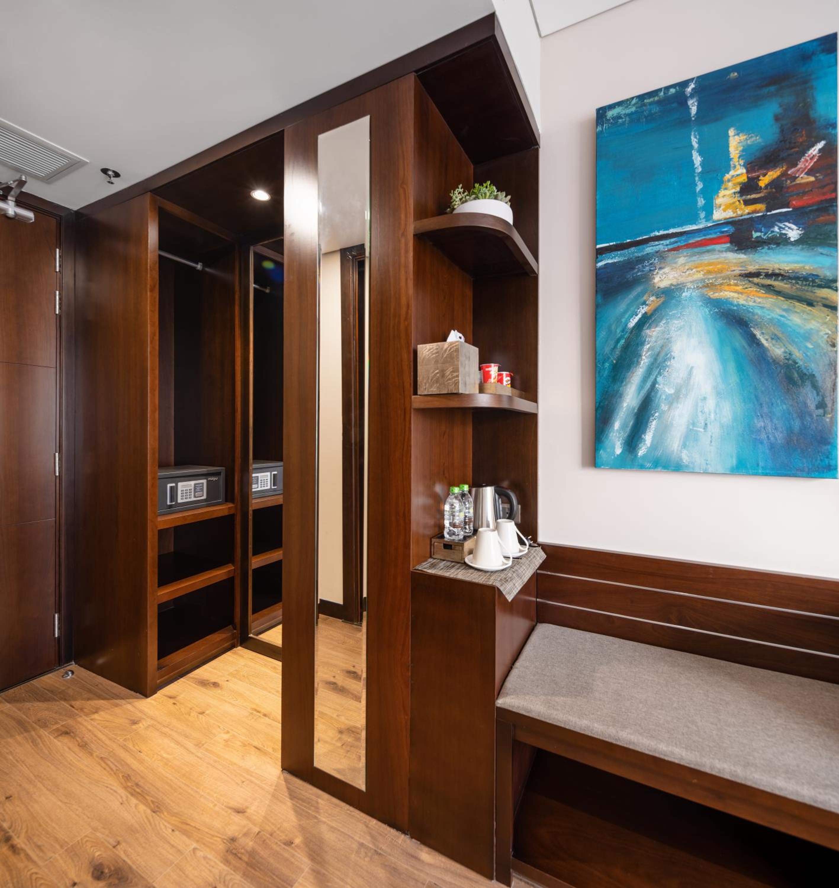Comfort and Convenience: Immerse yourself in the well-appointed guest rooms featuring modern amenities, a kitchenette in selected rooms, and a relaxing seating area.