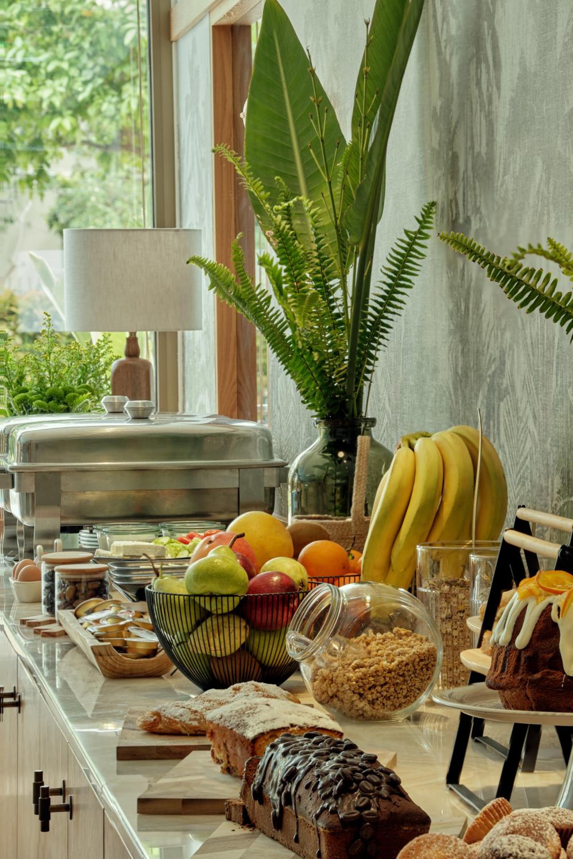 Breakfast was excellent. The staff were friendly and helpful. The location was ideal for us. The common areas of the hotel, reception, the pool, the bar etc, were stylish and modern. The room was clean and the AC worked well.