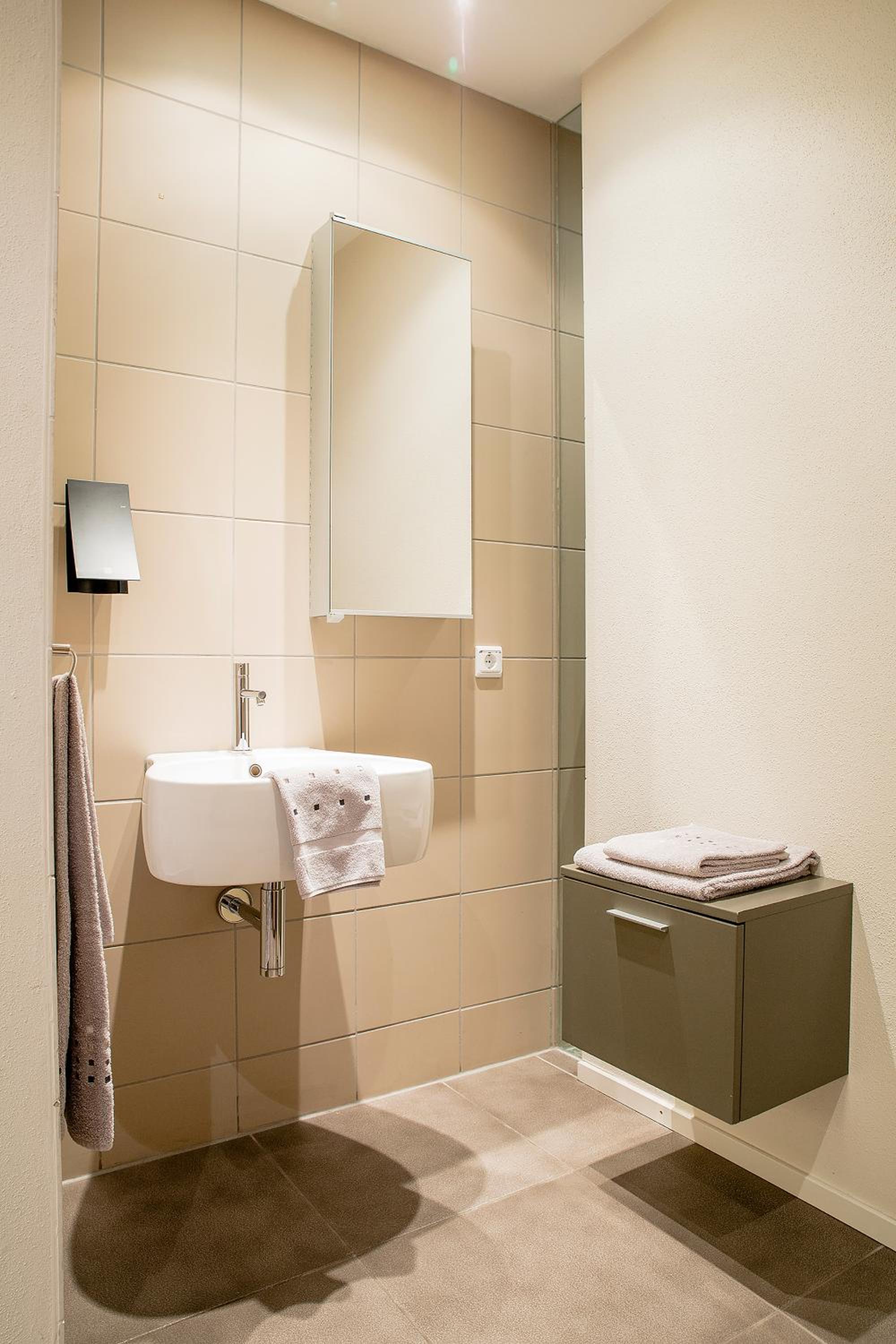 Sehr modern eingerichtetes Hotel, sauberes Zimmer, Platz genug um sich wohlfühlen zu können. Große Dusche und mit einem separatem WC auf dem Zimmer.