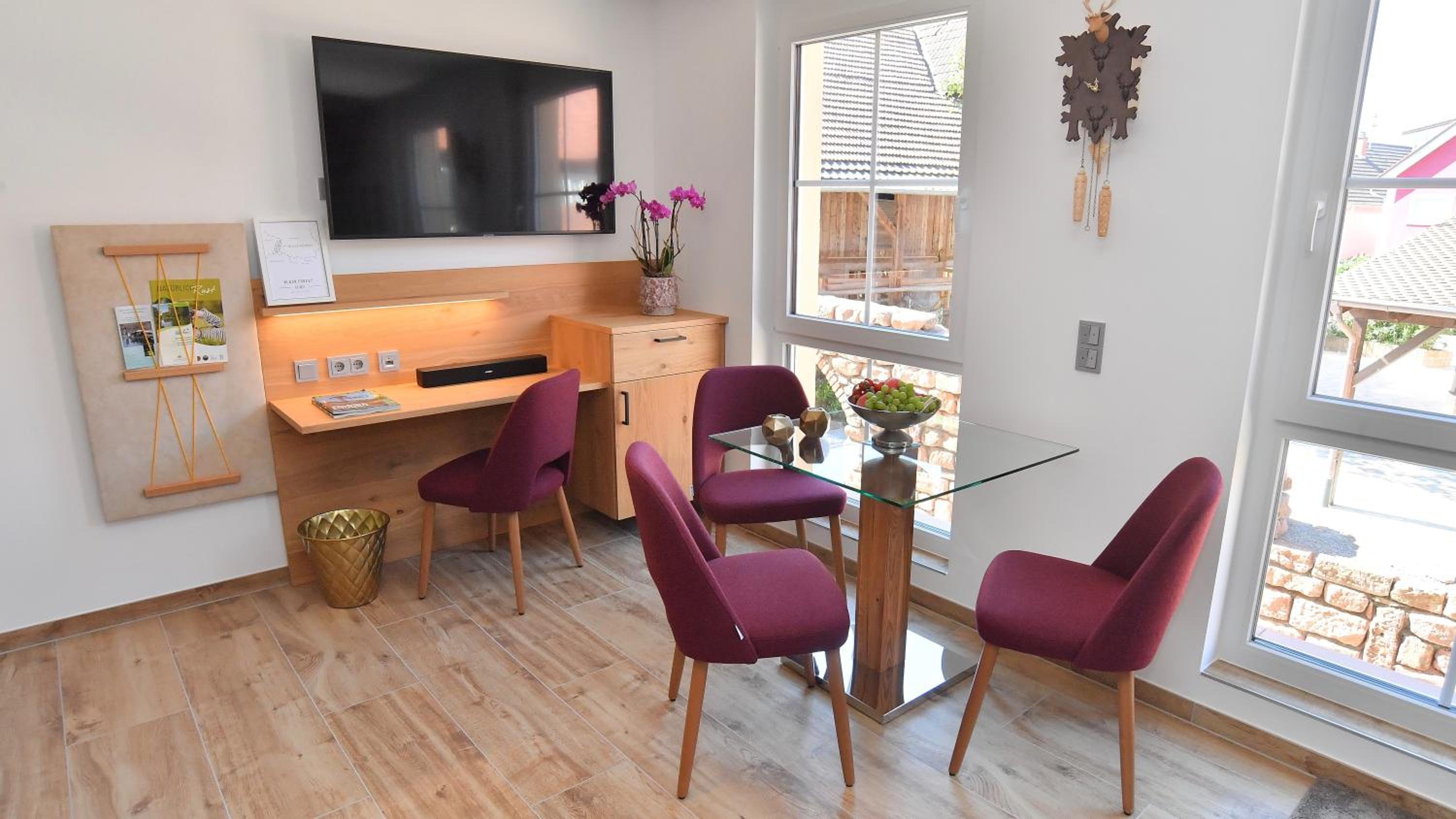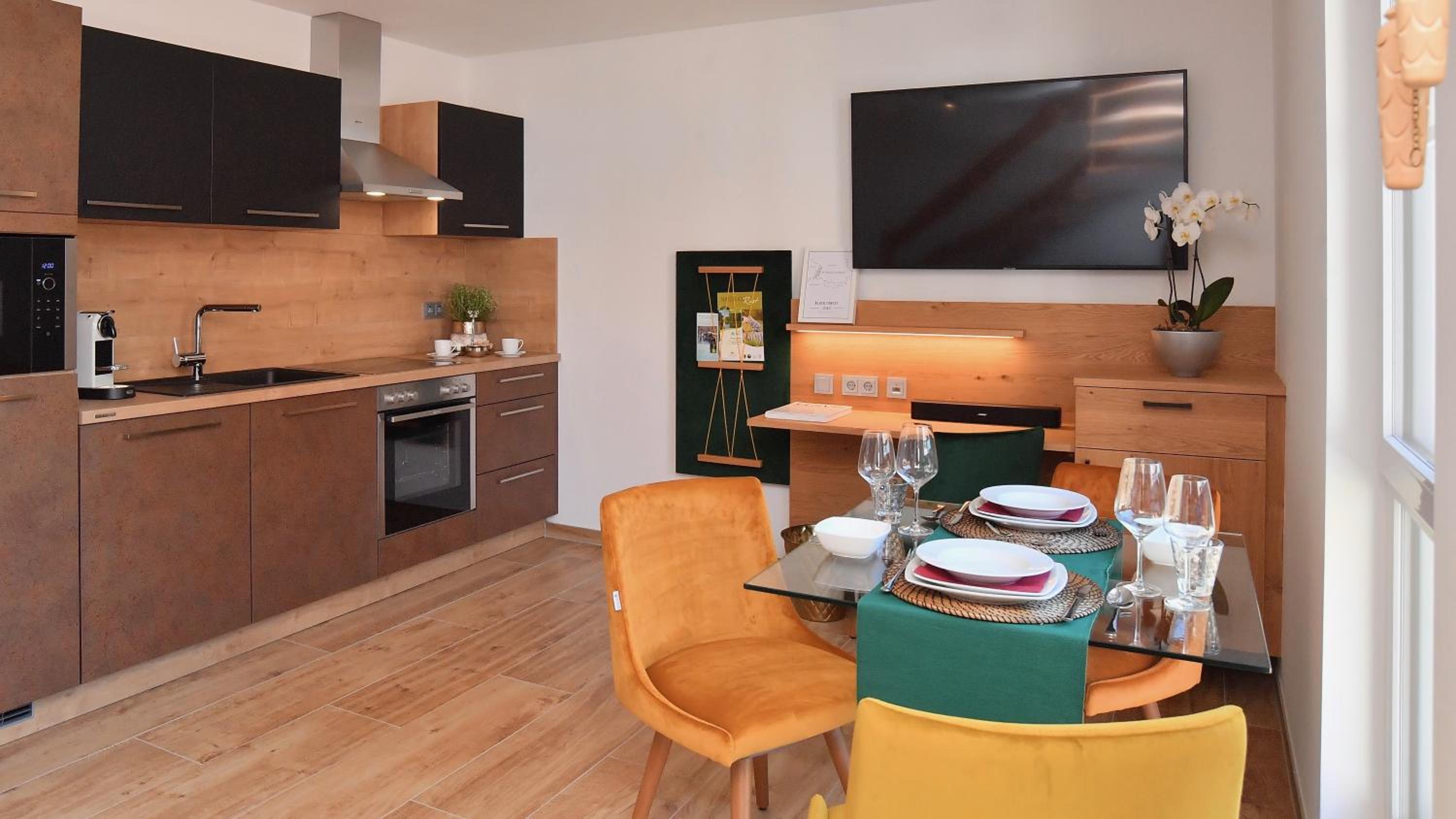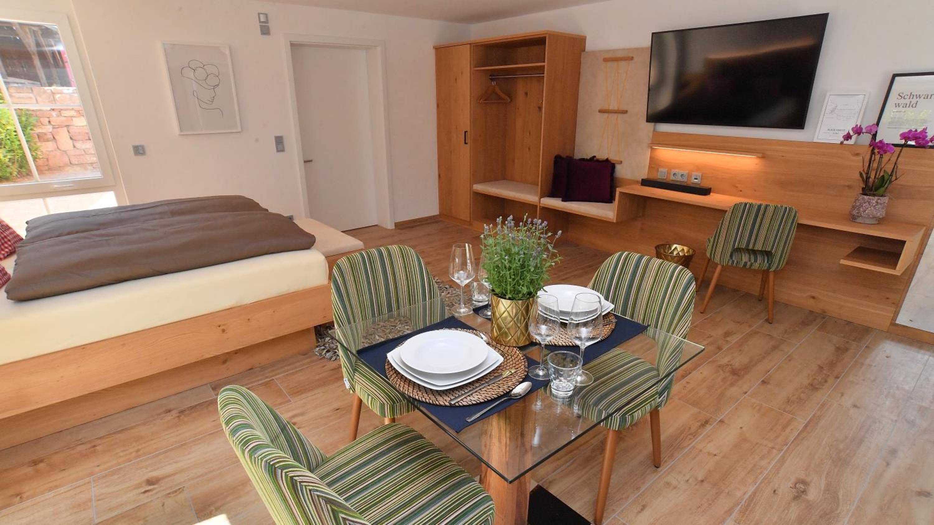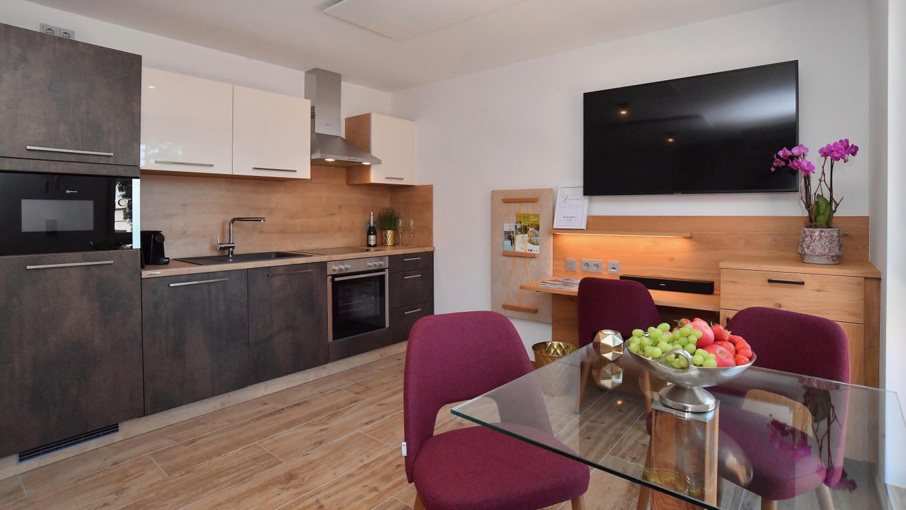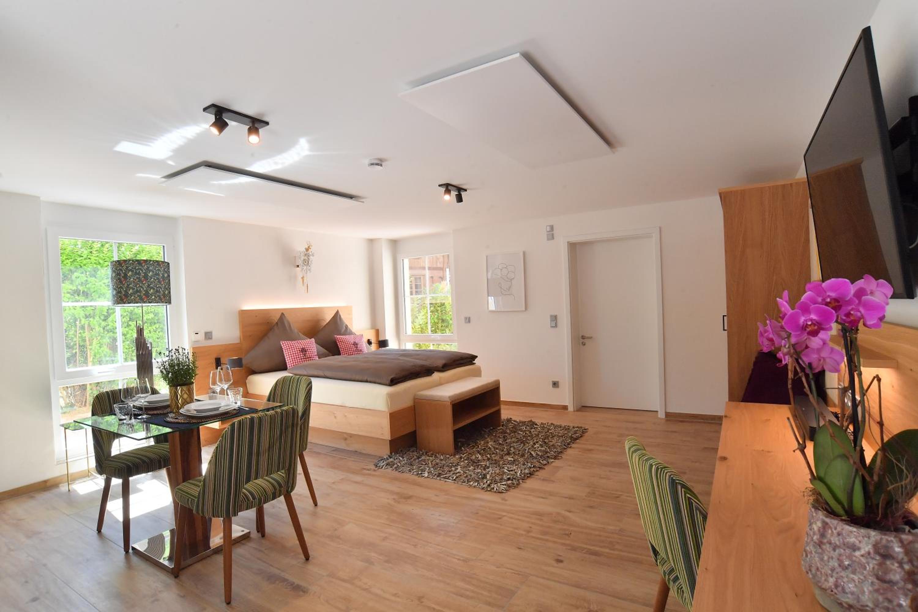 Das Apartment war hochwertig ausgestattet, es hat an nichts gefehlt. Alles picobello sauber! Man hat sich sofort wohl gefühlt. Zwei Flaschen Wasser + frisches Obst war für uns vorbereitet. Die ganze Anlage ist komplett durchdacht. Wir haben mit dem Auto 8 Minuten zum Europa-Park gebraucht. Perfekt! 🤩 Unser persönliches Highlight war das Frühstück jeden Morgen. Regional leckere Speisen, die zu Tisch gebracht werden. Und mit viel Liebe zubereitet sind 🥰