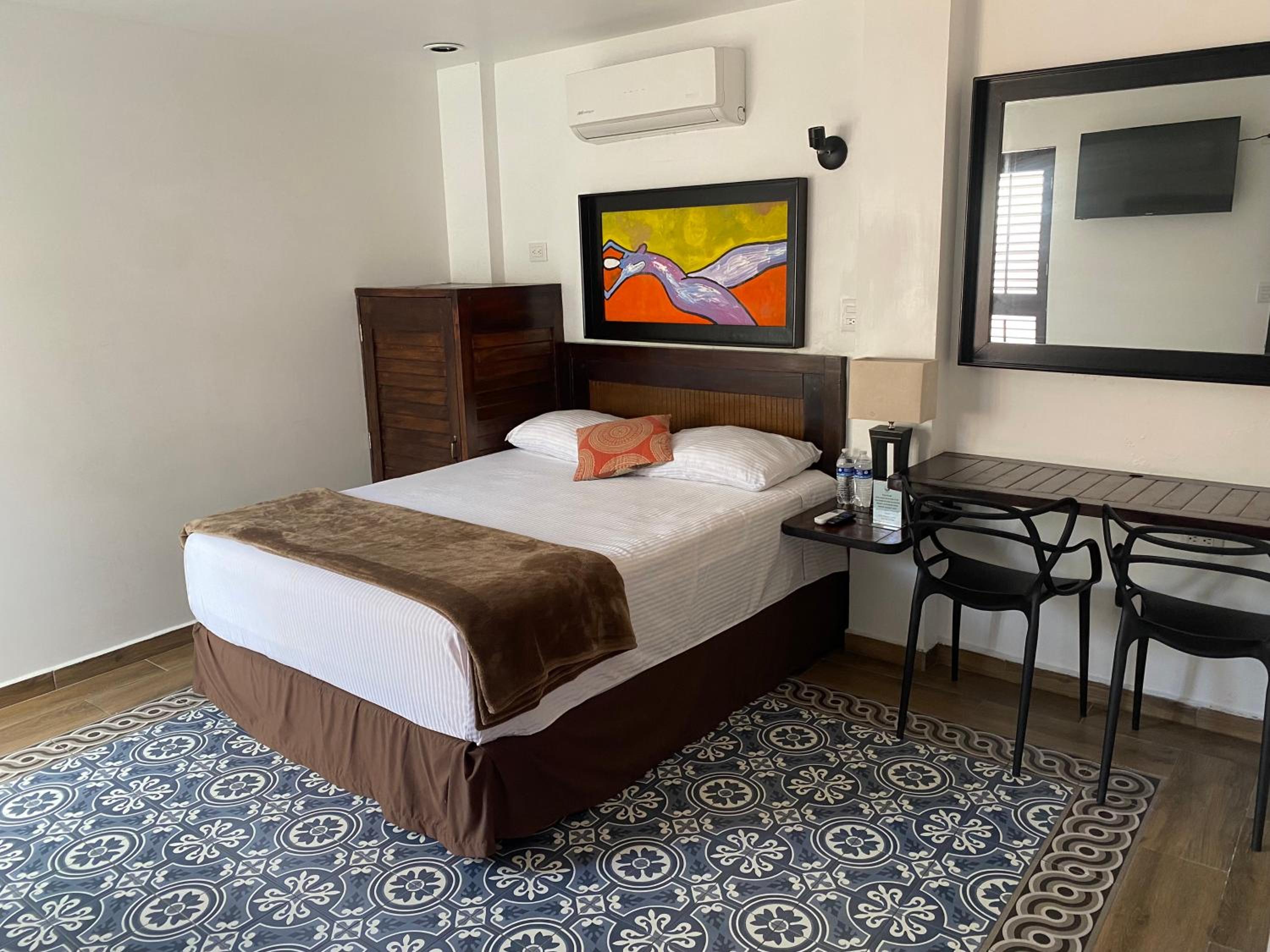 To be very honest , the photos do not reflect the actual hotel. It was not the right fit for us. However, the next morning, the very professional staff offered to move us to their new hotel Tierra Marina . We switched hotels which was a much better fit. Tierra Marina is just a block away, new, comfortable and with an elevator. Staff in both hotels are excellent.