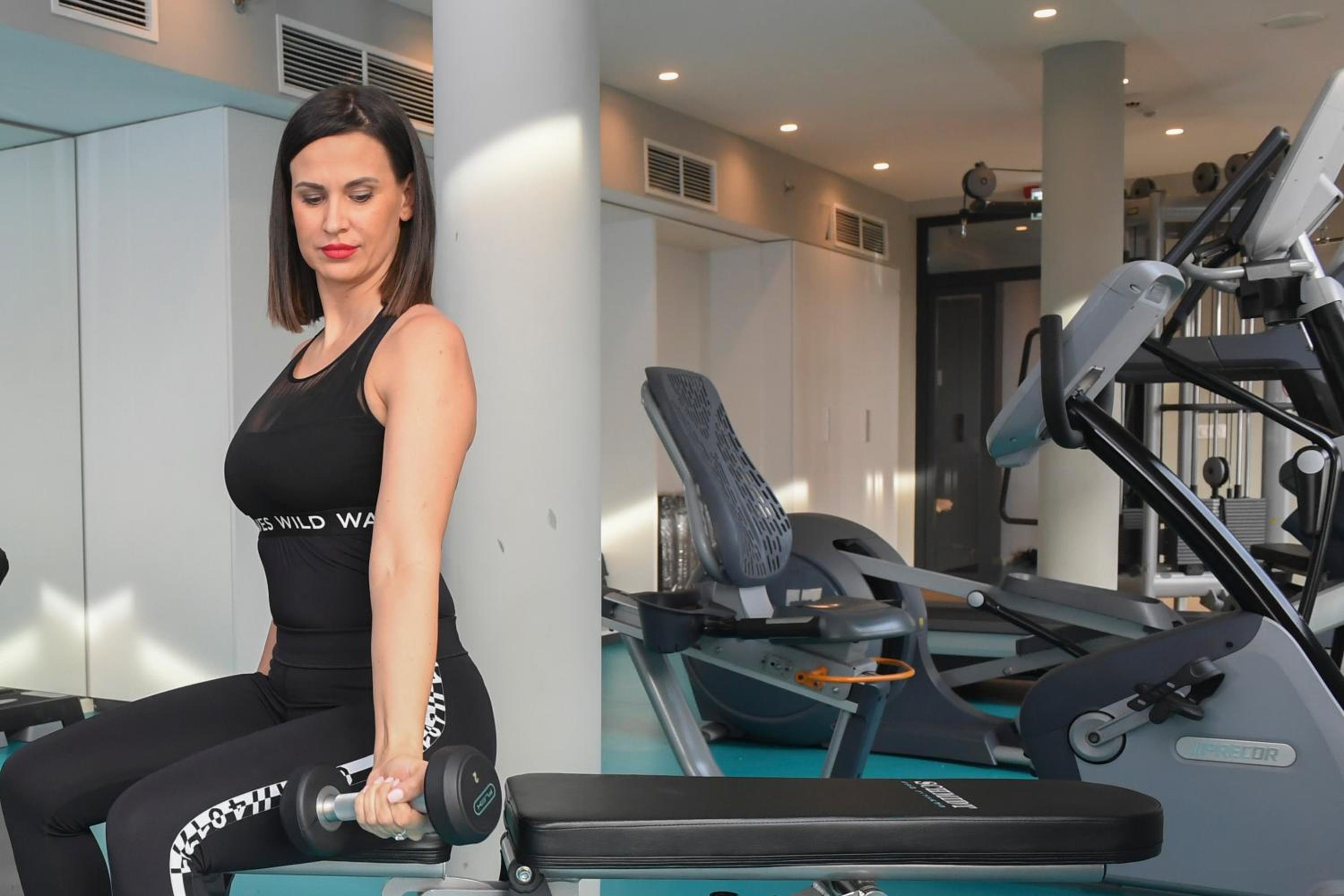 Fitness terem gép parkja meglepően modern, tágas szép terem.