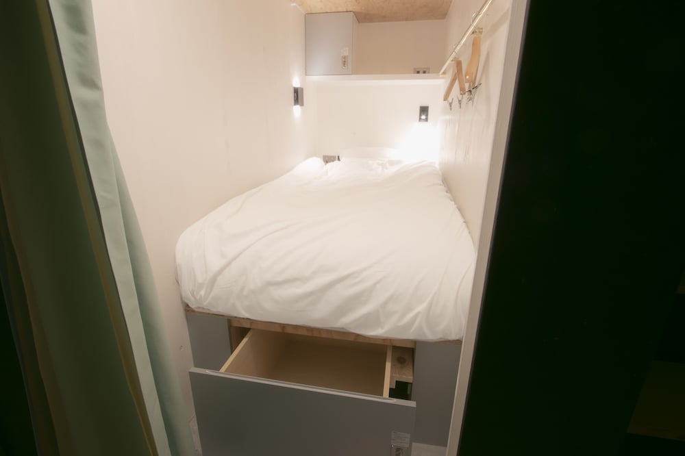 ベッドスペースで立てるのは良いが、天井がないのはびっくり。隣室の明かり漏れ(ほぼ間接照明)を防ぐ手だては無いので、耳栓だけじゃなくアイマスクも置いたらいいと思いました。ベッドマットはこれまたびっくりするほど柔らかくて、寝心地以前でした。敷布団が必要だと思いました。安かったのでトータルでは満足です。