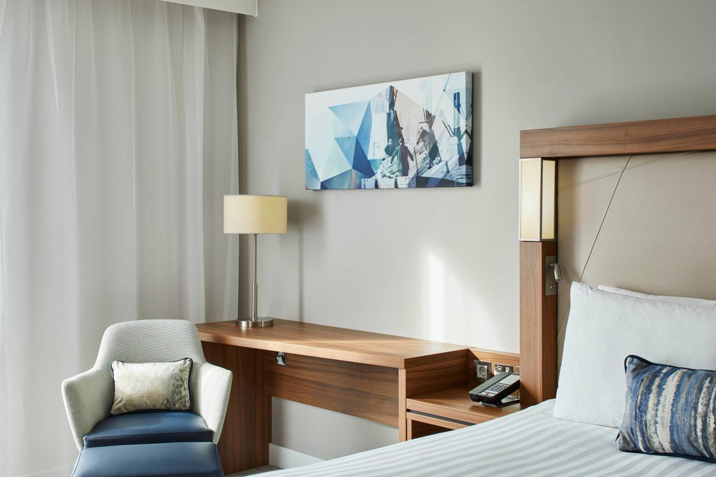 Courtyard by Marriott London City Airport offers elegantly designed rooms equipped with modern amenities such as flat-screen TVs, plush bedding, and personal safes, ensuring a comfortable stay for guests.