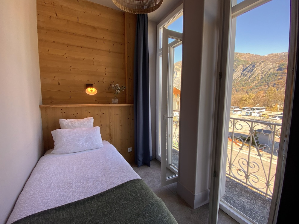 A delightful hotel below Alpe d’Huez. The building is absolutely charming - built in 1896 - and is a perfect base for skiing or touring in the area. Breakfast was excellent and dinner is available most evenings. It was delicious. The staff could not have been more welcoming, friendly and helpful. Our room was very large with a great view of the mountains. The bathroom was new and the shower excellent. An absolute delight in every respect.