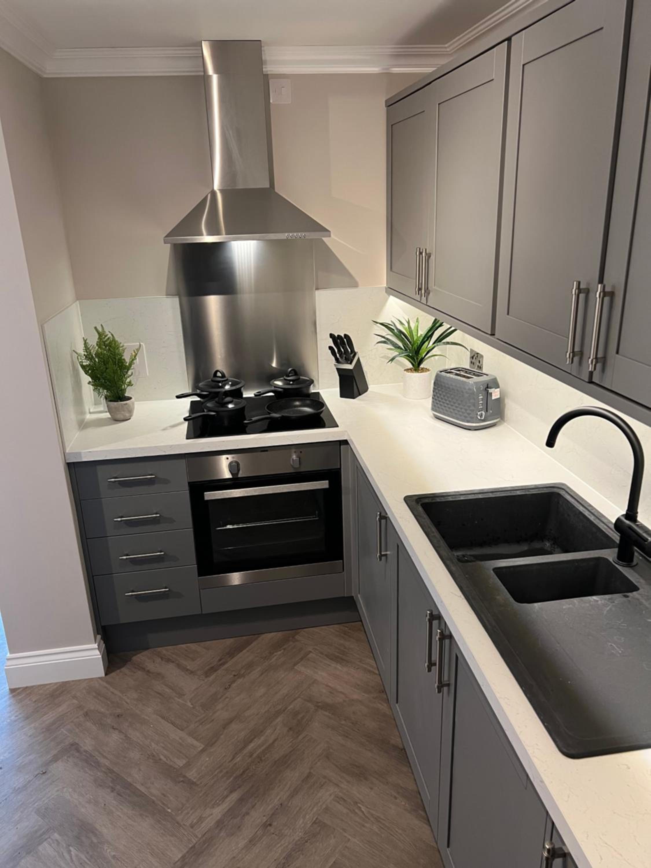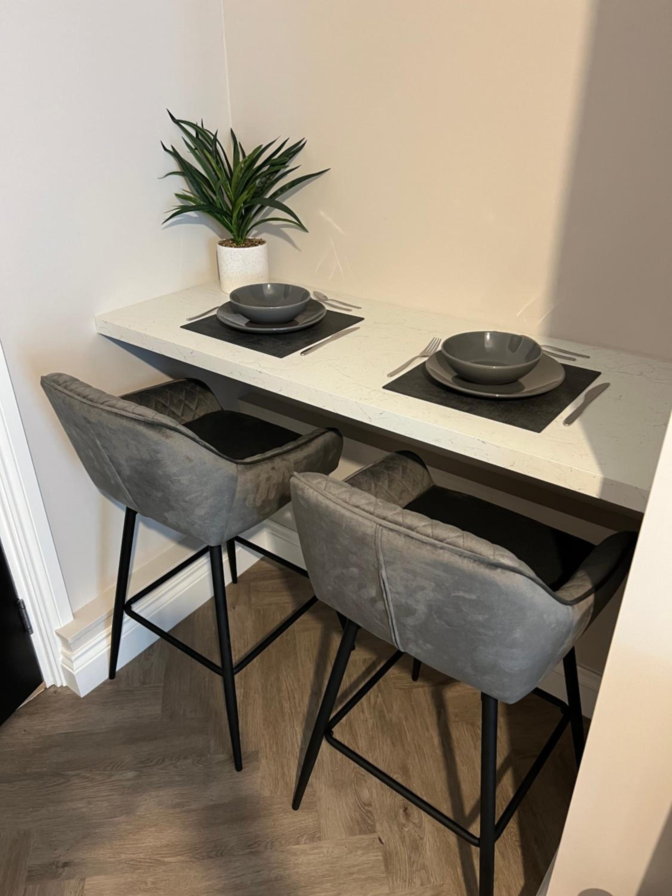 For this specific apartment we had on-site parking, which made this trip even more enjoyable. The two nearby restaurants that we have visited (Commodore pub and the carvery opposite) were really good and I highly recommend both.