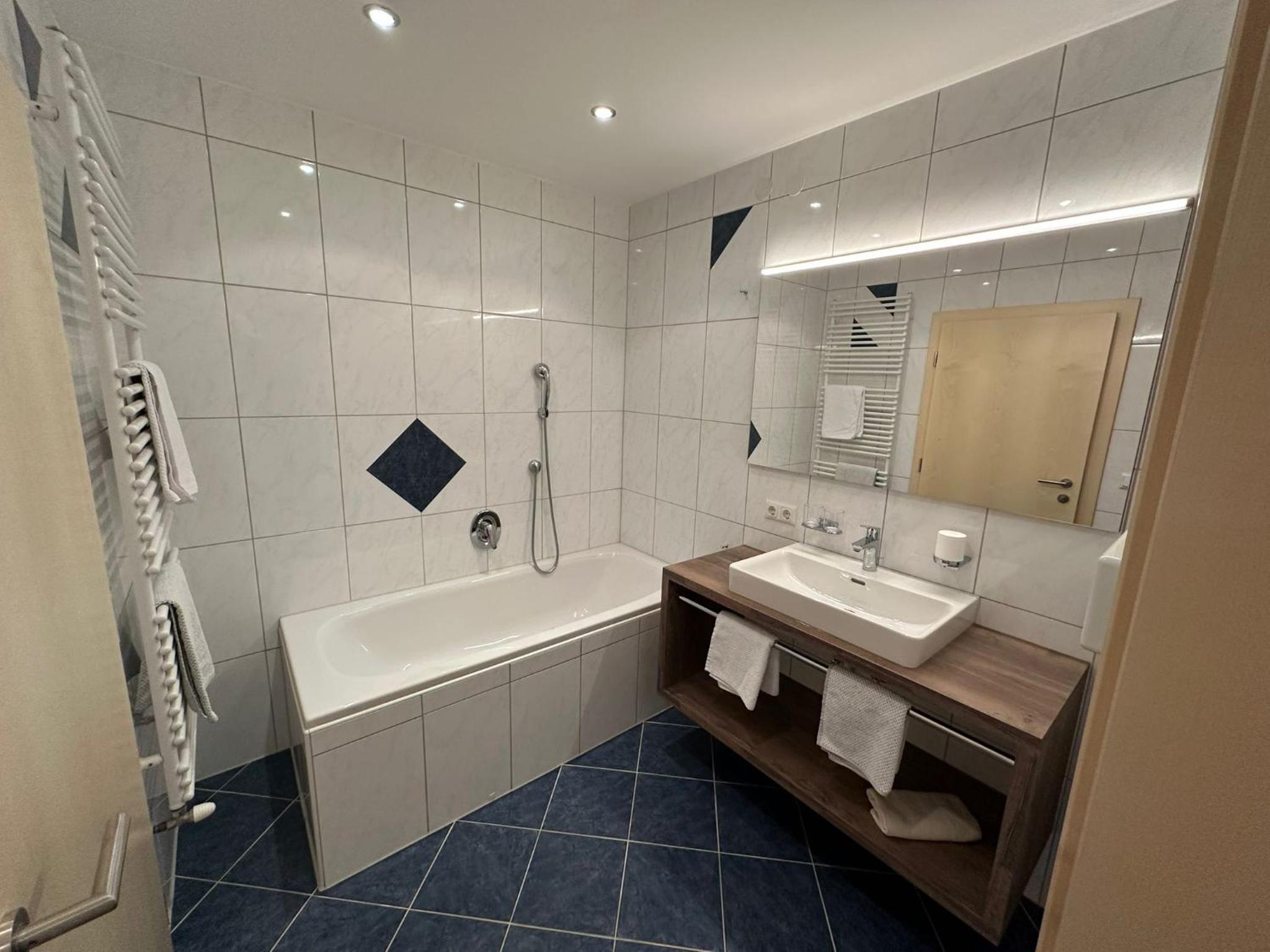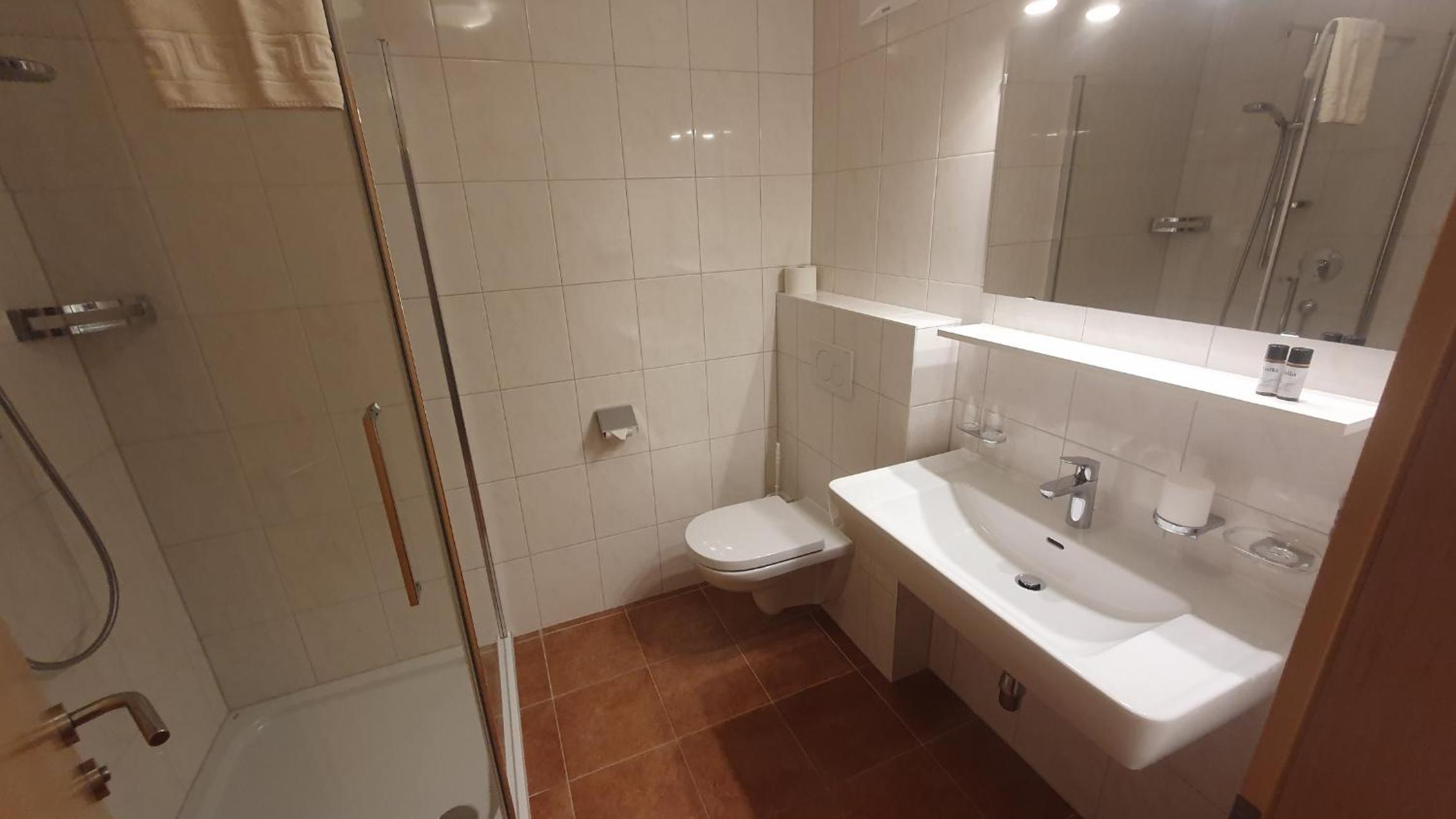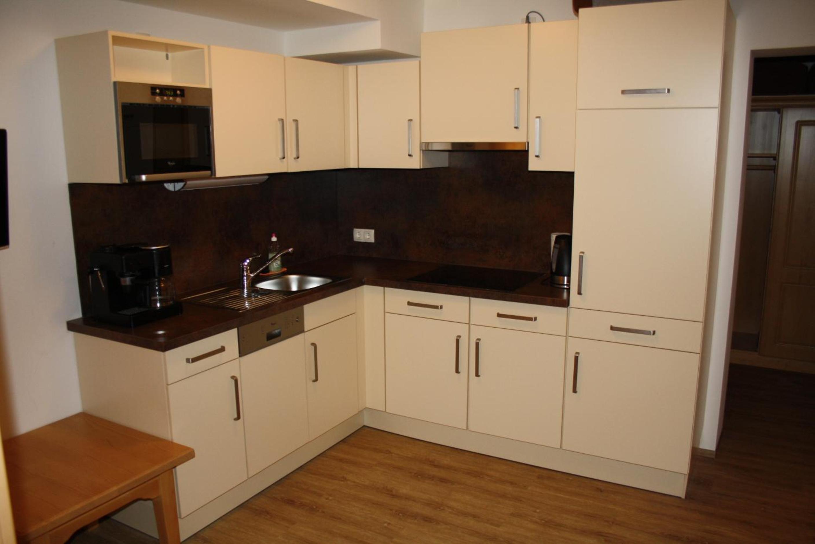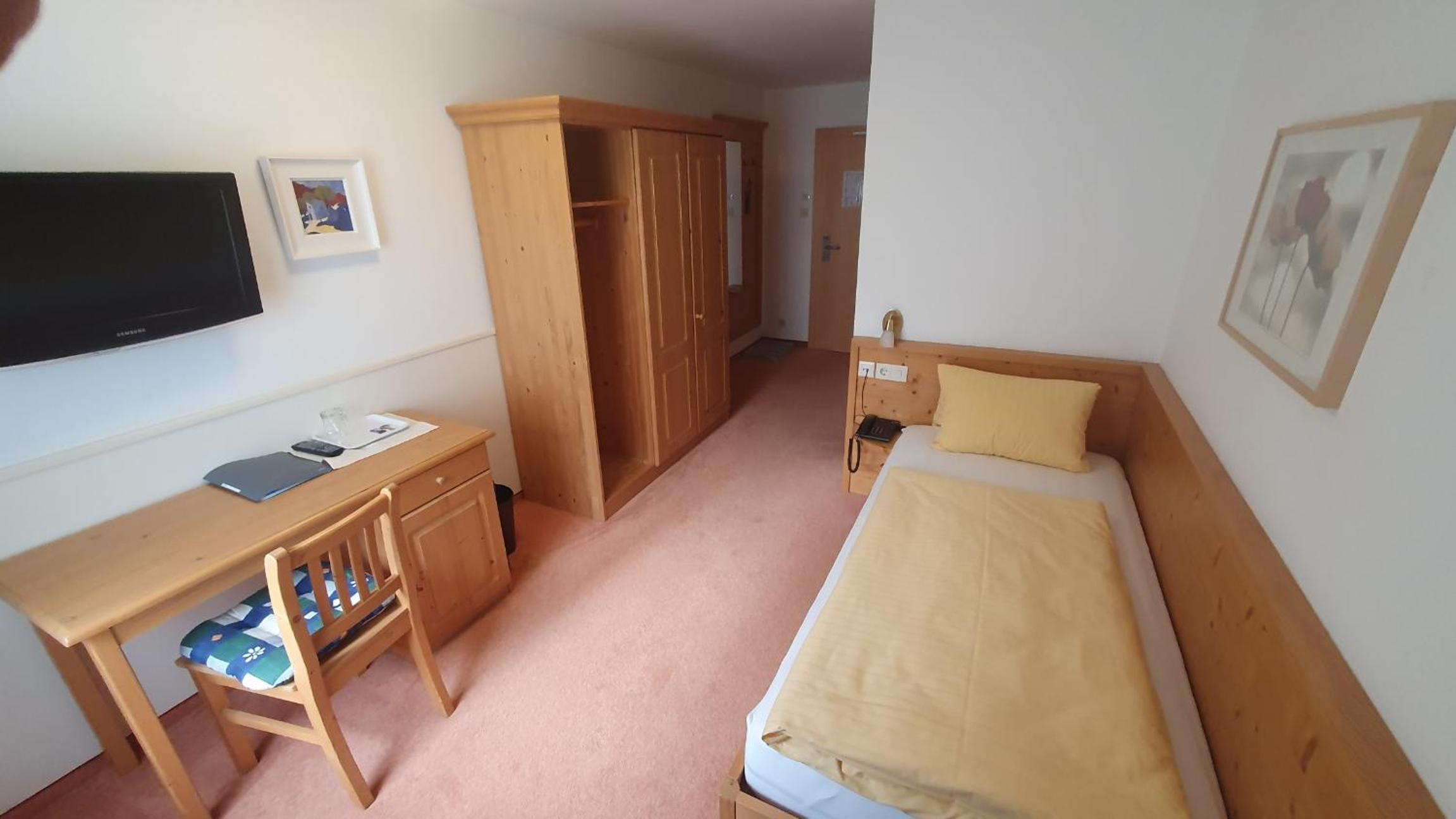 The photos and pictures do not do justice to the hotel and the room. We stayed in appt 11 with 4 people, very spacious, 2 separate bedrooms with kitchen loungers, well equipped kitchen, lovely balcony. Fabulous views of the mountains. 5 min walk (in ski boots) to St anton east lift/ ski bus. Staff very friendly, room serviced daily. Fabulous stay.
