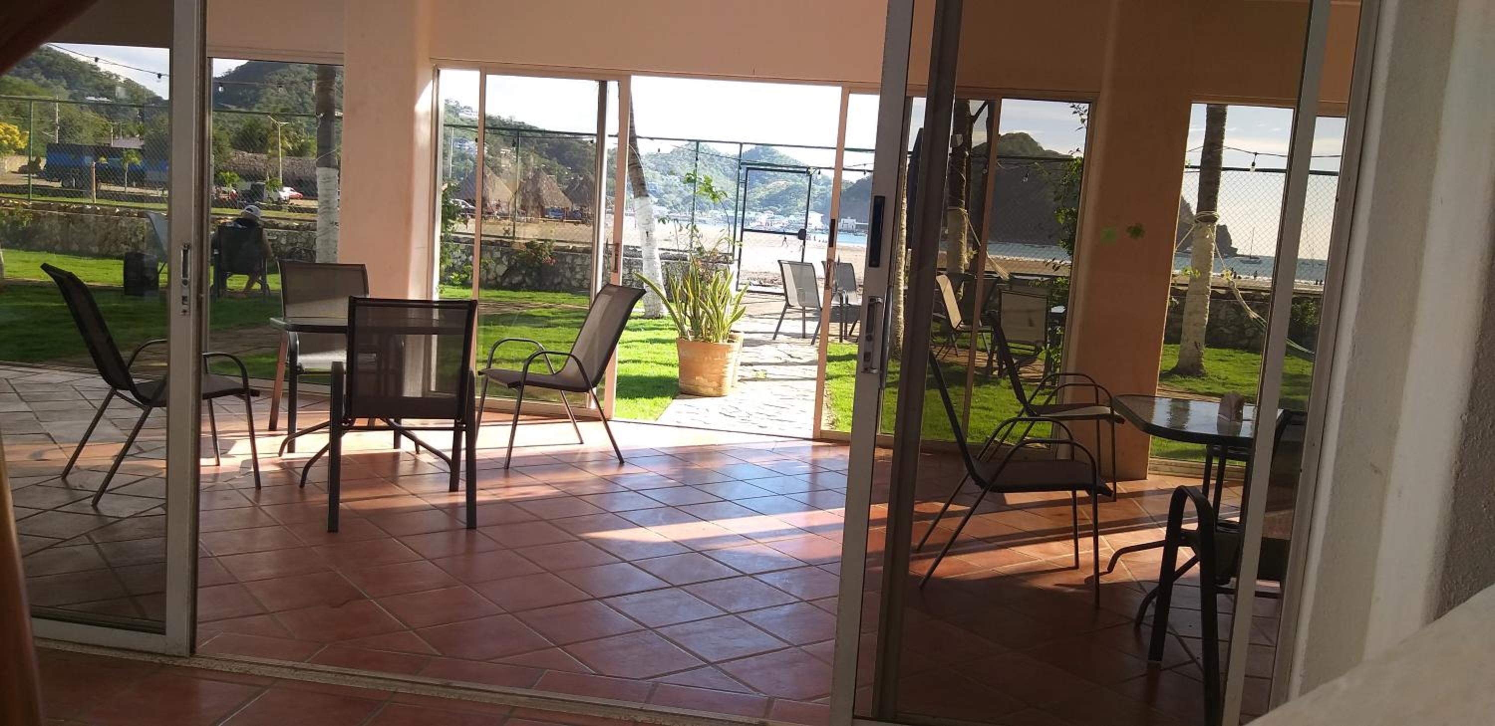 It has a good beach view , real confortable patio chairs, very friendly stuff , pool area needs improvements..-