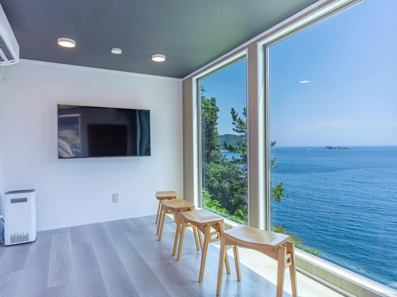 朝、部屋の窓から海が見えて綺麗。