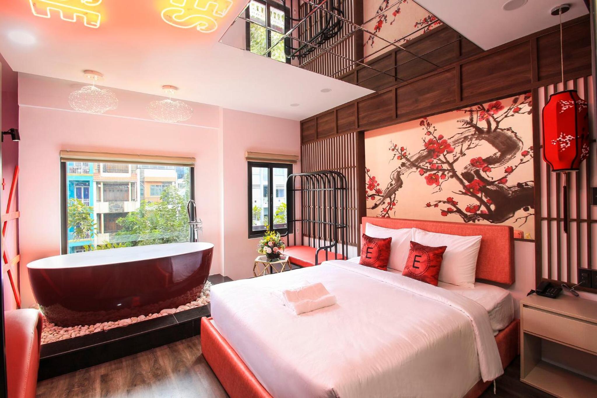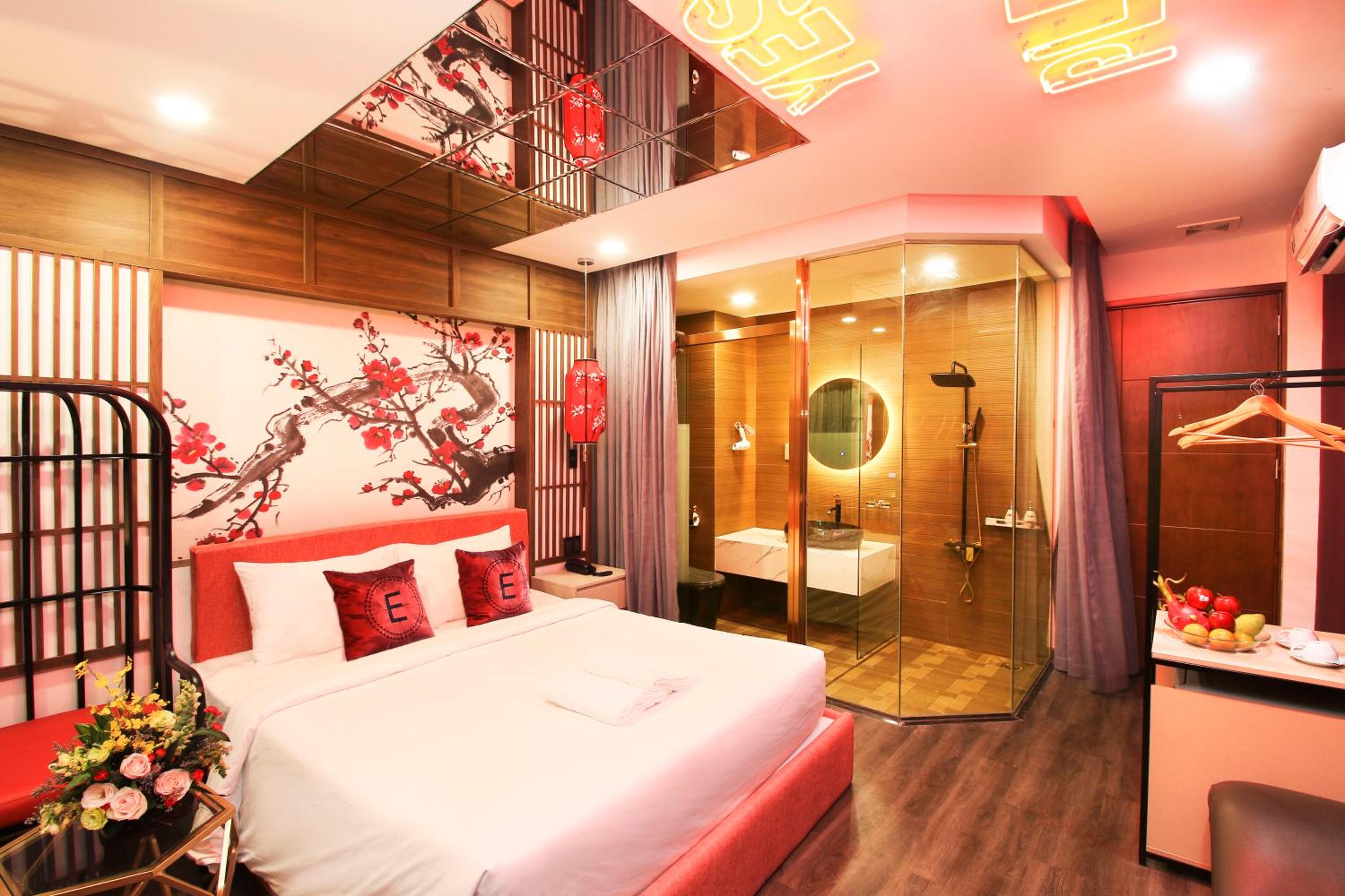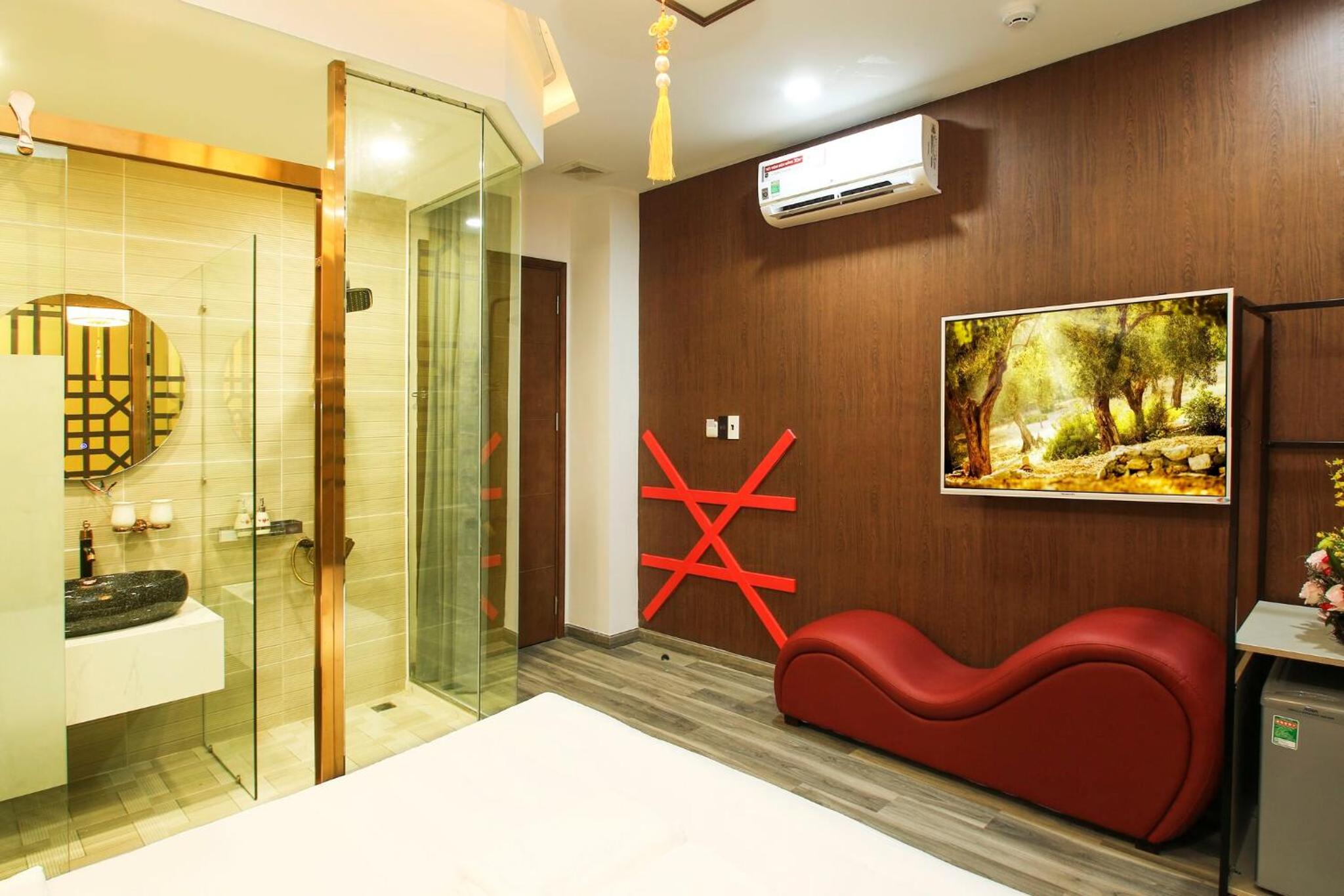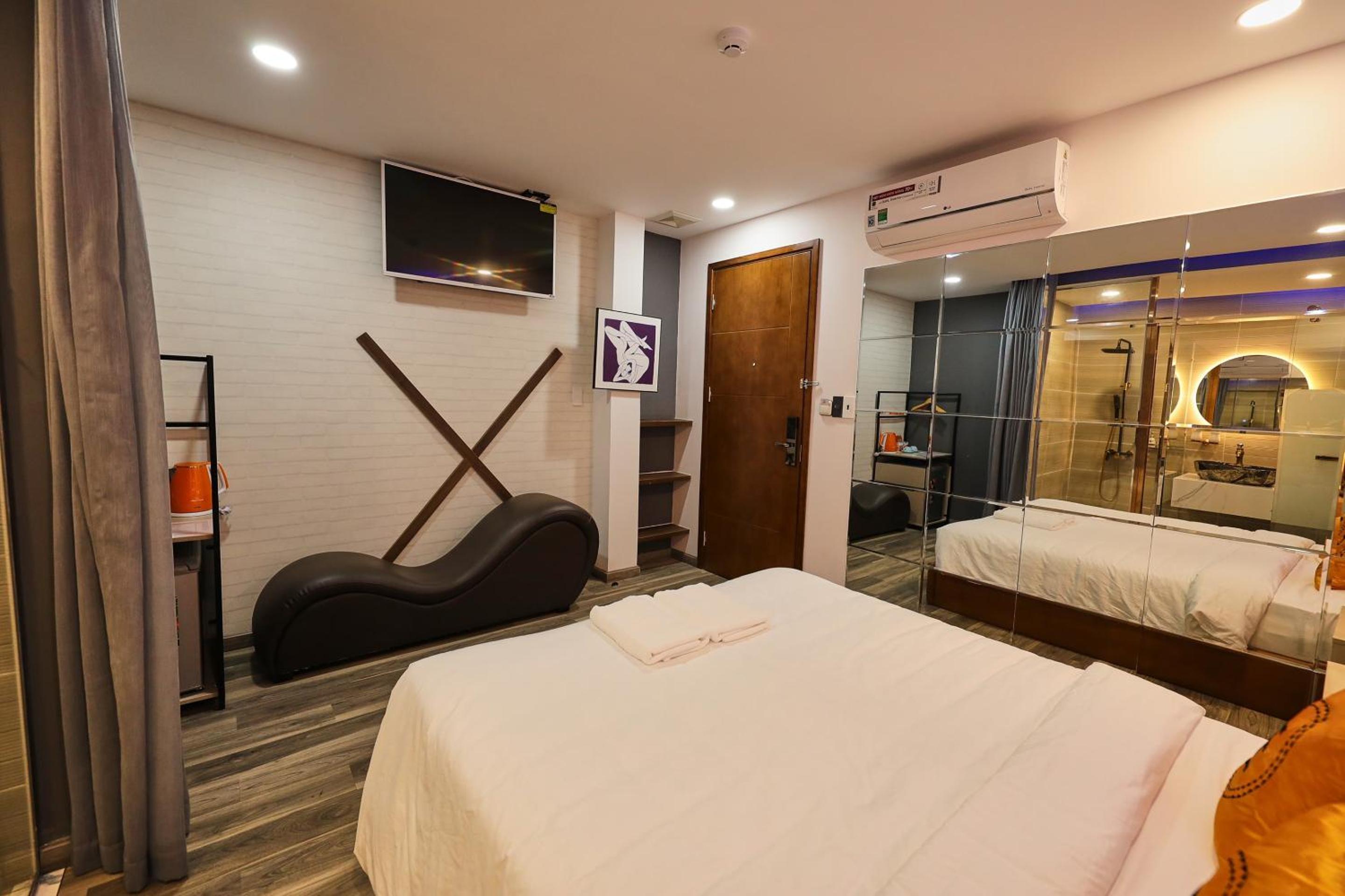 Experience comfort and style at EROS Hotel - Love Hotel with air-conditioned rooms featuring flat-screen TVs and private bathrooms. Enjoy complimentary WiFi and room service during your stay.