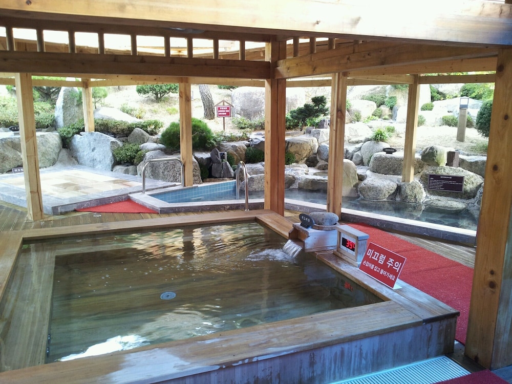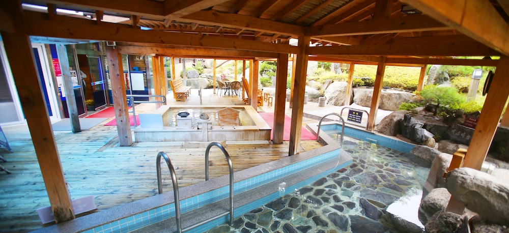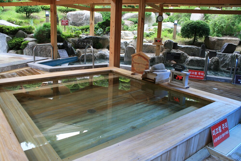 시설이 낡았다는 평은 많이 들어서 크게 기대하고 가지 않았지만 실제로 보니 충격적이었음. 옛스러움과 관리를 하지 않아 낡아 보이는 것은 큰 차이가 있음. 방안에 있는 가구들은 모두 망가져 있고, 냉장고도 재활용센터에서도 보기 어려울 정도의 오래된 상태. 트래디셔널룸(황토온돌방)에서 묵었는데 욕실의 전구도 깜박깜박이고, 욕실에 창문이 없어서 답답함. 잘 때 방안 온도는 적절해서 따뜻하게 잘 수 있었음. 전체 평은...온천은 할 만 하겠으나 절대로 숙박은 하고 싶지 않은 곳임. 시설이 노후화 된 것이 문제가 아니라 관리를 안 하고 있는 것이 문제임.