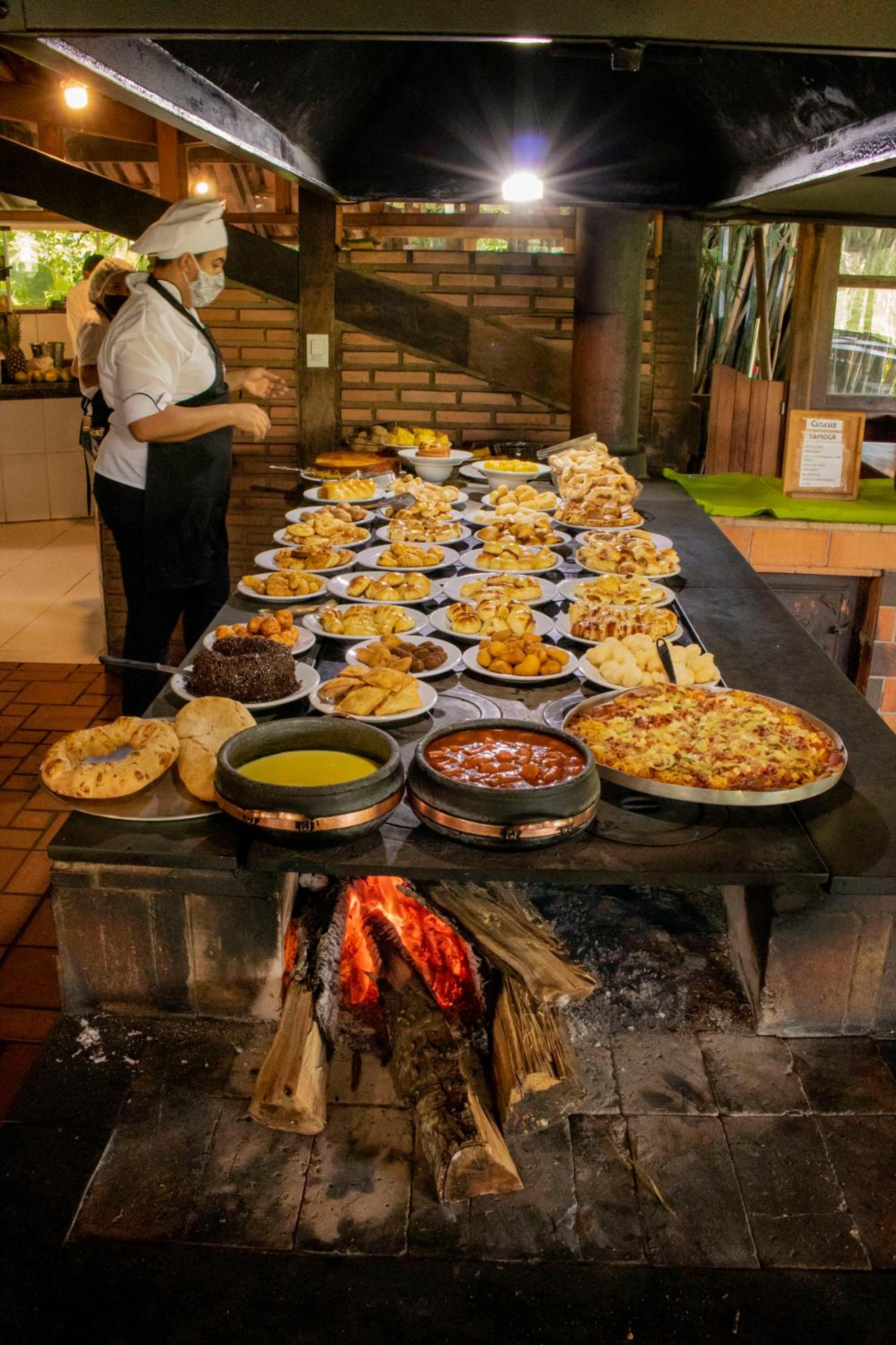 As mesas foram demarcadas por conta da pandemia e por algum motivo não tinha a mesa referente a minha acomodação! Quando questionei começaram a reorganizar meses para adicionar uma para mim e minha filha! Poucas ou nenhuma fruta em algumas refeições...