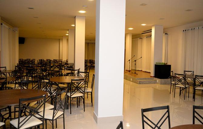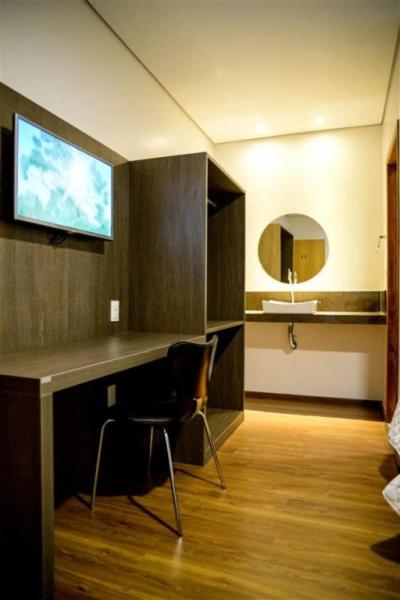 Minha visita foi em 22/12/20. O quarto é pequeno, cama king size, guarda roupa, criado mudo, escrivaninha com cadeira, tv, telefone, frigobar, ar condicionado. O frigobar fica desabastecido; é preciso pegar as bebidas na recepção. O banheiro é espaçoso, box com 2 chuveiros, sabonete e xampu. Estacionamento é coberto, com manobrista, grátis. O café da manhã tem boa variedade, grátis. O restaurante fica aberto à noite com self service buffet R$ 25 por pessoa; tem pouca variedade e quando um prato acaba, não é reposto; por isso, chegue cedo se quiser comer lá.