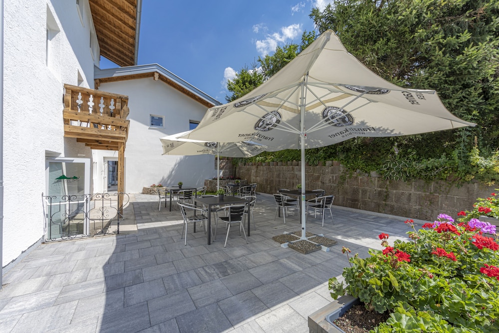 direkt unter dem Balkon Freisitz für alle Gäste, dort wurden Unterhaltungen bis spät abends geführt. Da das Wetter sehr warm war, musste man aber das Fenster öffnen.