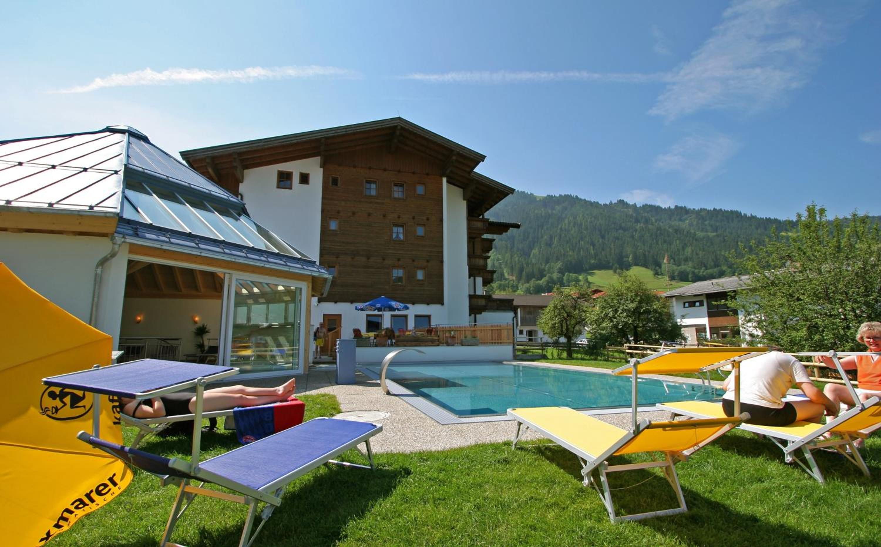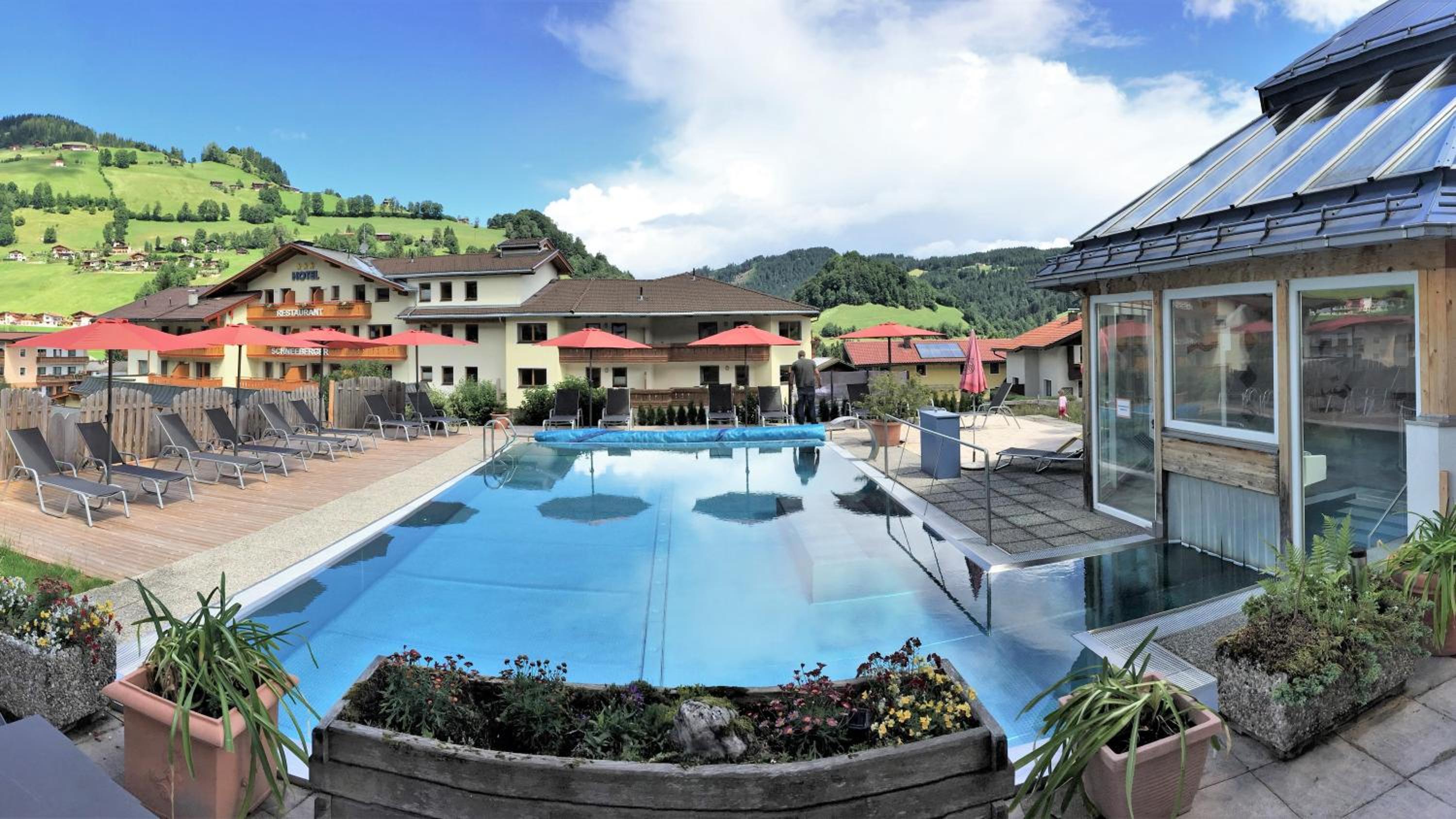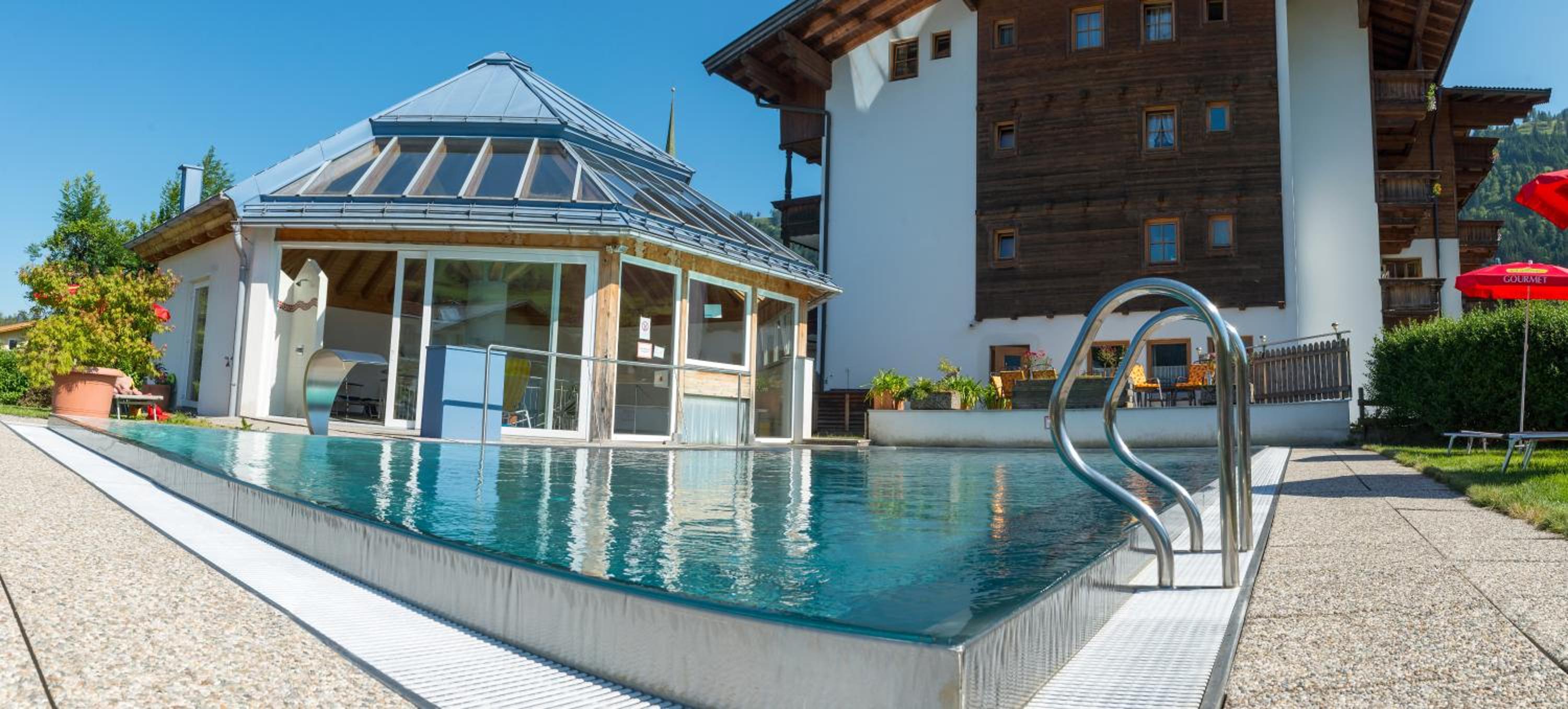 Hotel Simmerlwirt offers stunning mountain views and a relaxing outdoor pool, perfect for unwinding after a day of skiing or hiking. The wellness area with a sauna, steam bath, and infrared cabin provides ultimate relaxation for guests.