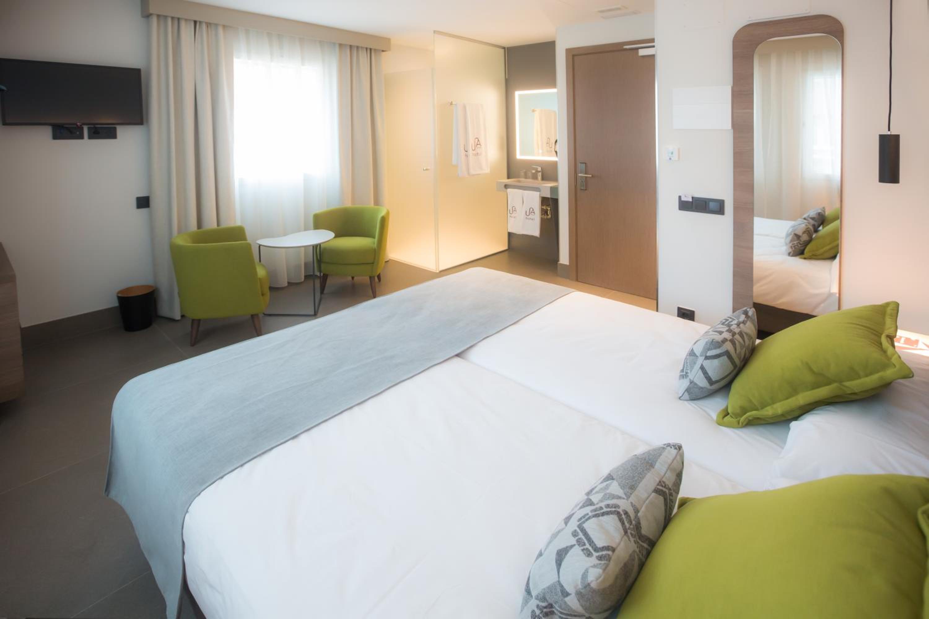 Urban A+++ Hotel in Tres Cantos offers 3-star accommodation with modern amenities including underfloor heating and cooling system rooms, free WiFi, and private bathrooms. Each room is equipped with a desk and a flat-screen TV for your convenience.