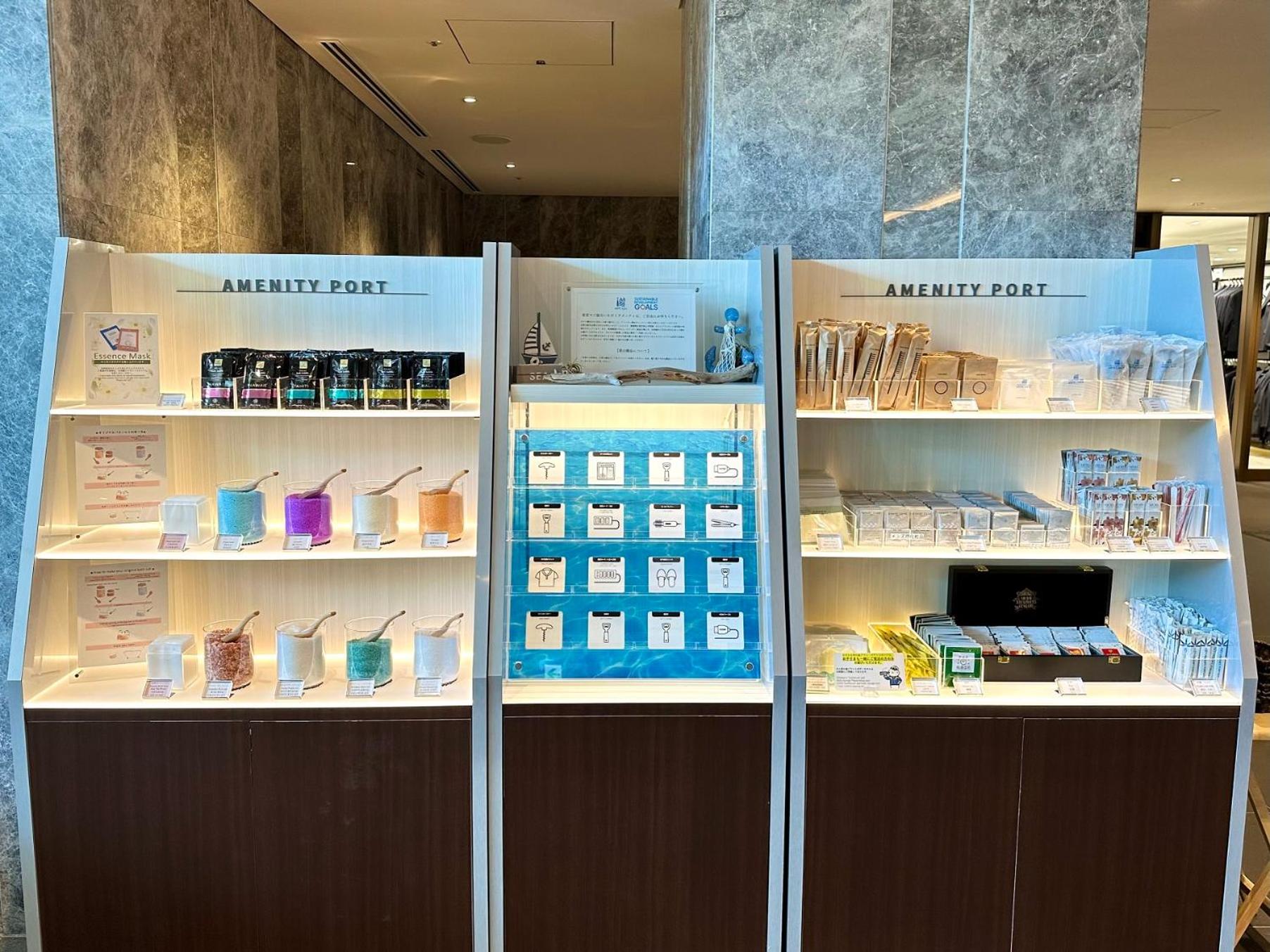 Location to the station, store in hotel lobby, free amenities