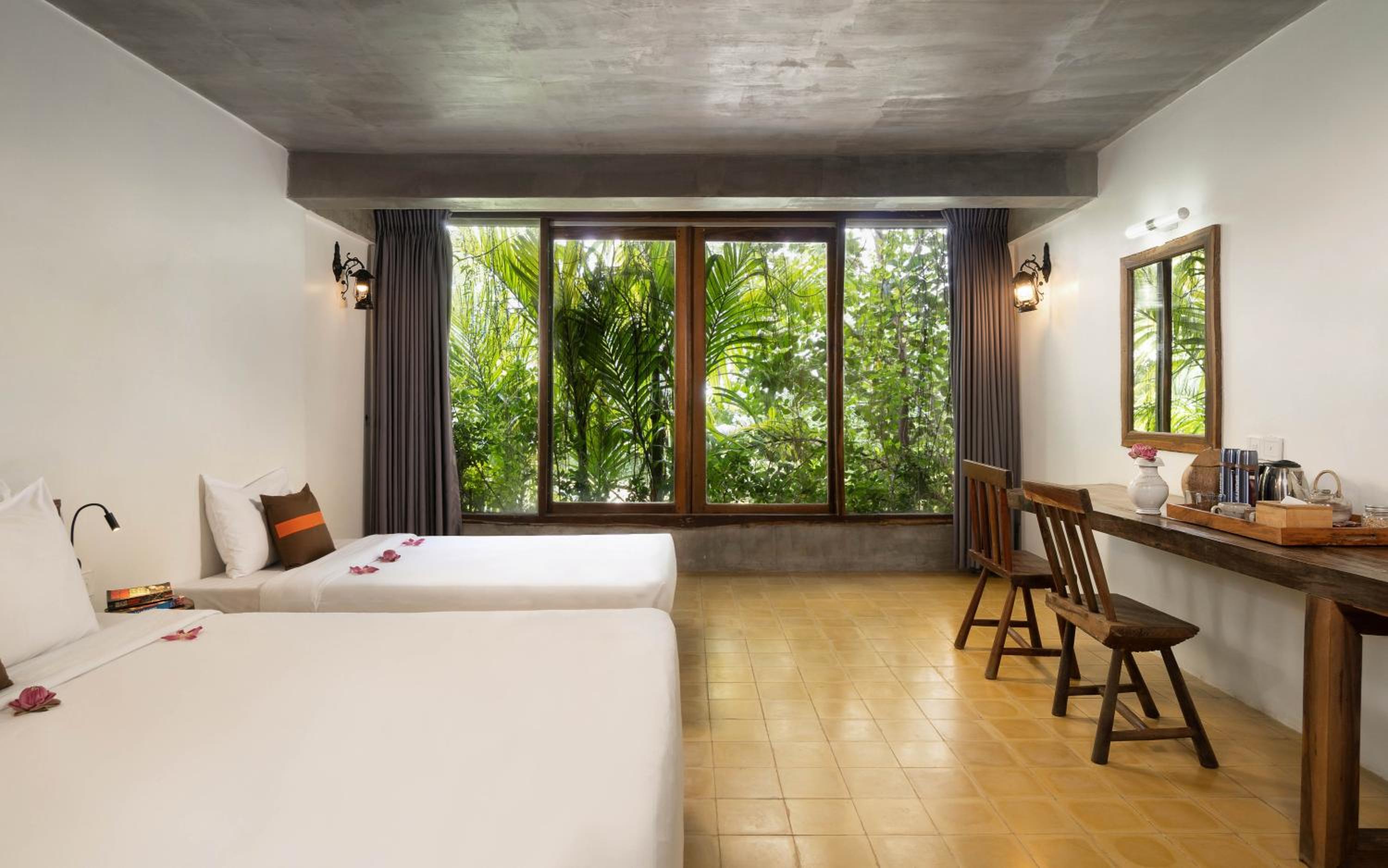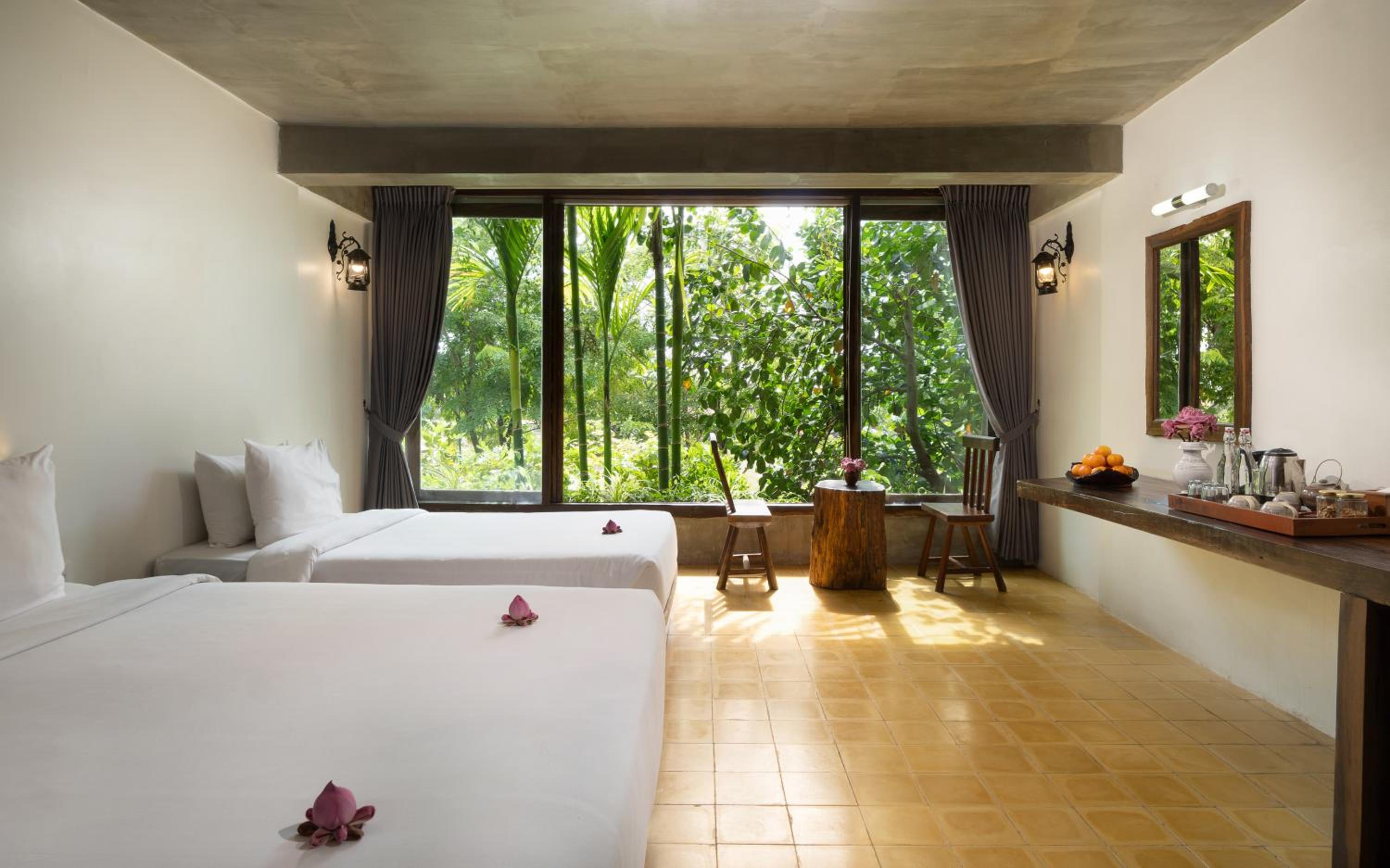Bella camera molto ampia e ben arredata. Fantastico giardino con tante piante tropicali e una bella piscina. Spazi comuni molto piacevoli per fare colazione e the pomeridiano davvero tutto incantevole. Personale eccezionale disponibile attento e molto gentile un grazie di cuore a tutti. Consigliati i tour da fare con albergo ottima qualità e prezzo. Ottimo anche lo spettacolo apsara con cena eravamo nei posti davanti si vedeva benissimo e la cena è stata di nostro gradimento Ovviamente consiglio il driver Chea Ben che è stato fantastico ci ha accompagnato e spiegato con dovizia di particolari i vari siti davvero top! Un grazie speciale anche a lui. Vacanza perfetta emozionante e profonda